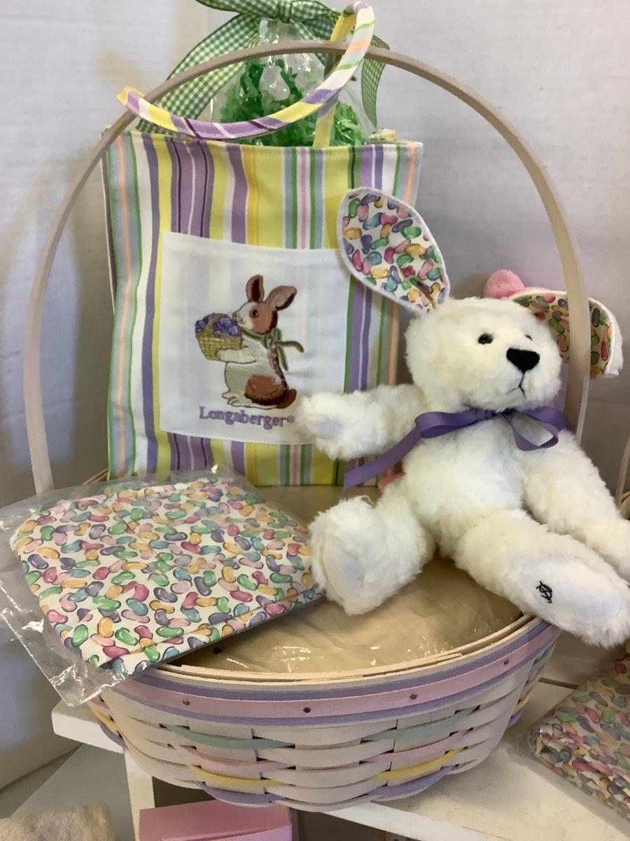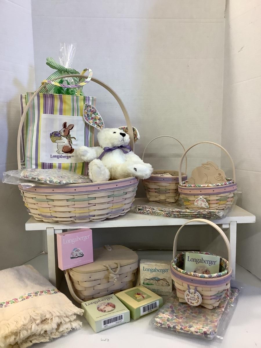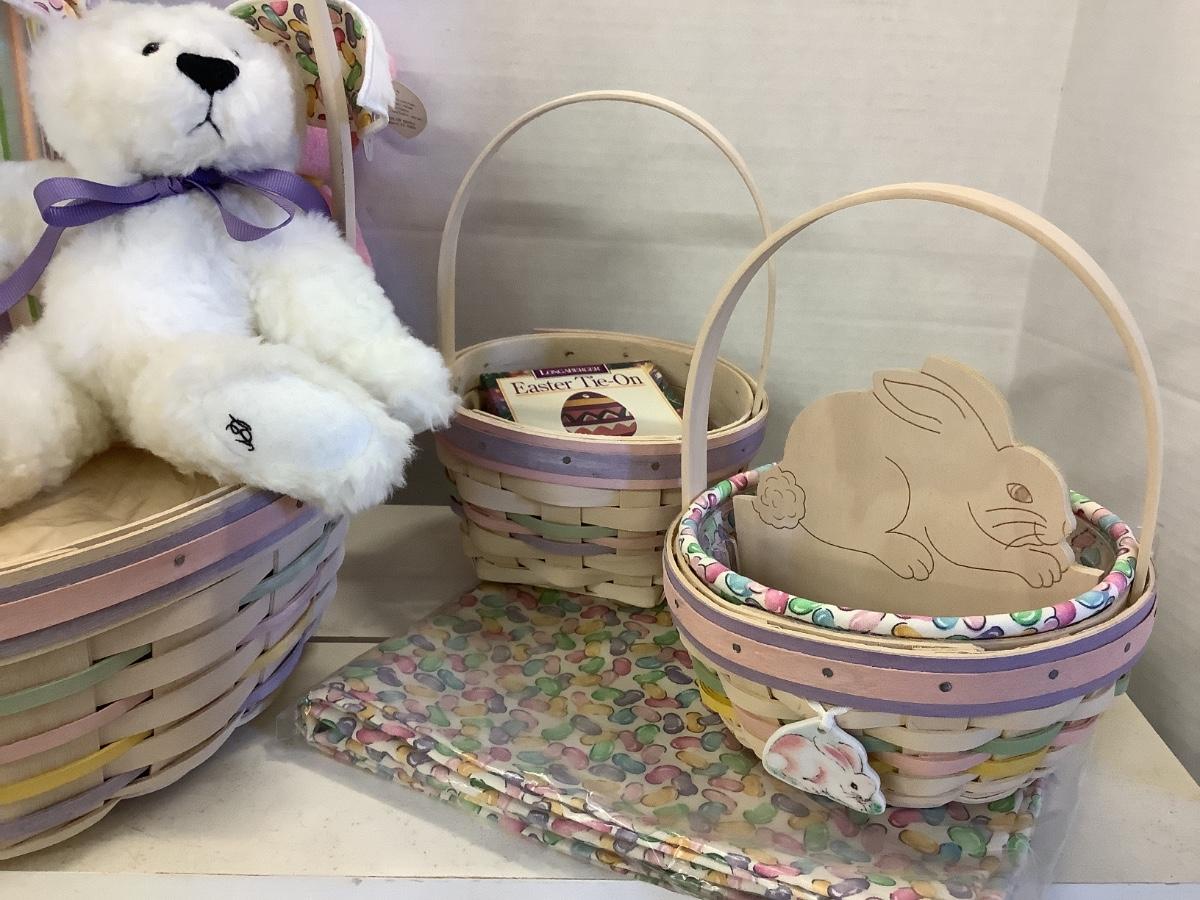 922 5 pc Longaberger Baskets with Jelly Bean Napkins & Towels