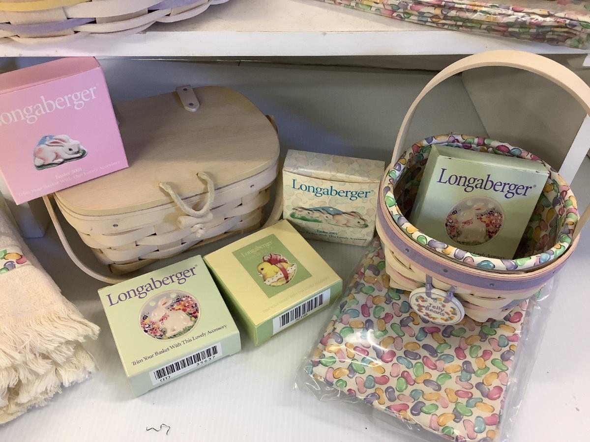 Lot of 5 Lonaberger Baskets with Jelly Bean napkins and 35" square table top and liners