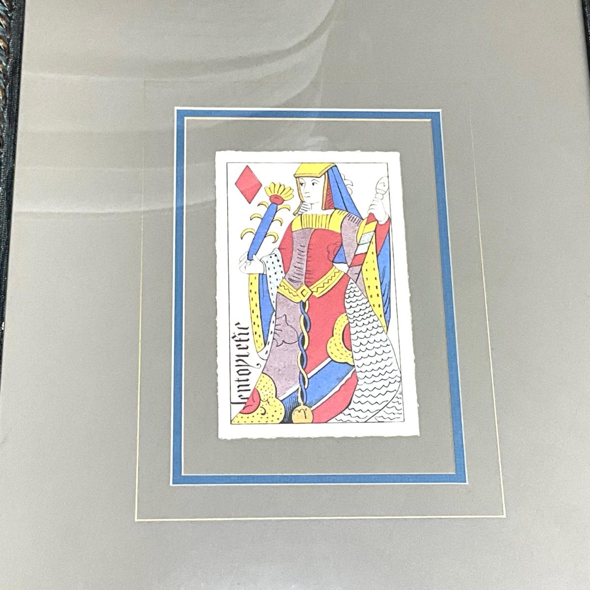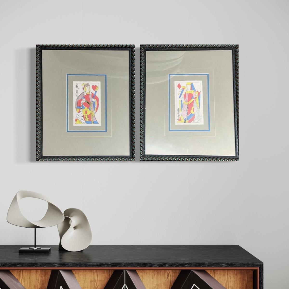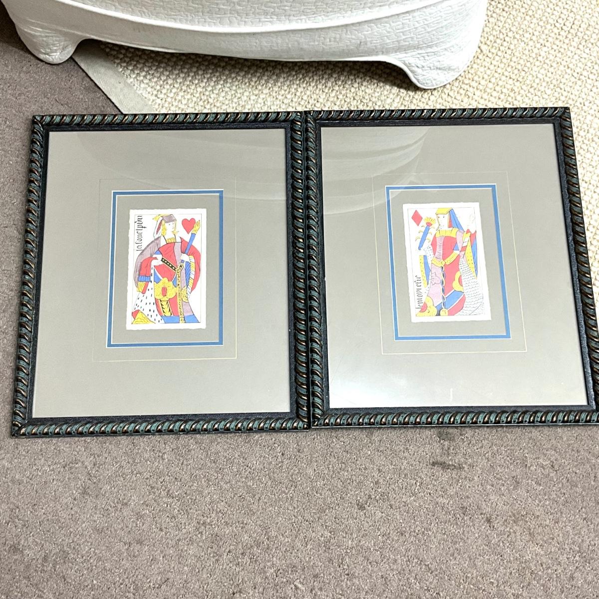 Prints are reproductions of 16th Century E. Hanger playing cards, designed for J. Conn Scott. They measure 17"W x 20"H.