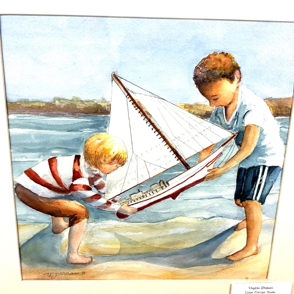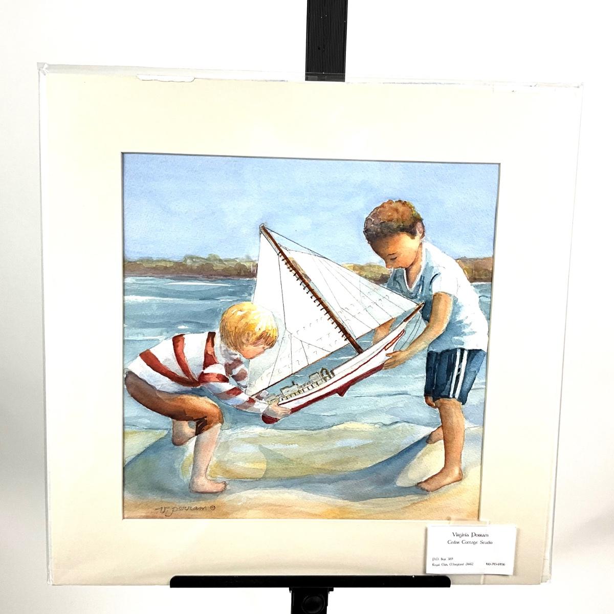 923 Original "Boys with Boat" Watercolor by Virginia Perram