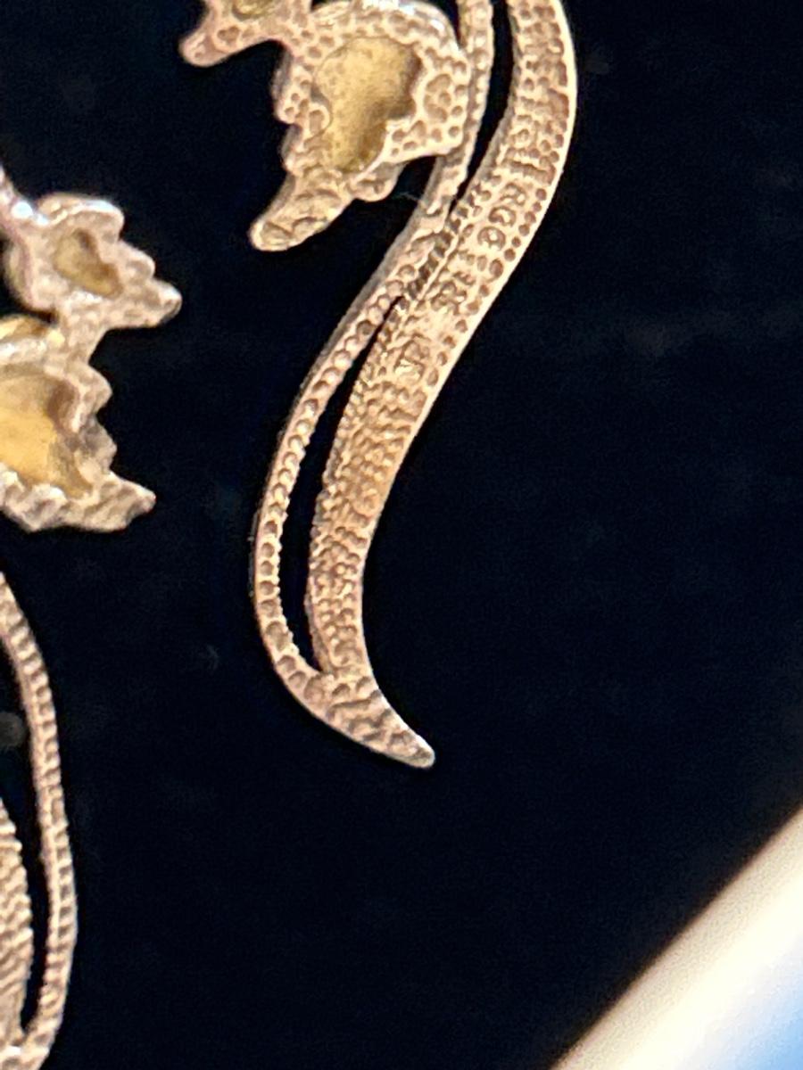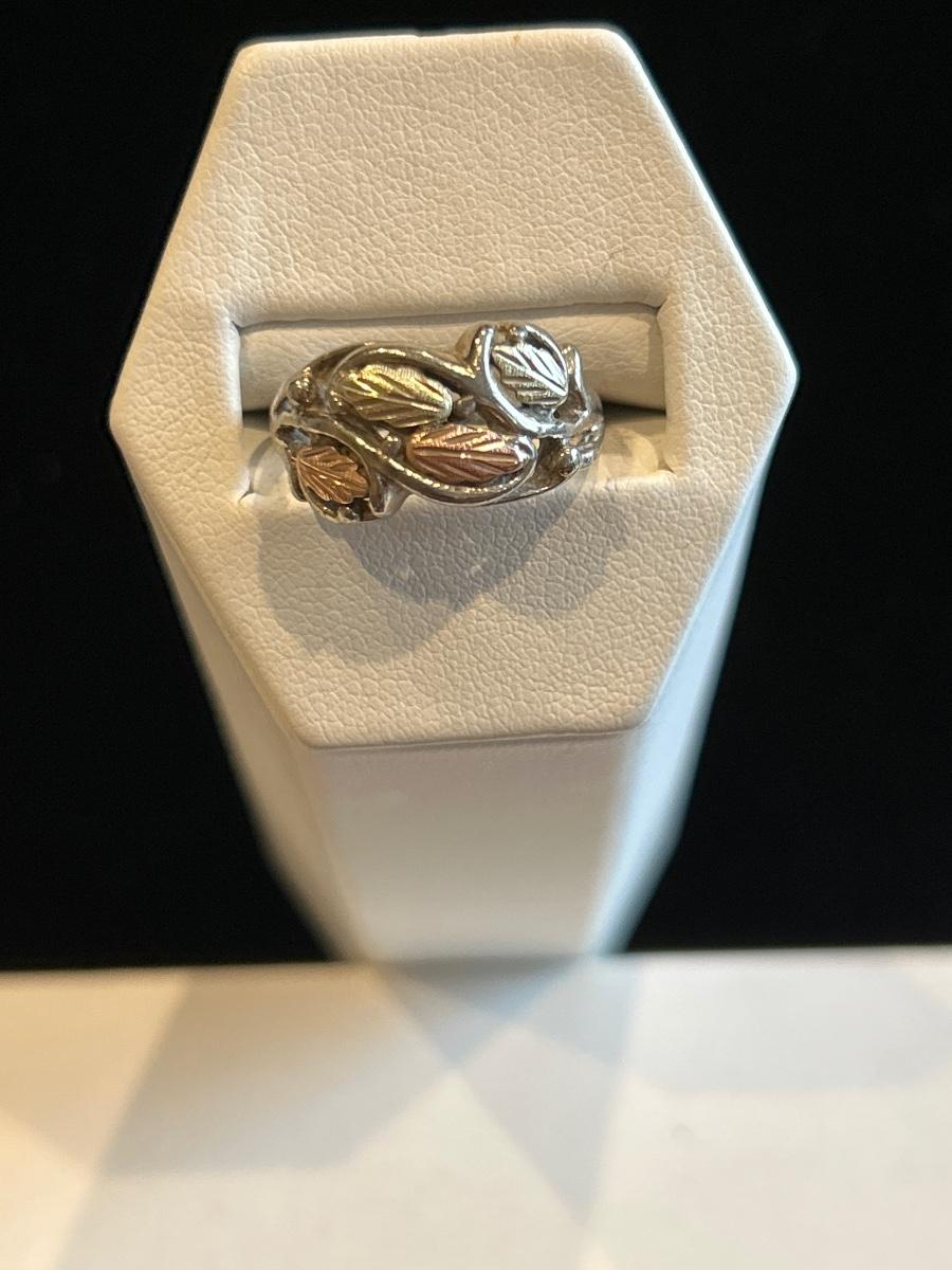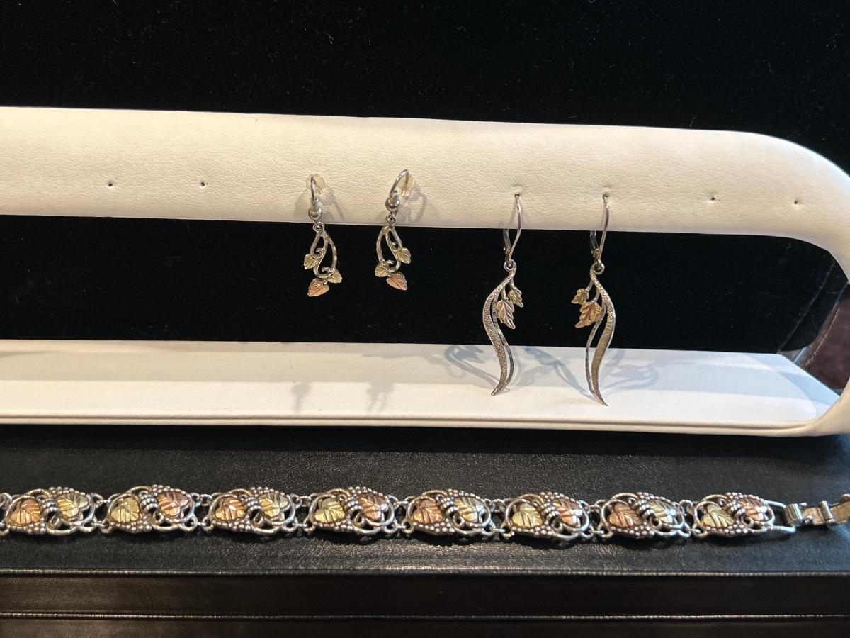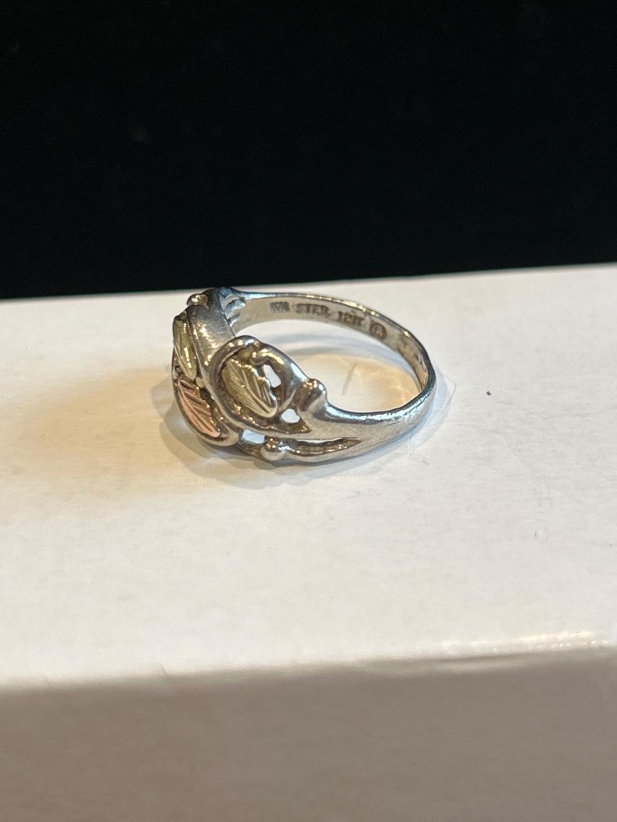 Each are marked 925 & 12K, black hills gold. Earrings are both for pierced. Ring is size 7.5.