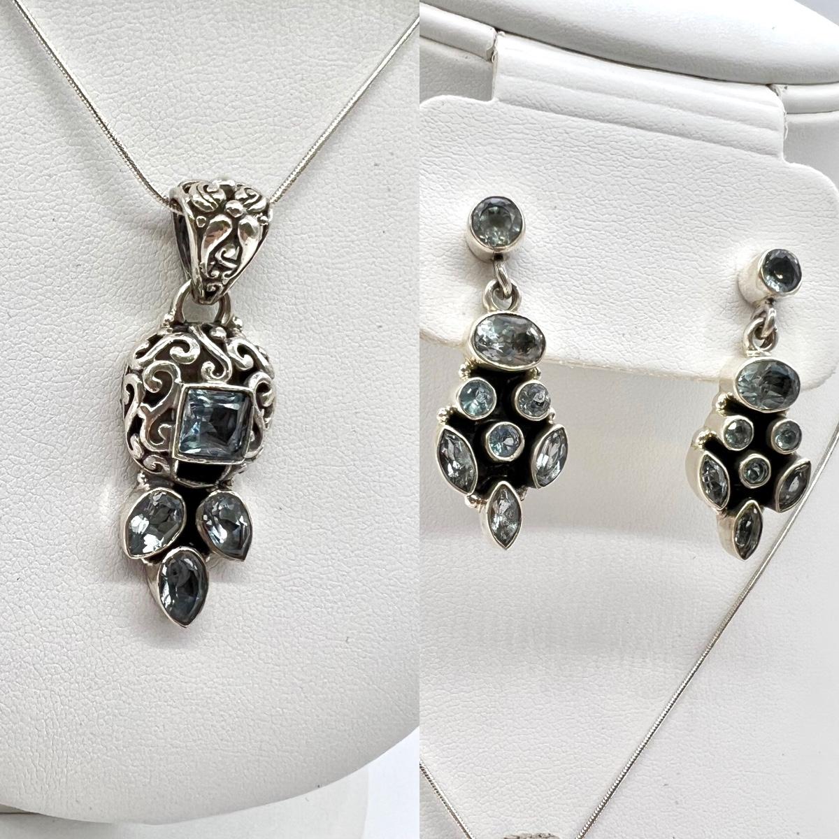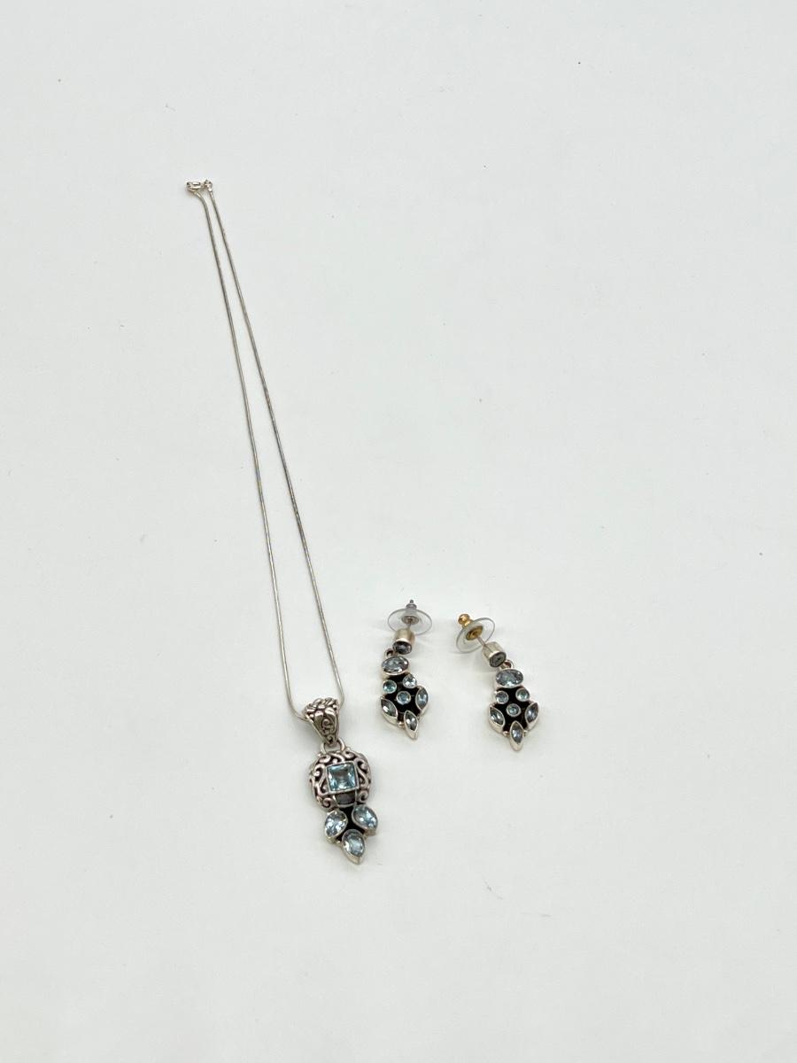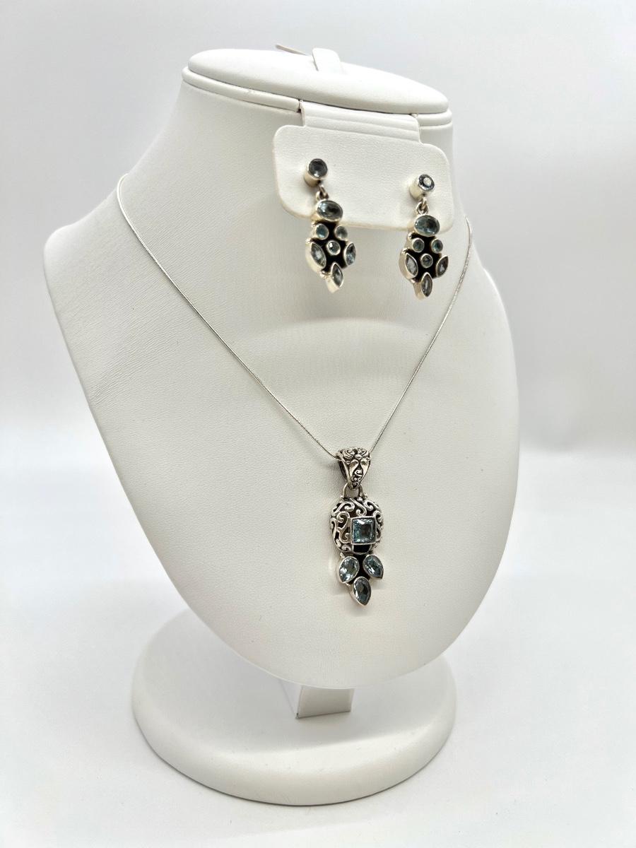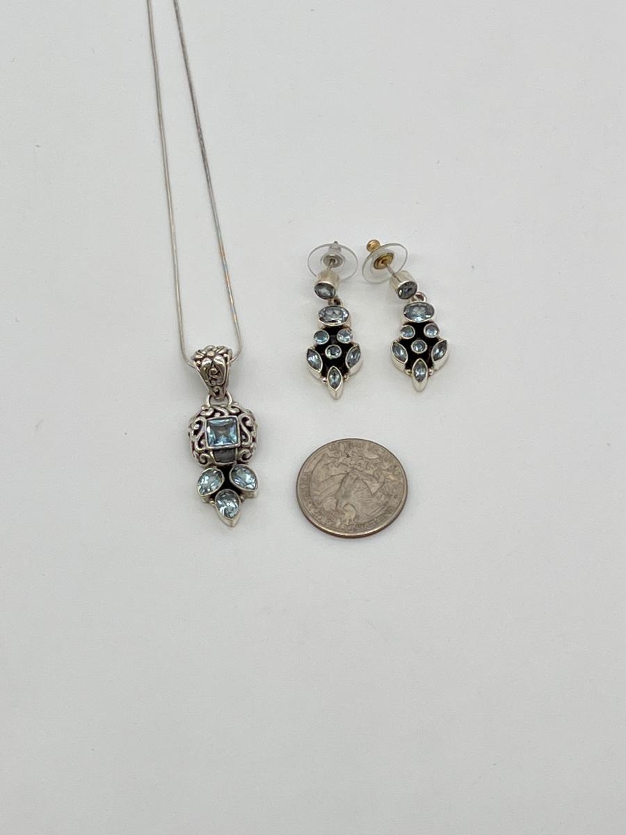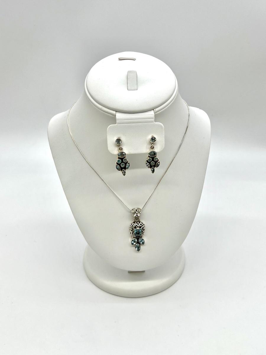 925 ~ 16” Blue Topaz Necklace & Earring Set