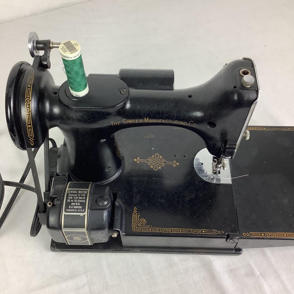 221 Singer Featherweight Sewing Machine. Comes with case.