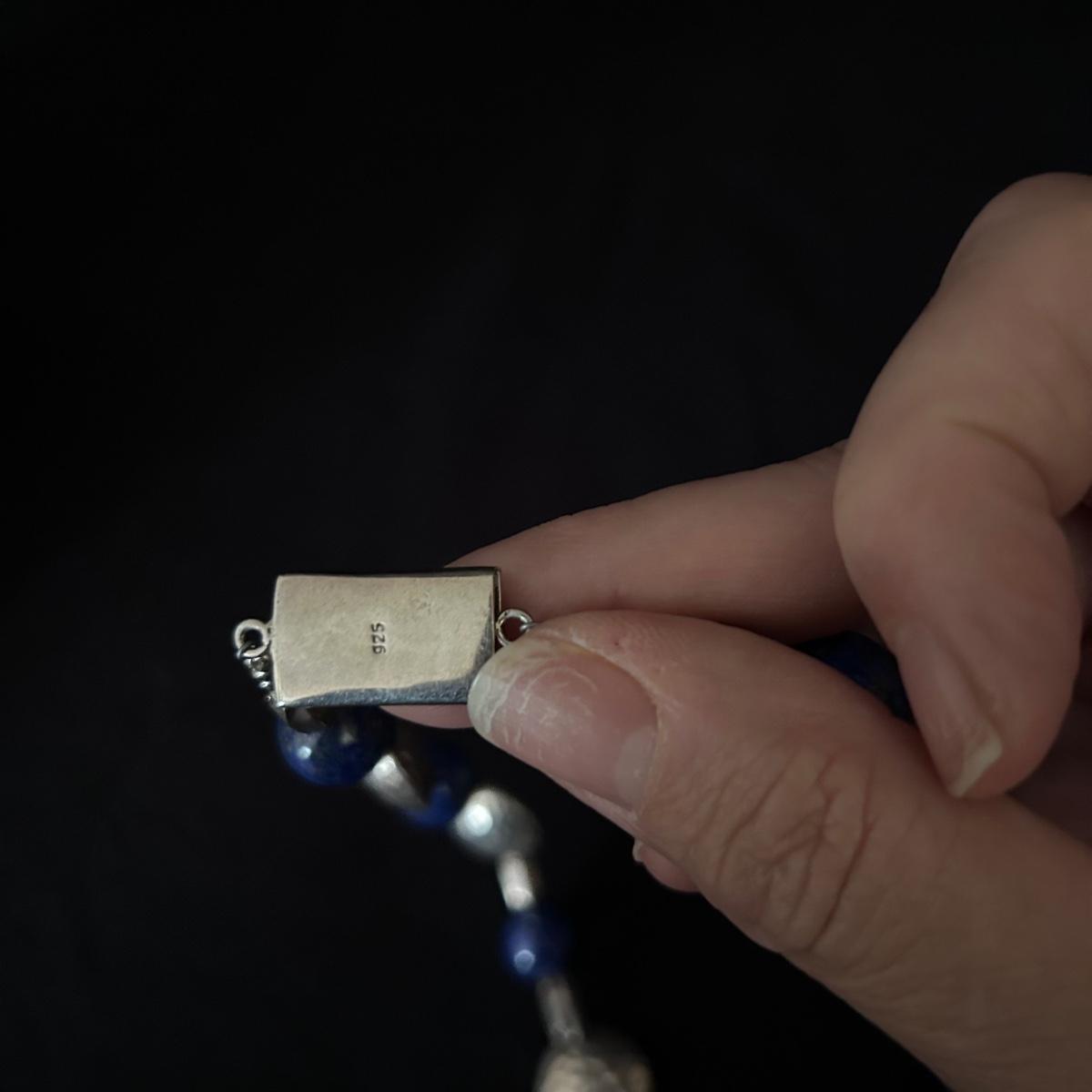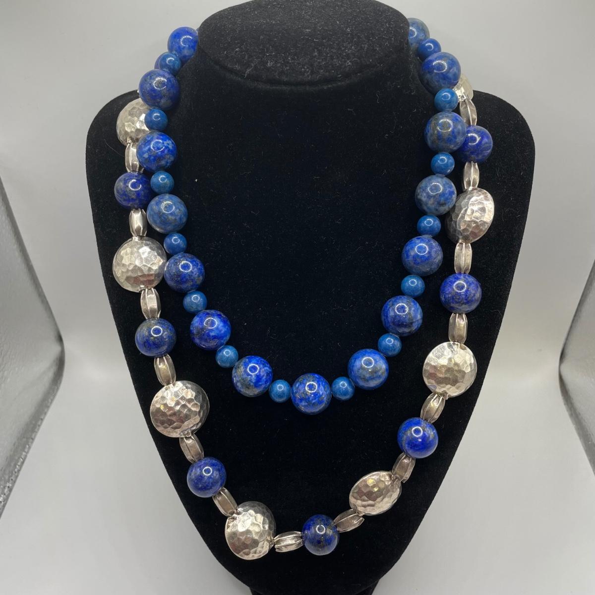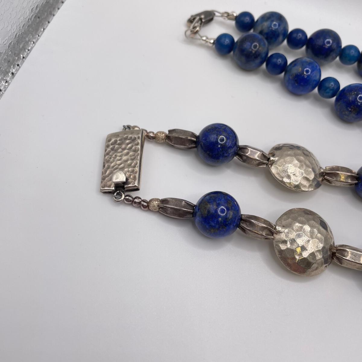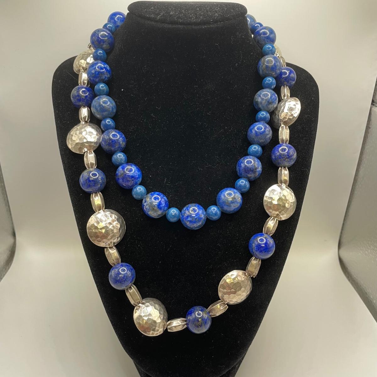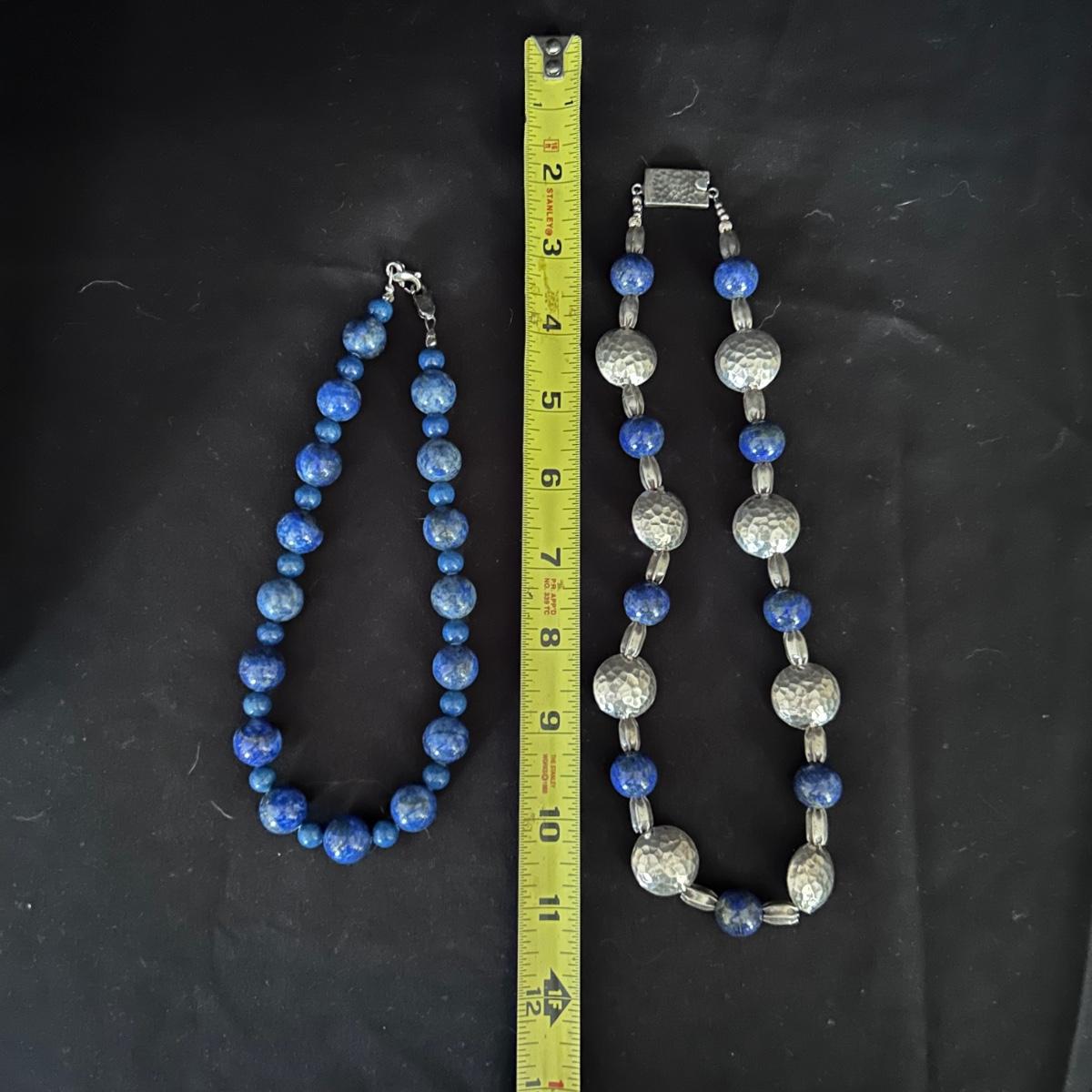 Two blue lapis colored stone necklaces with one having 925 marking on the clasp. Both pieces are quite heavy. Shipping available. All sales are final. No returns or refunds. Please bid accordingly.