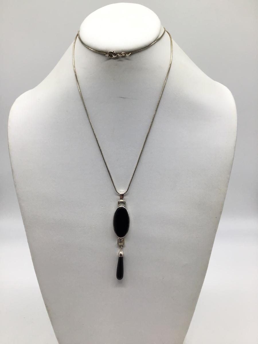 925 Ann Taylor black onyx Type stones necklace and pendant