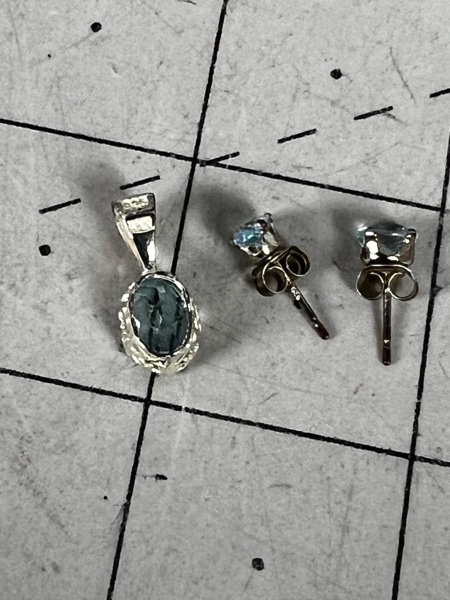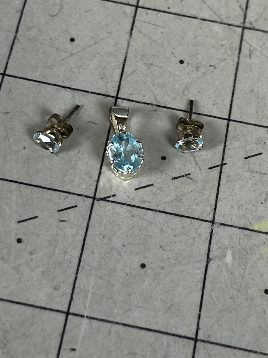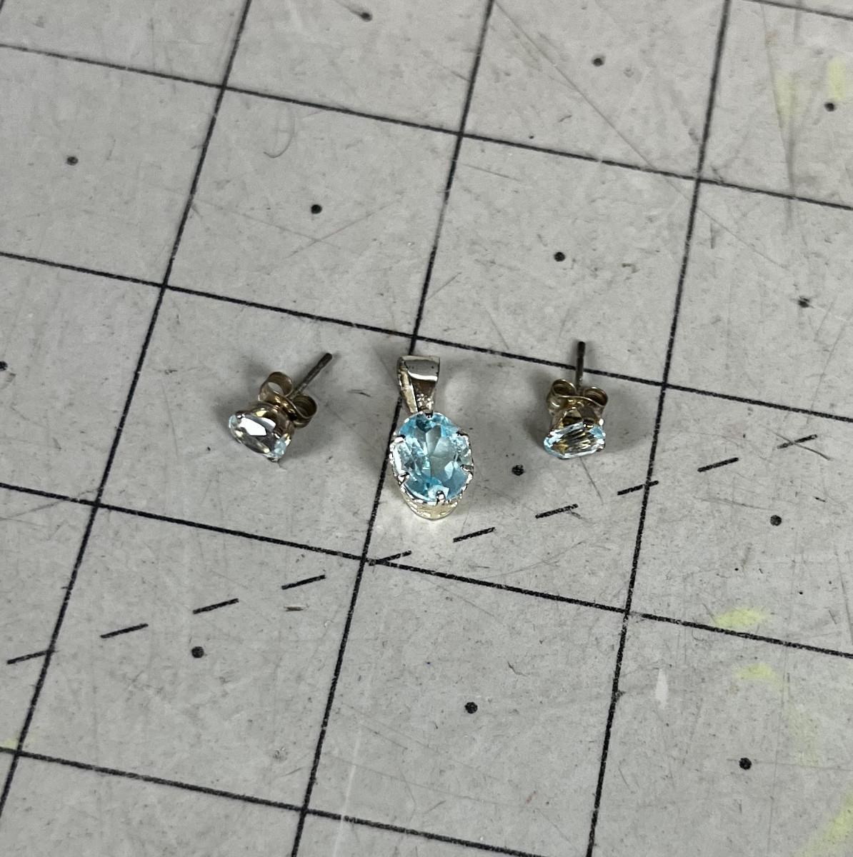 925 Aqua Marine Oval Cut Earing Set plus Pendant