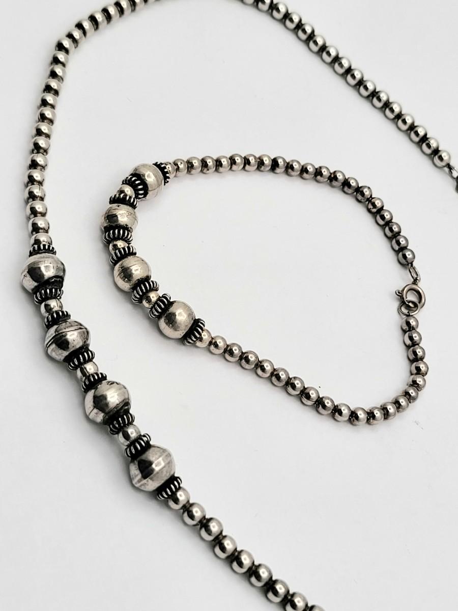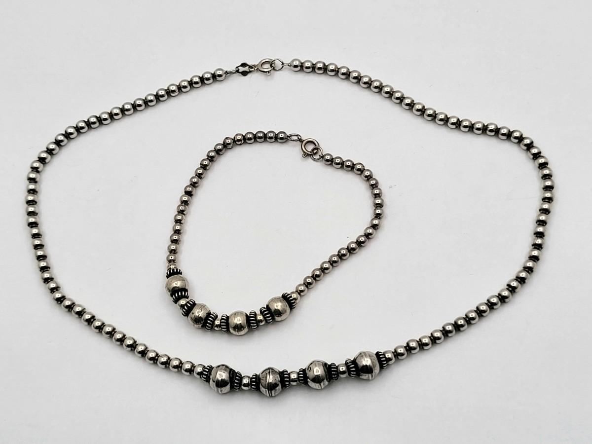 Sterling 925 bead necklace & bracelet set. Spring clasp. Necklace measures 16" and bracelet measures 7.25". Total weight 27.3 grams.