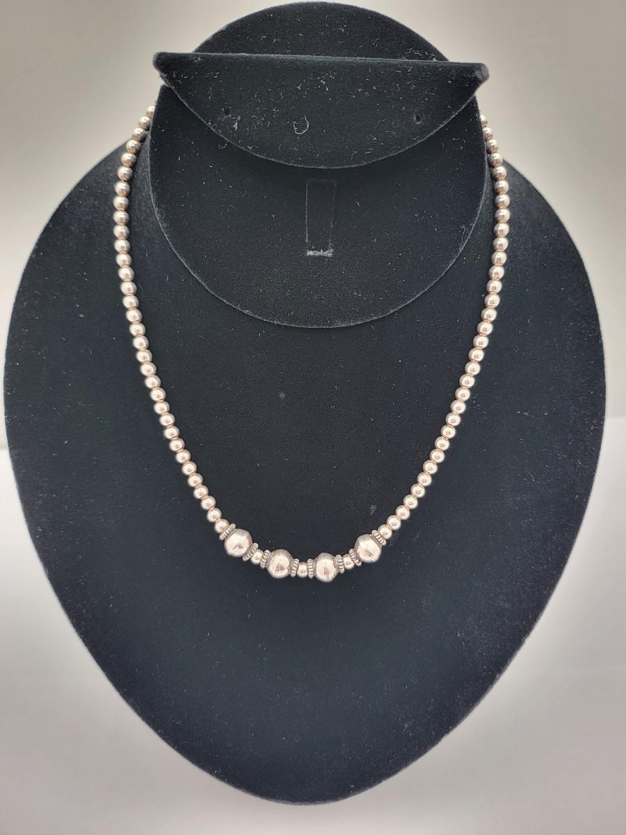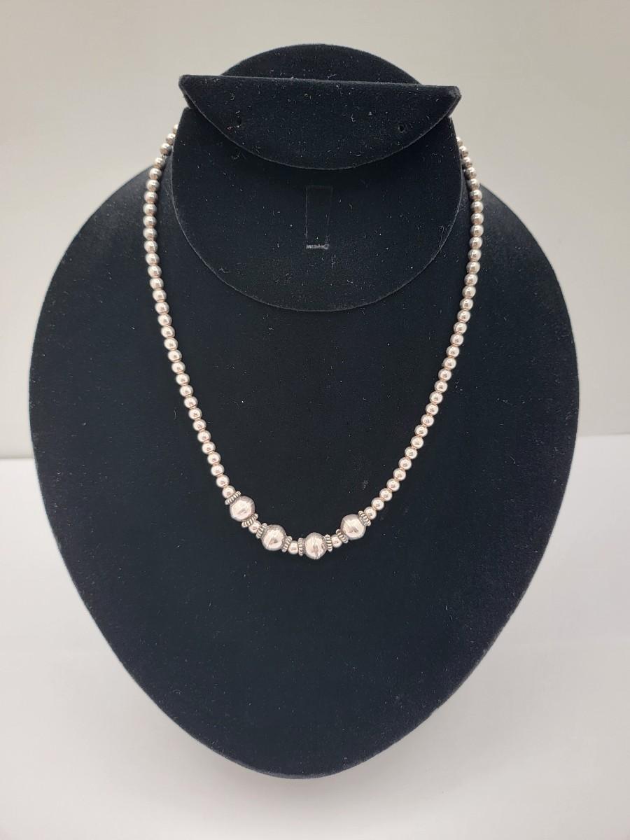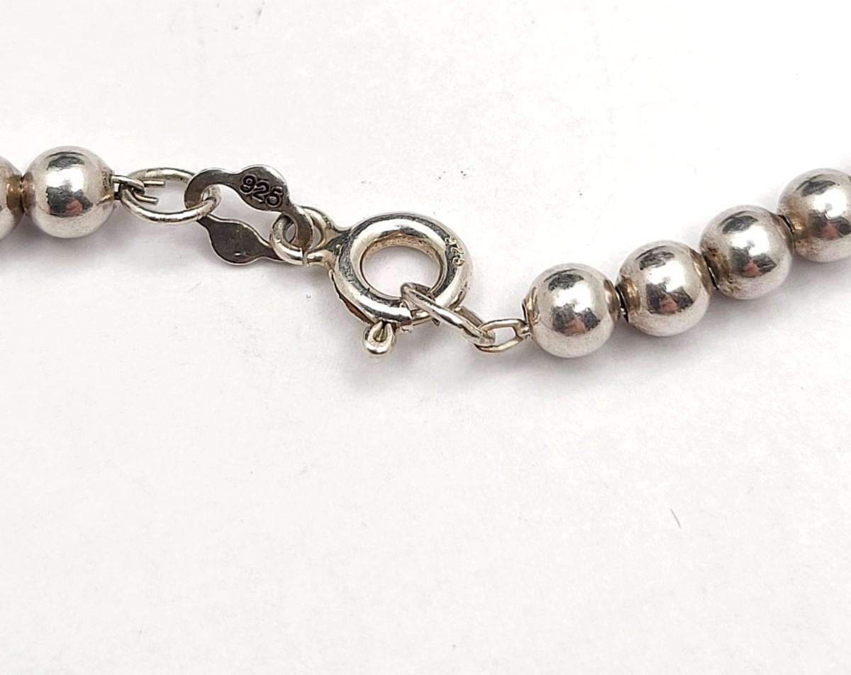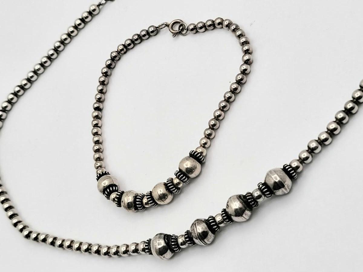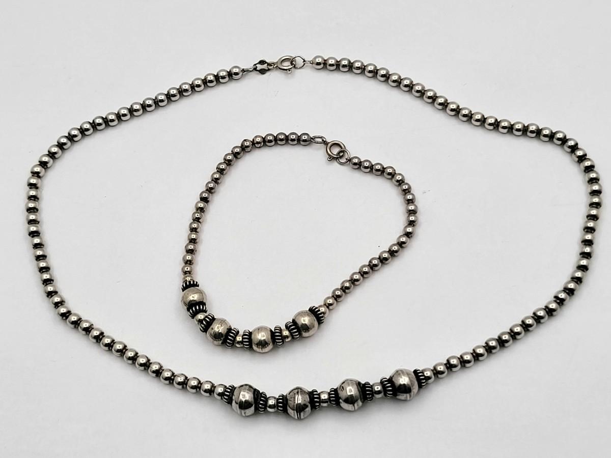 Sterling 925 bead necklace & bracelet set. Spring clasp. Necklace measures 16" and bracelet measures 7.25". Total weight 27.3 grams.