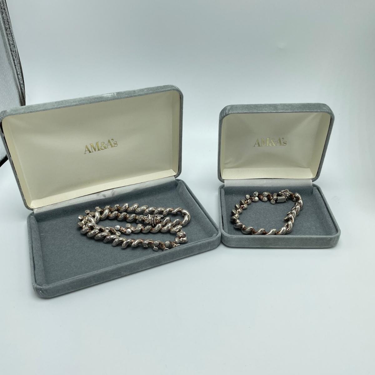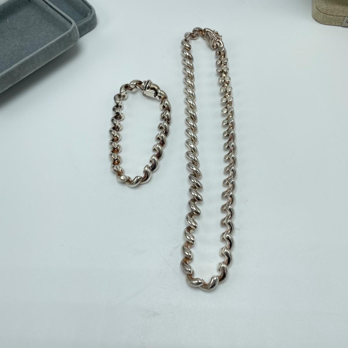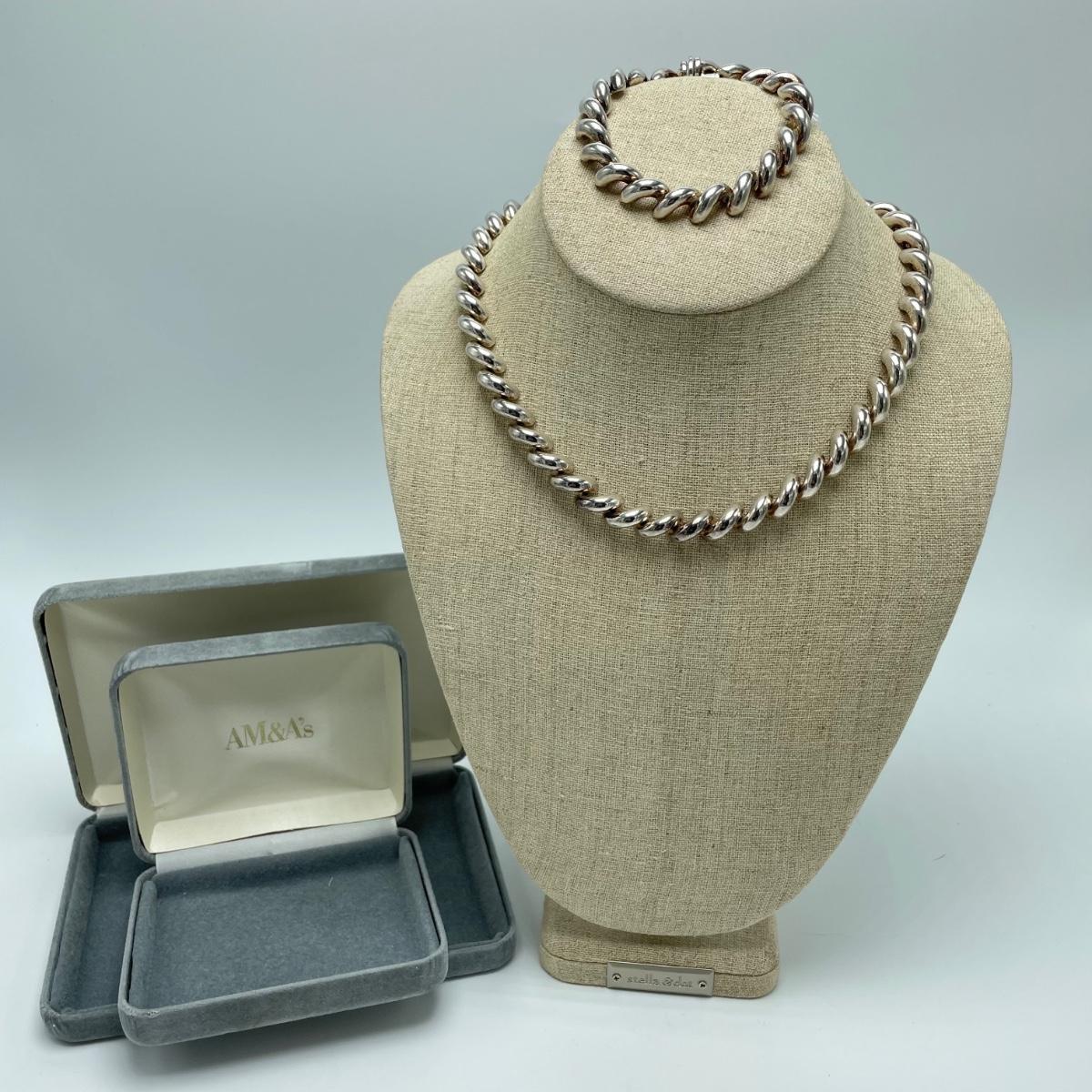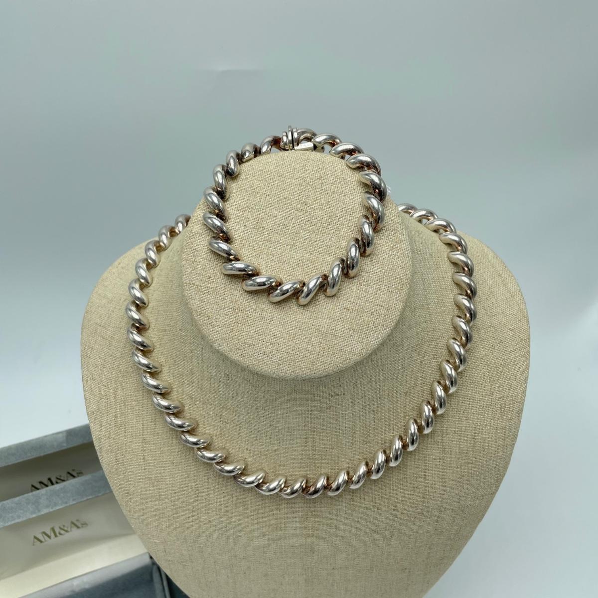 Almost gift ready, 925 marked bracelet and necklace set. Both pieces are very nice, but a little polishing to the underside probably bring them into like-new condition. Both pieces are marked 925 Italy on one clasp and ISC on the other. See images. Starting value is at or near melt value. Shipping available.
