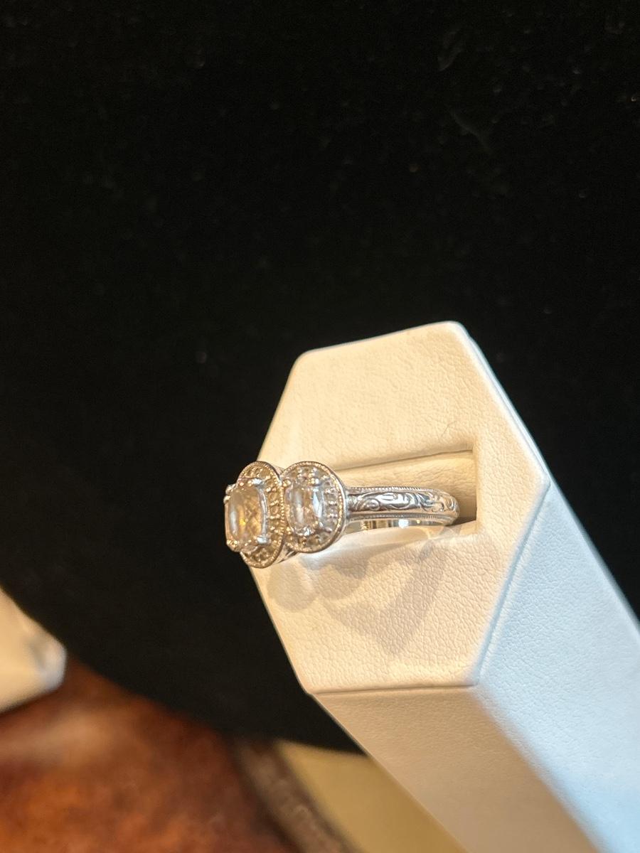 The ring is a size 9.5 & they’re both quite heavy & good quality. Ring has side detail as well.