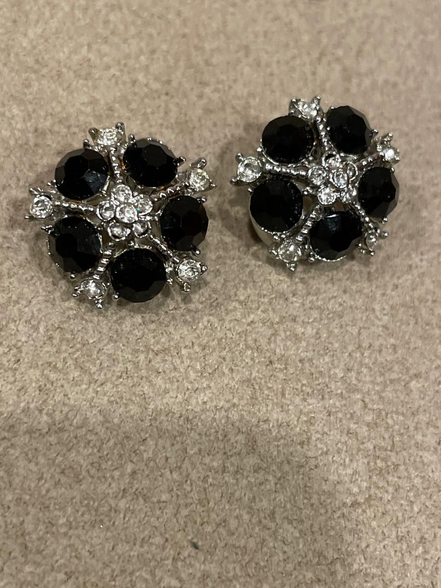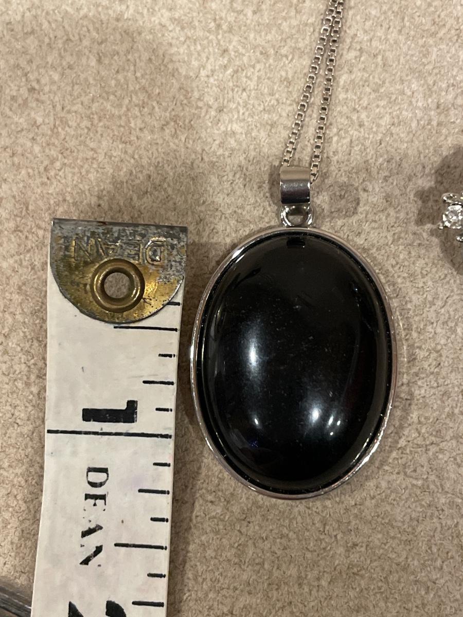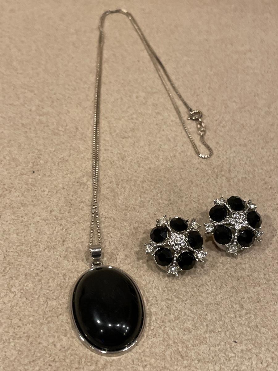 925 chain and black pendant & black stone clip ons