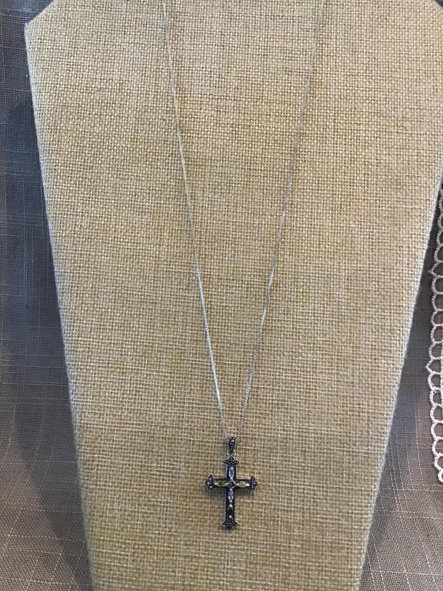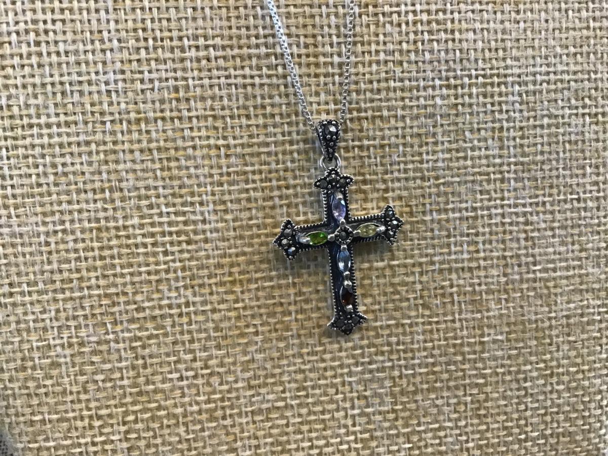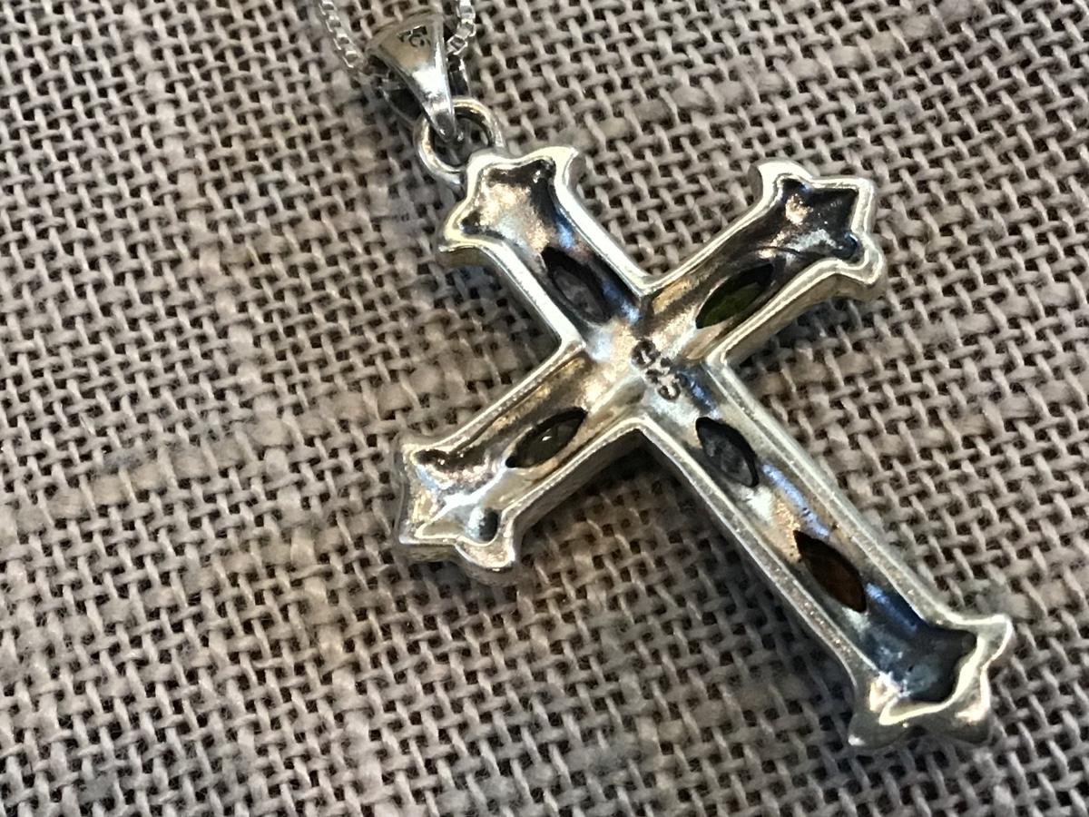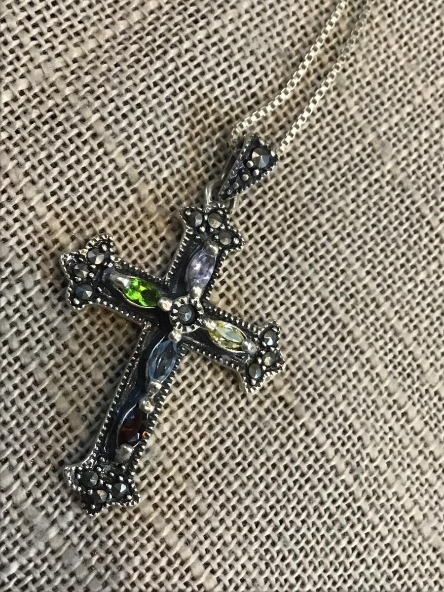925 Cross Pendant with colored Stones 925 Silver Chain