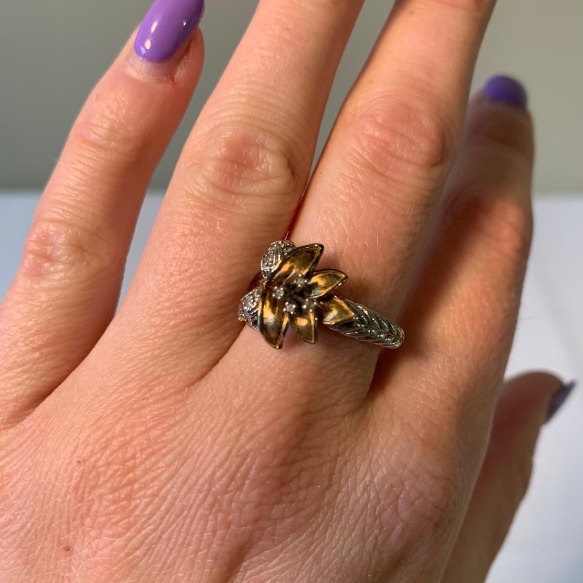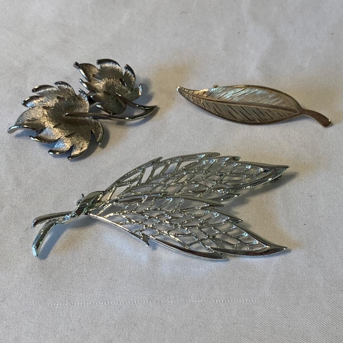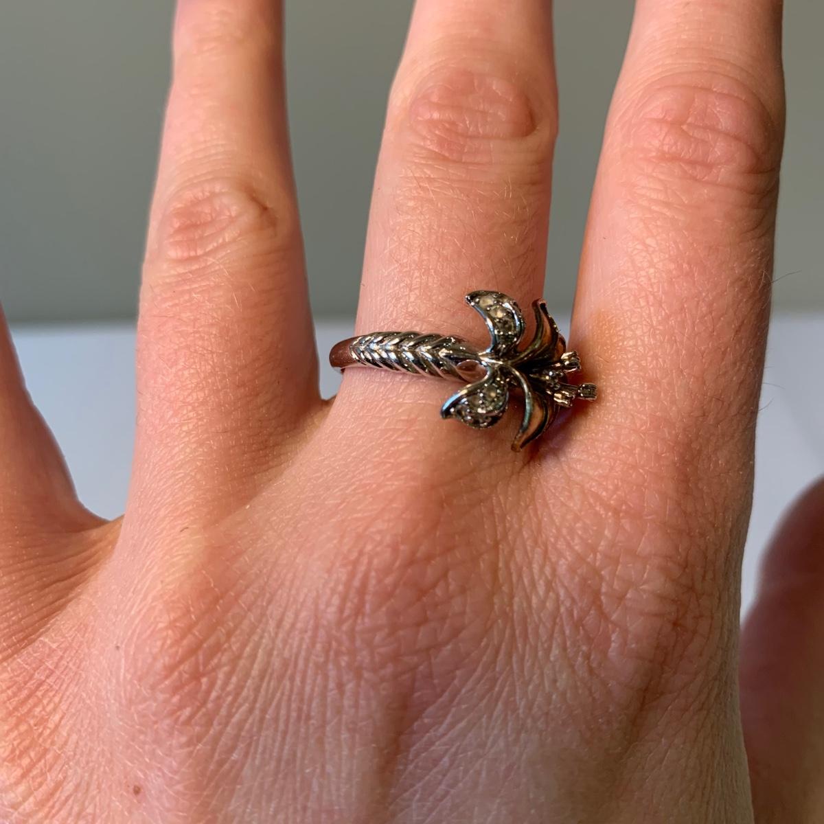 This lot features a beautiful and unique floral ring and eight fashion pins. The ring is marked 925. It appears to be size 8.