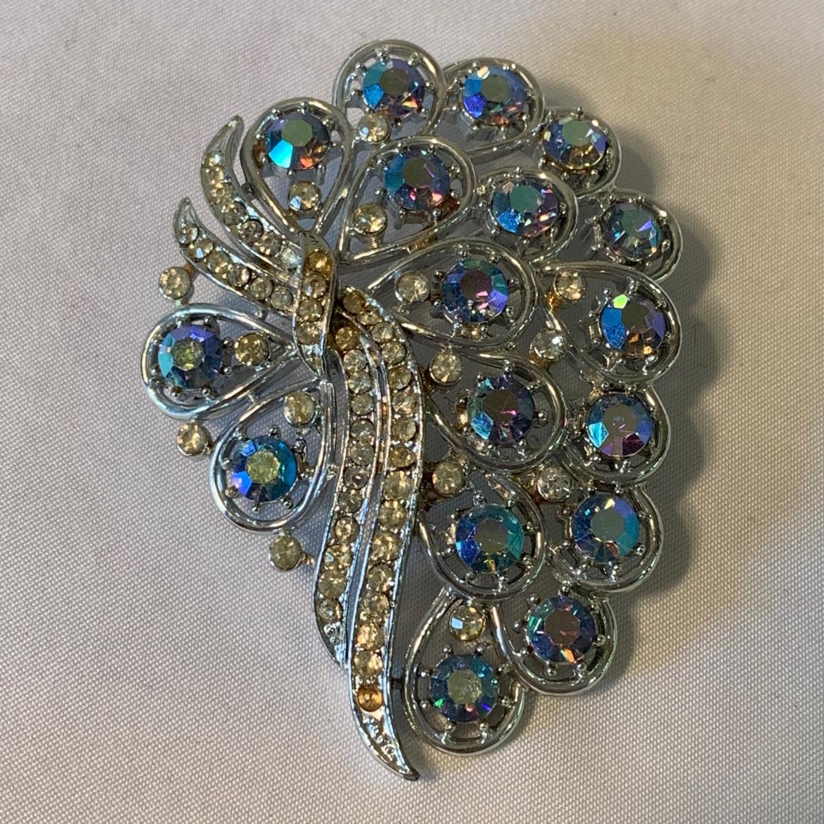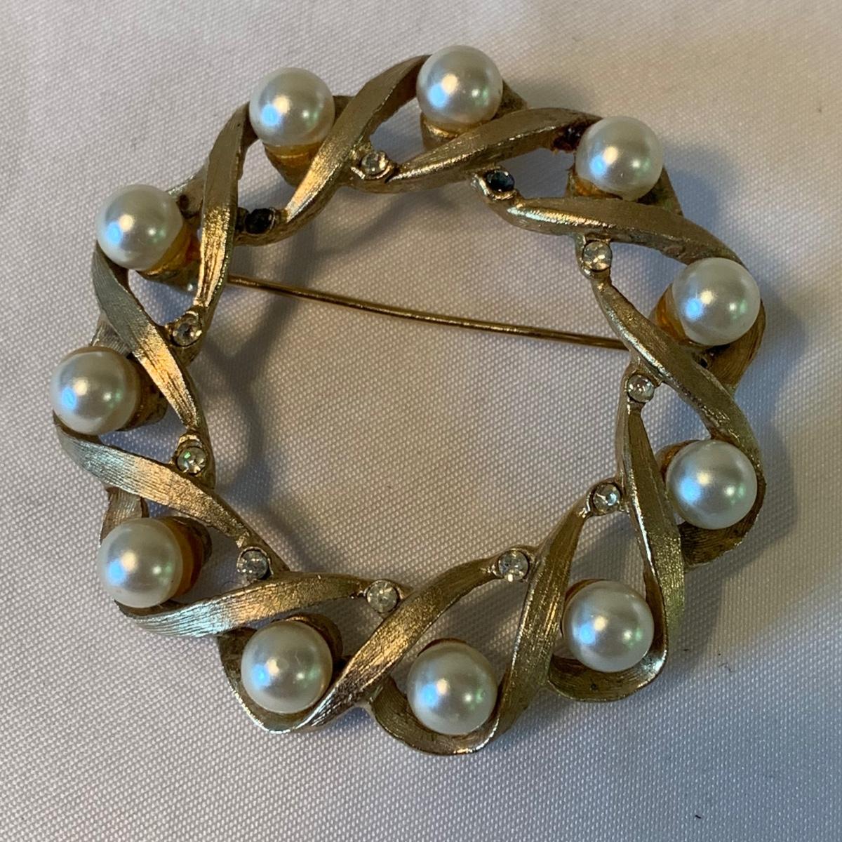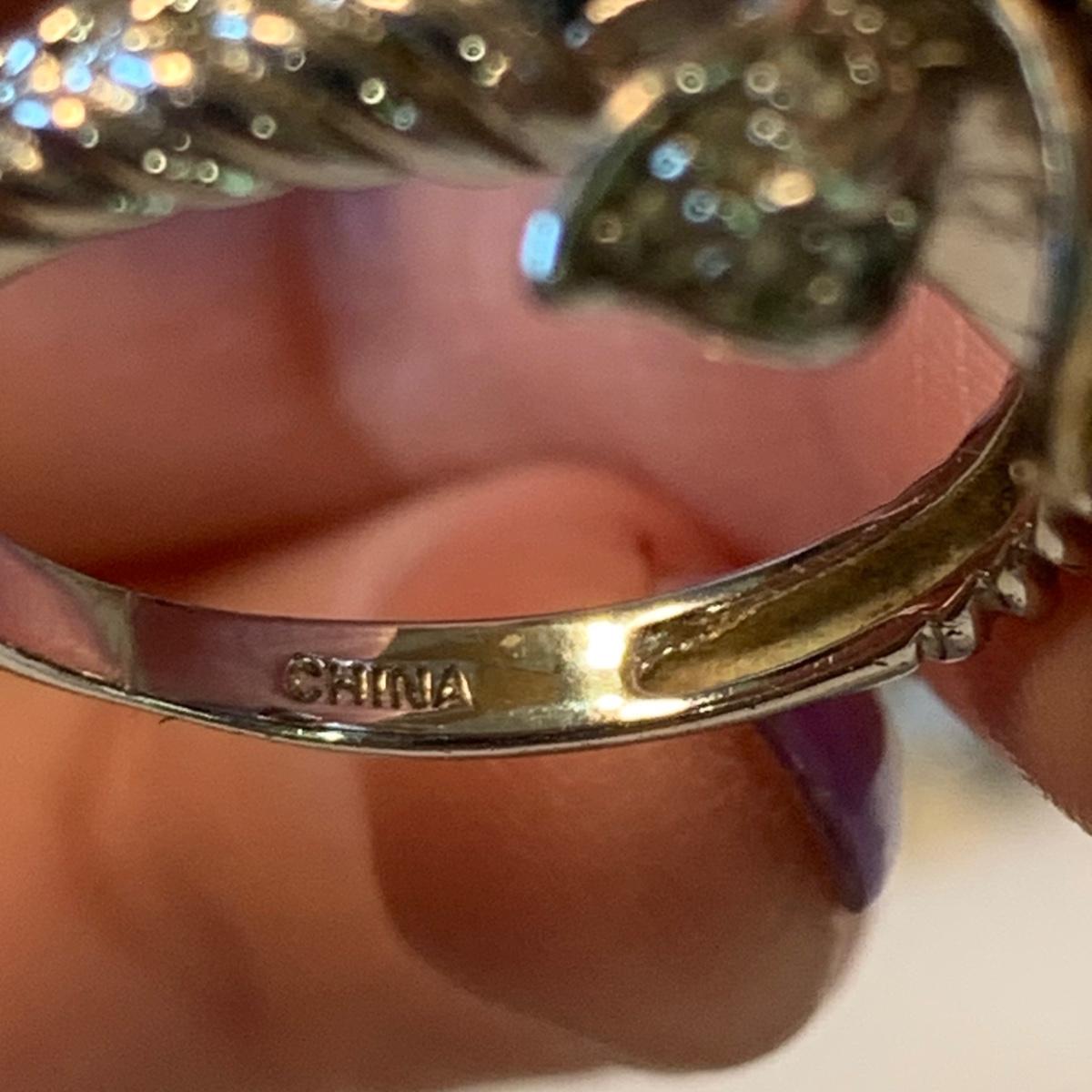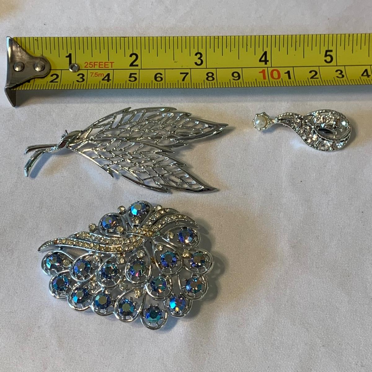 This lot features a beautiful and unique floral ring and eight fashion pins. The ring is marked 925. It appears to be size 8.