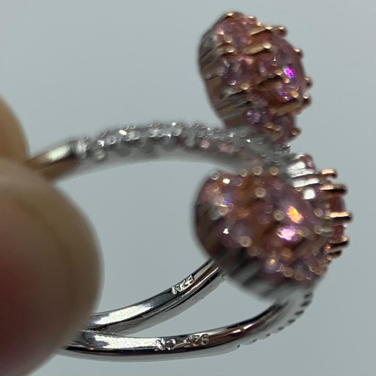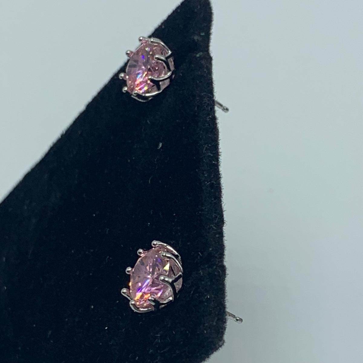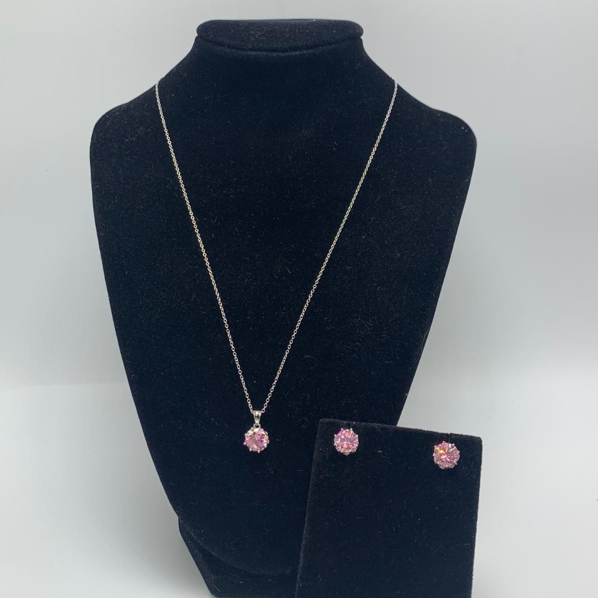 A collection of rings, bracelets, necklaces, and earrings with pink and purple colored gemstones set in Sterling Silver. There are six fixed length bracelets, five adjustable bracelets, and an elasticized bracelet, as well as seven rings, three necklaces with pendants, and six pairs of earrings for pierced ears. The necklace with the light pink pendant matches one of the pairs of stud earrings. One necklace has three pendants that match three of the earrings; it is designed to switch out the pendant you want to wear. The necklace chains are 18” and one is adjustable to be longer. One ring is size adjustable. Almost all items are stamped “˜925’. Three are not (two bracelets and one ring) and these items are shown in the last photograph. See all images for examples of known markings/brands.