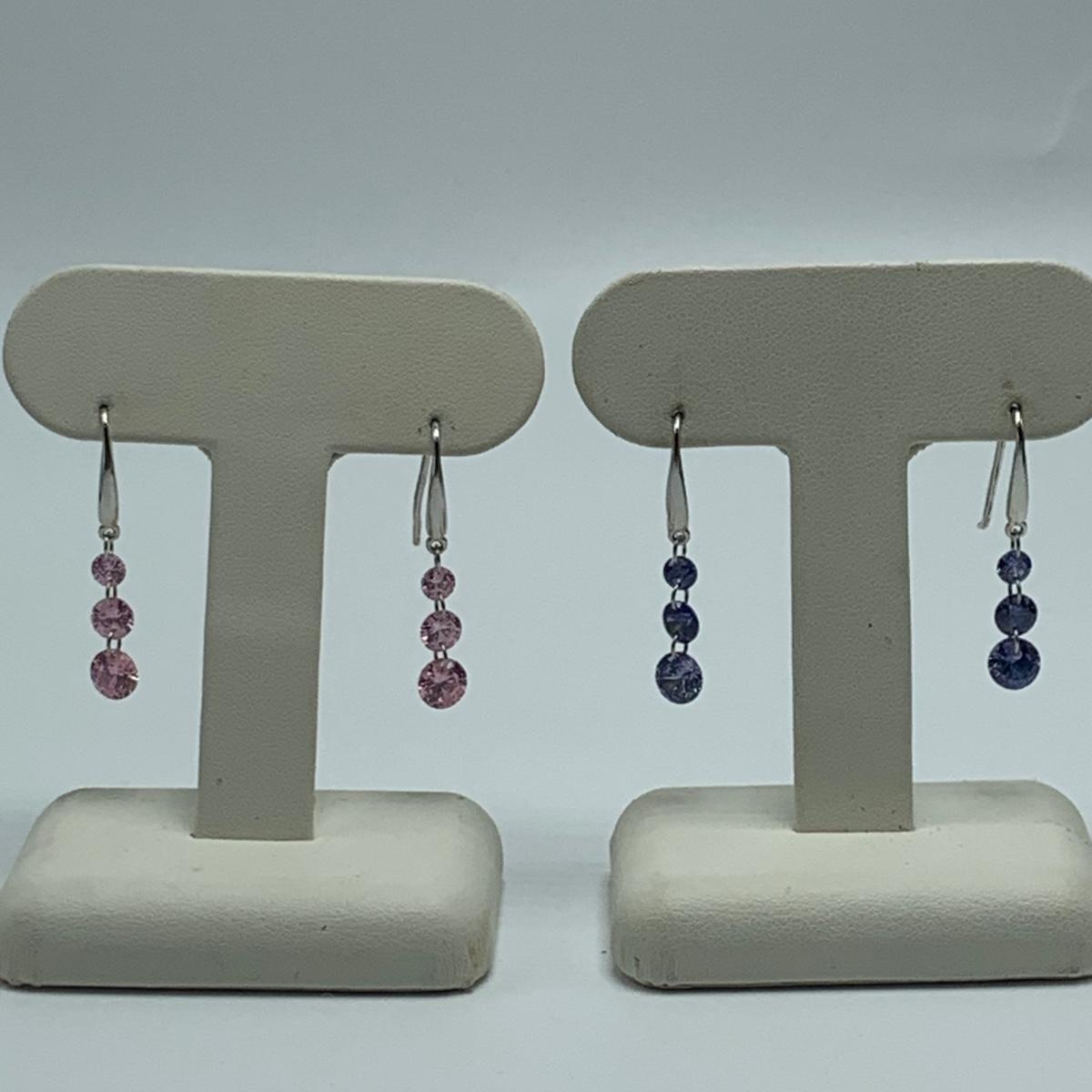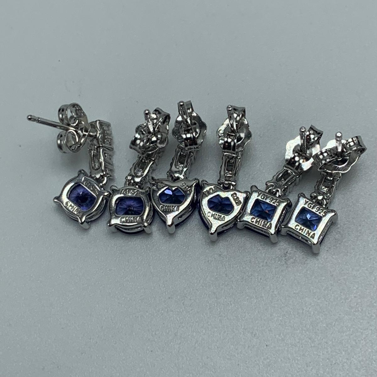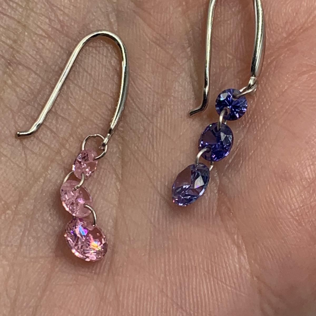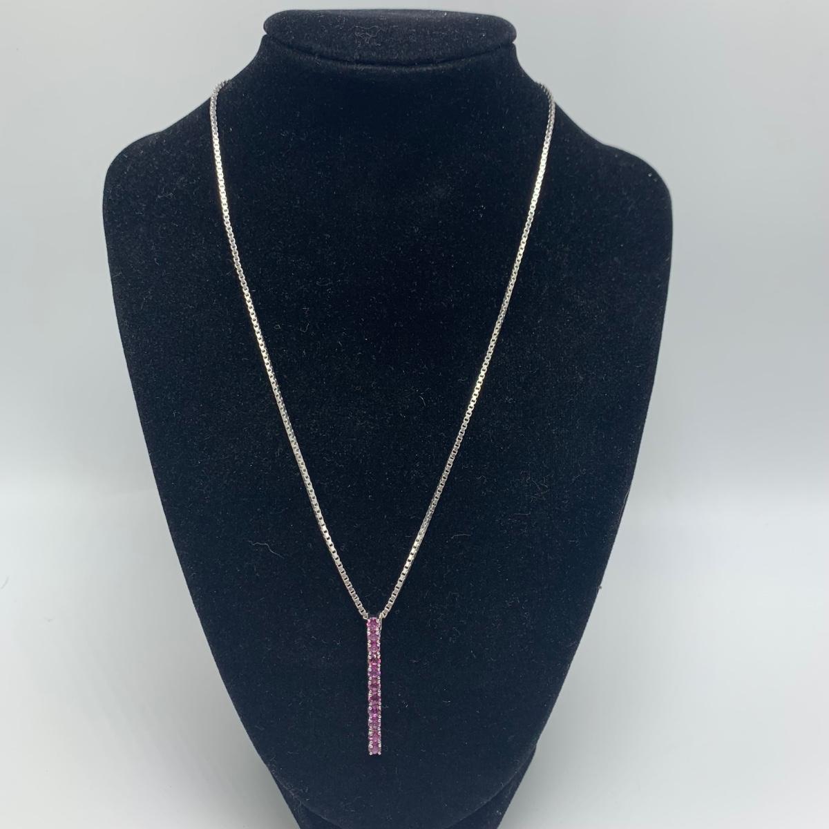 A collection of rings, bracelets, necklaces, and earrings with pink and purple colored gemstones set in Sterling Silver. There are six fixed length bracelets, five adjustable bracelets, and an elasticized bracelet, as well as seven rings, three necklaces with pendants, and six pairs of earrings for pierced ears. The necklace with the light pink pendant matches one of the pairs of stud earrings. One necklace has three pendants that match three of the earrings; it is designed to switch out the pendant you want to wear. The necklace chains are 18” and one is adjustable to be longer. One ring is size adjustable. Almost all items are stamped “˜925’. Three are not (two bracelets and one ring) and these items are shown in the last photograph. See all images for examples of known markings/brands.