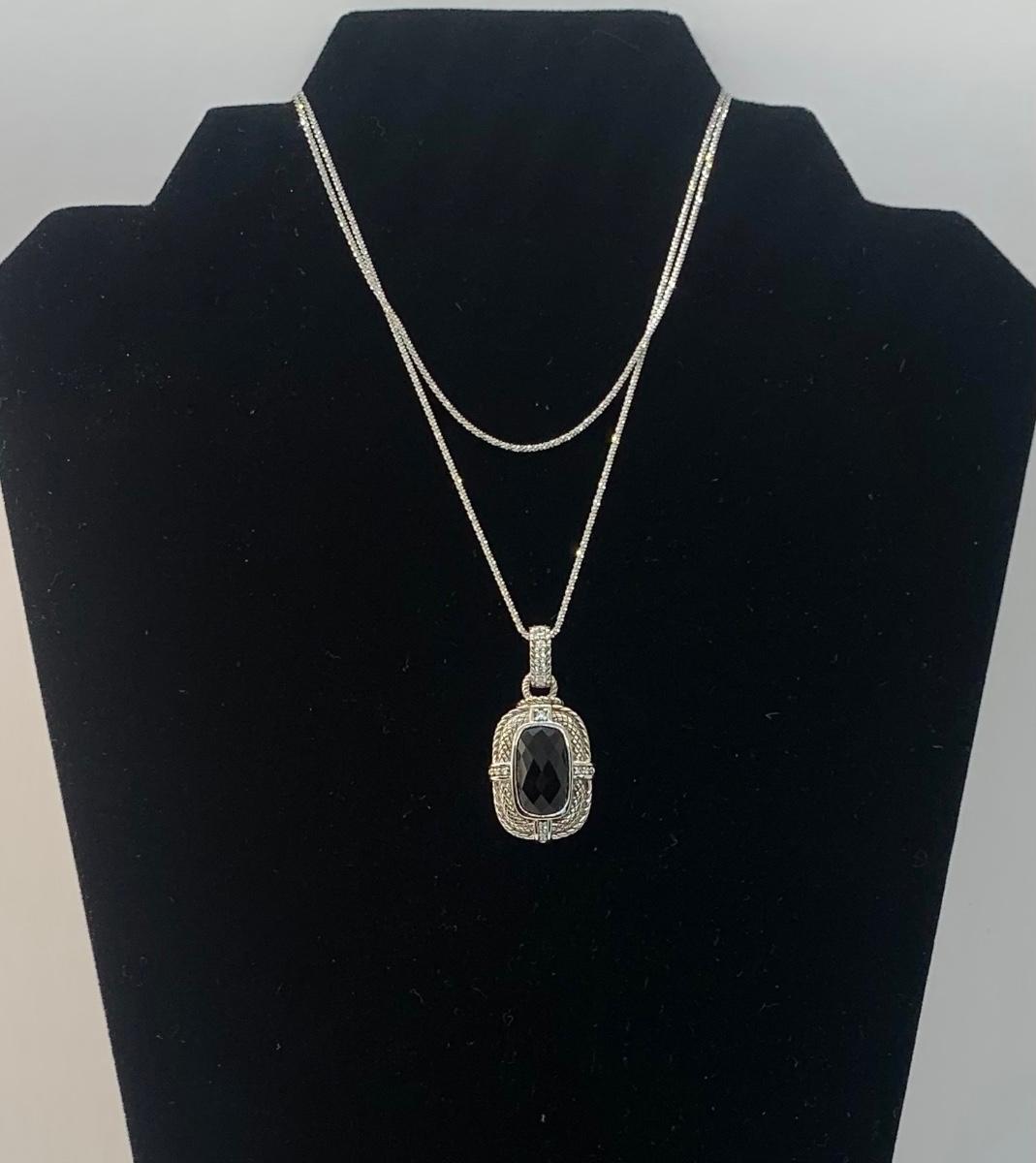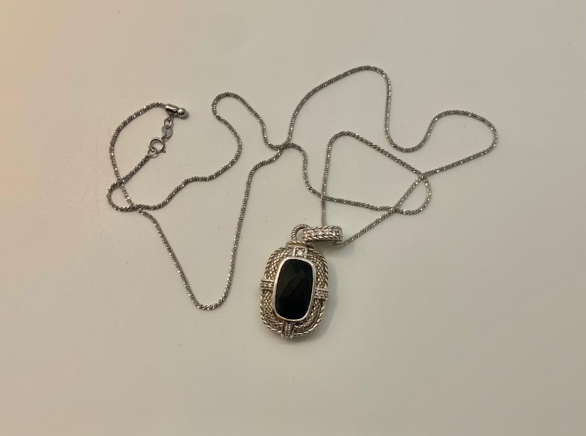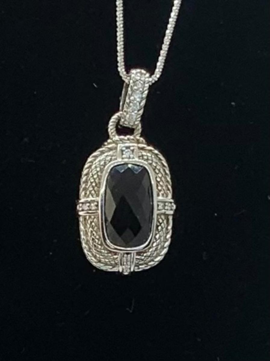 925 Judith Ripka Pendant w/ 14k White Gold Slide Chain