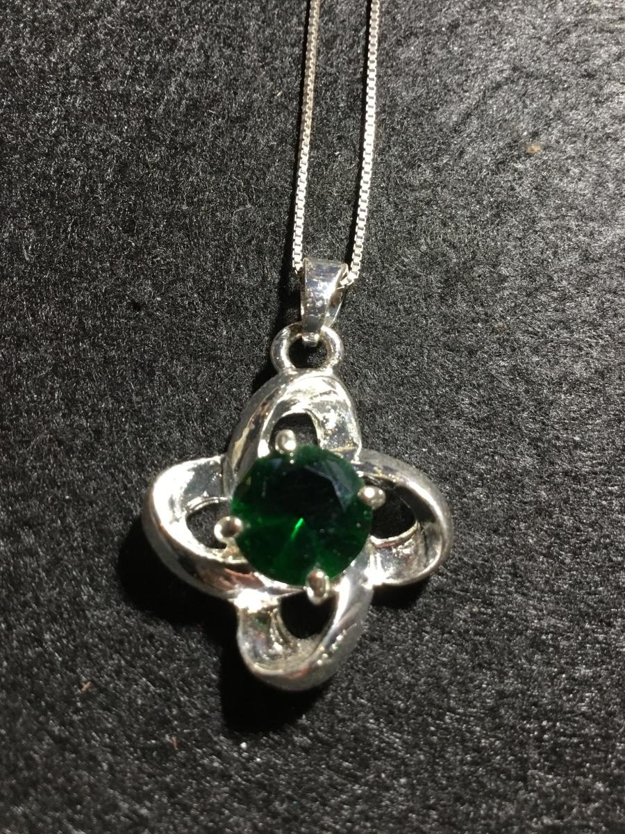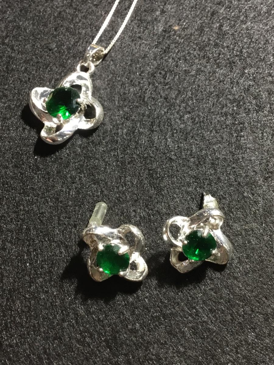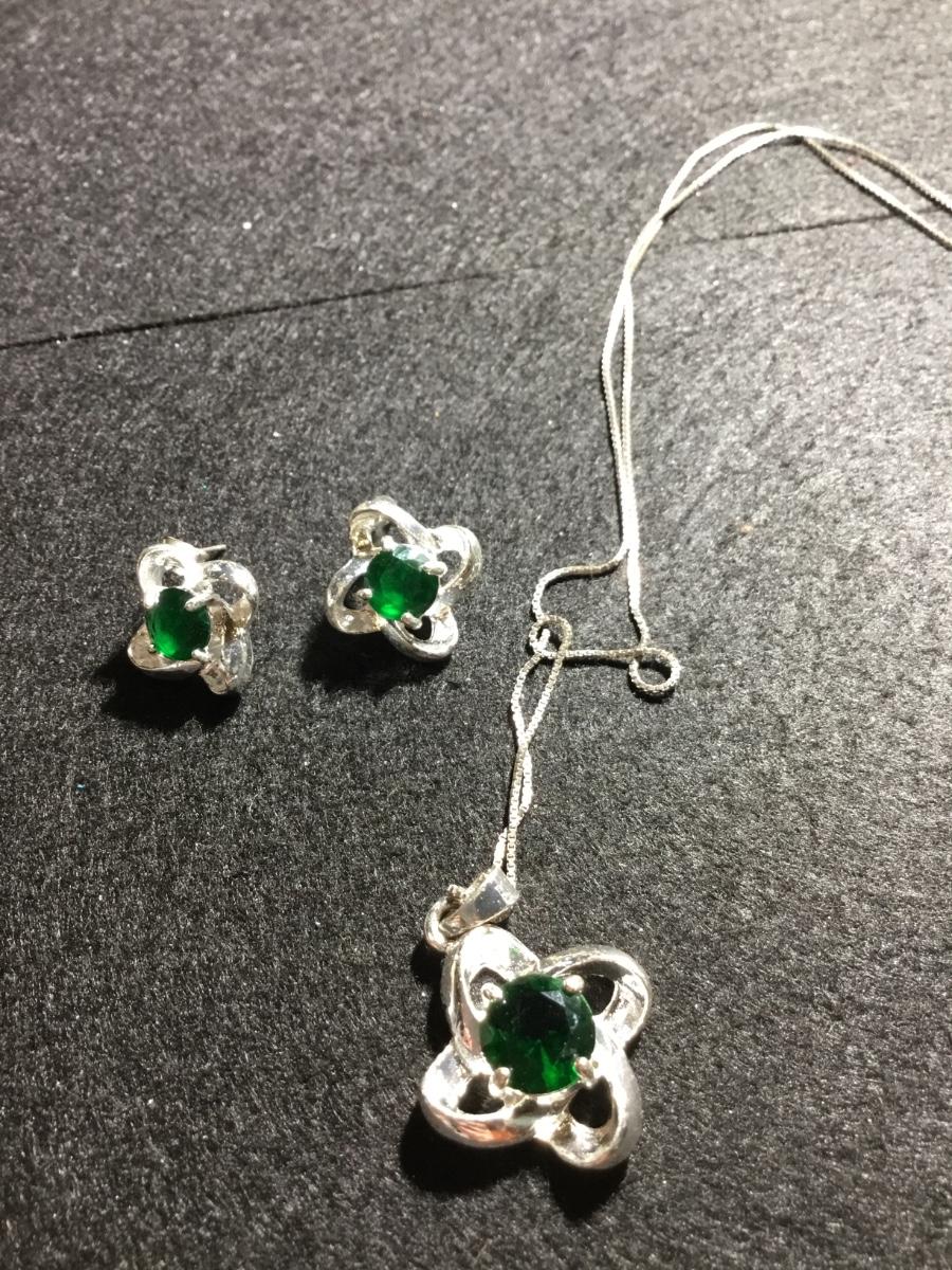925 marked green emerald gem type necklace and earrings set