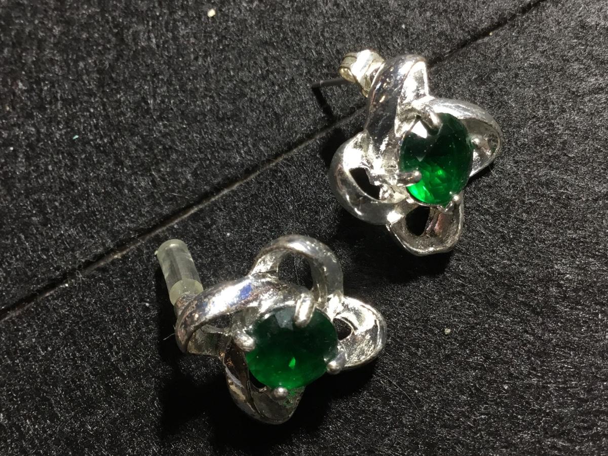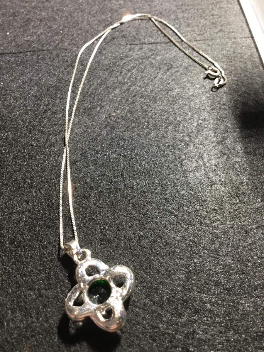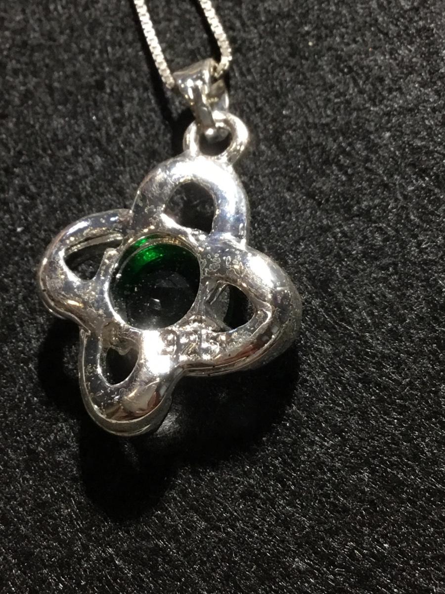 925 marked green emerald gem type necklace and earrings set