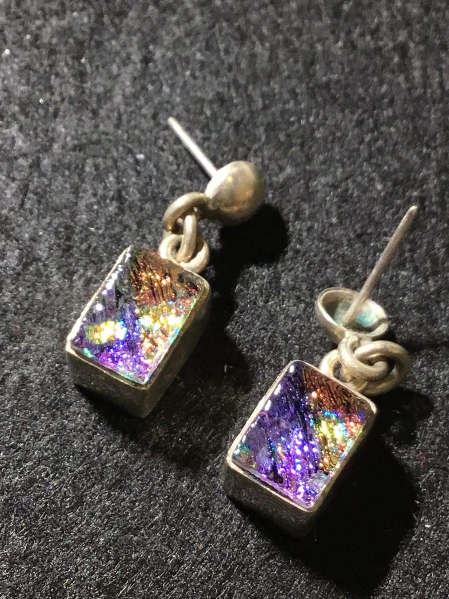 925 marked rectangle rainbow center statement earrings