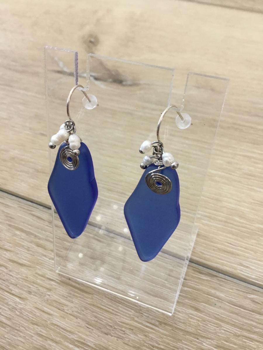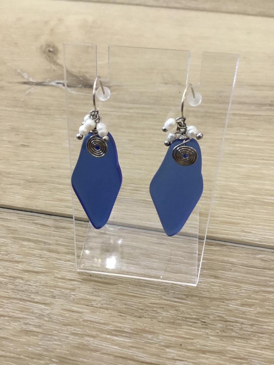925 marked silver blue dangle earrings