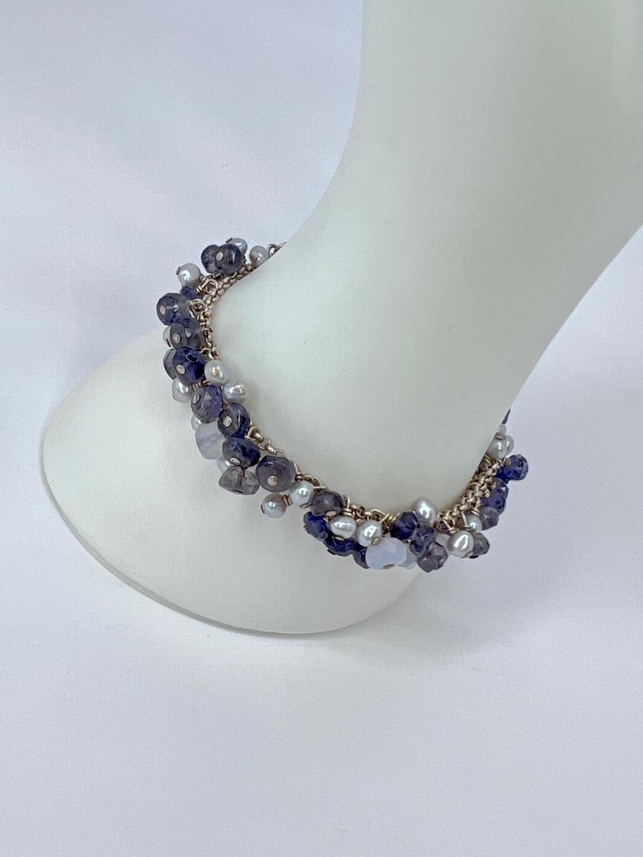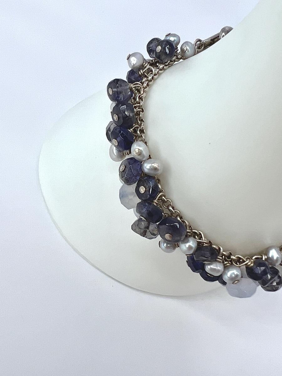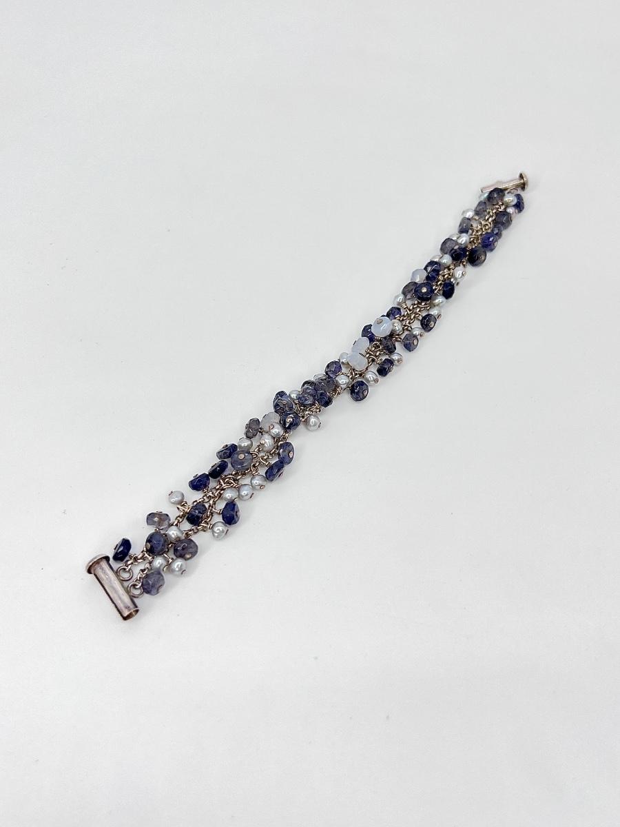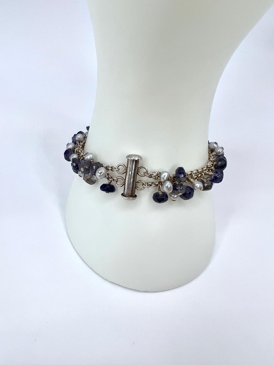 925 ~ 7" Multi Stone & Pearl Barrel Lock Bracelet (EK)