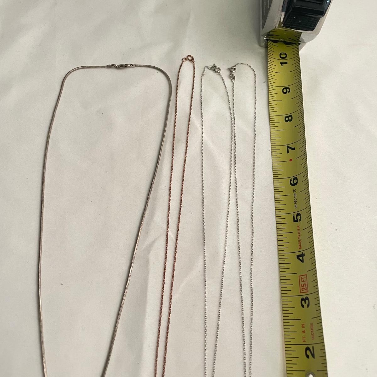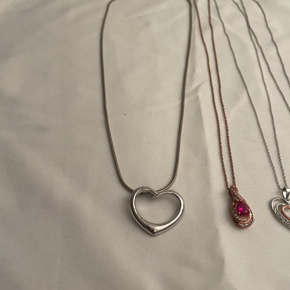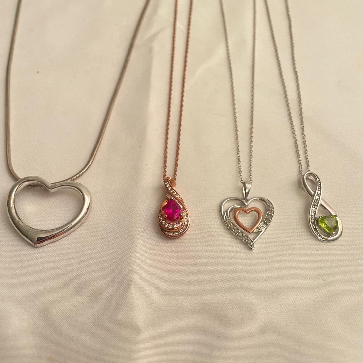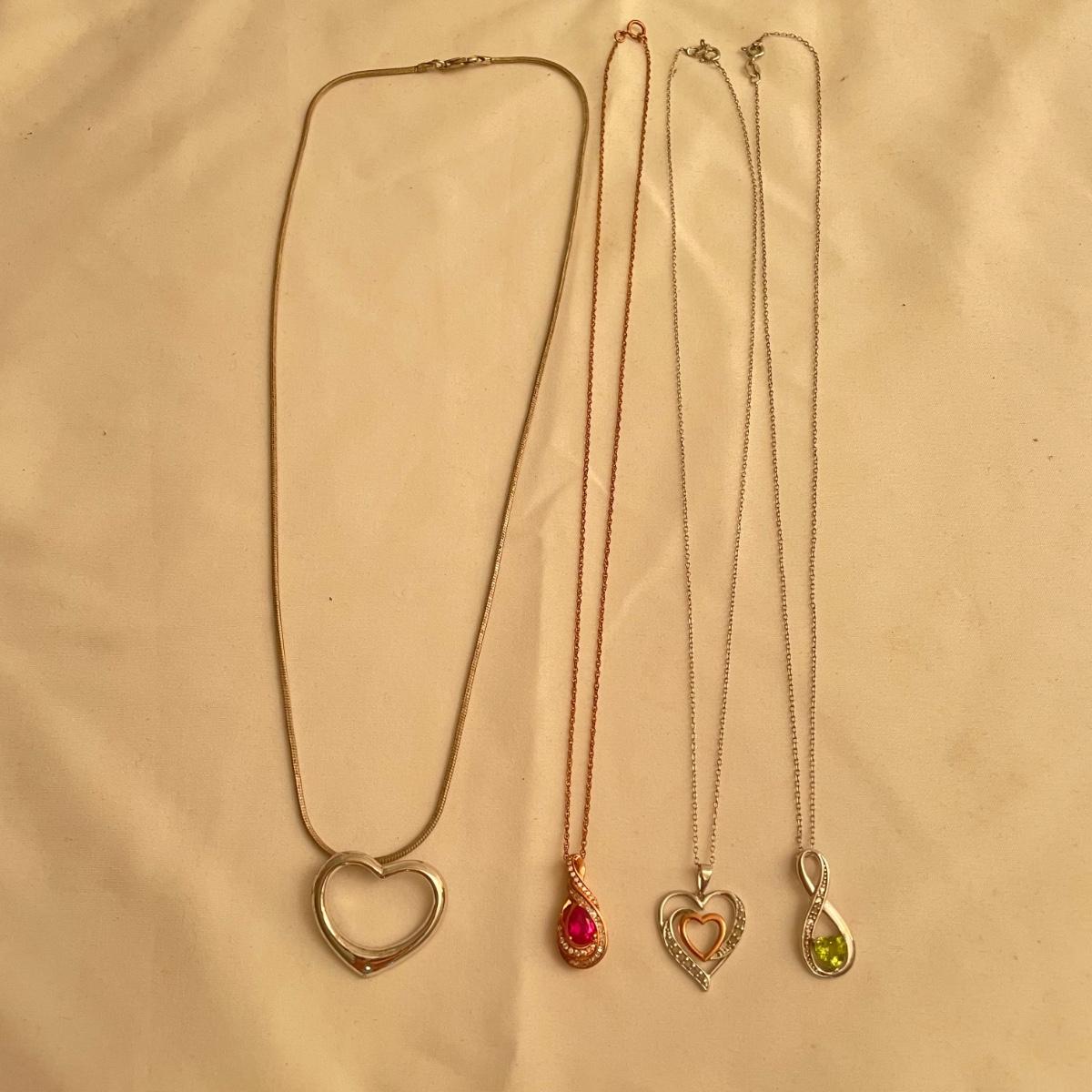 All 4 necklaces are marked 925, see images. No stones can be verified but the green stone does have a box that’s tag says genuine Peridot. The only pendant not marked 925 is the larger heart one.