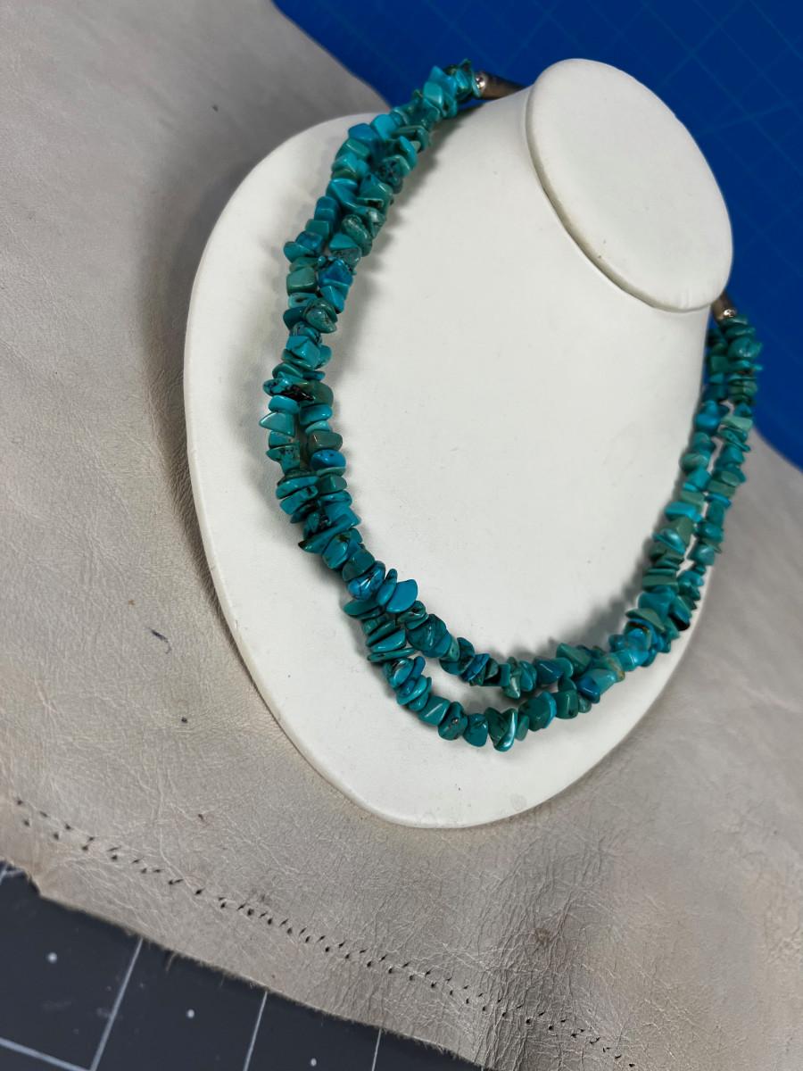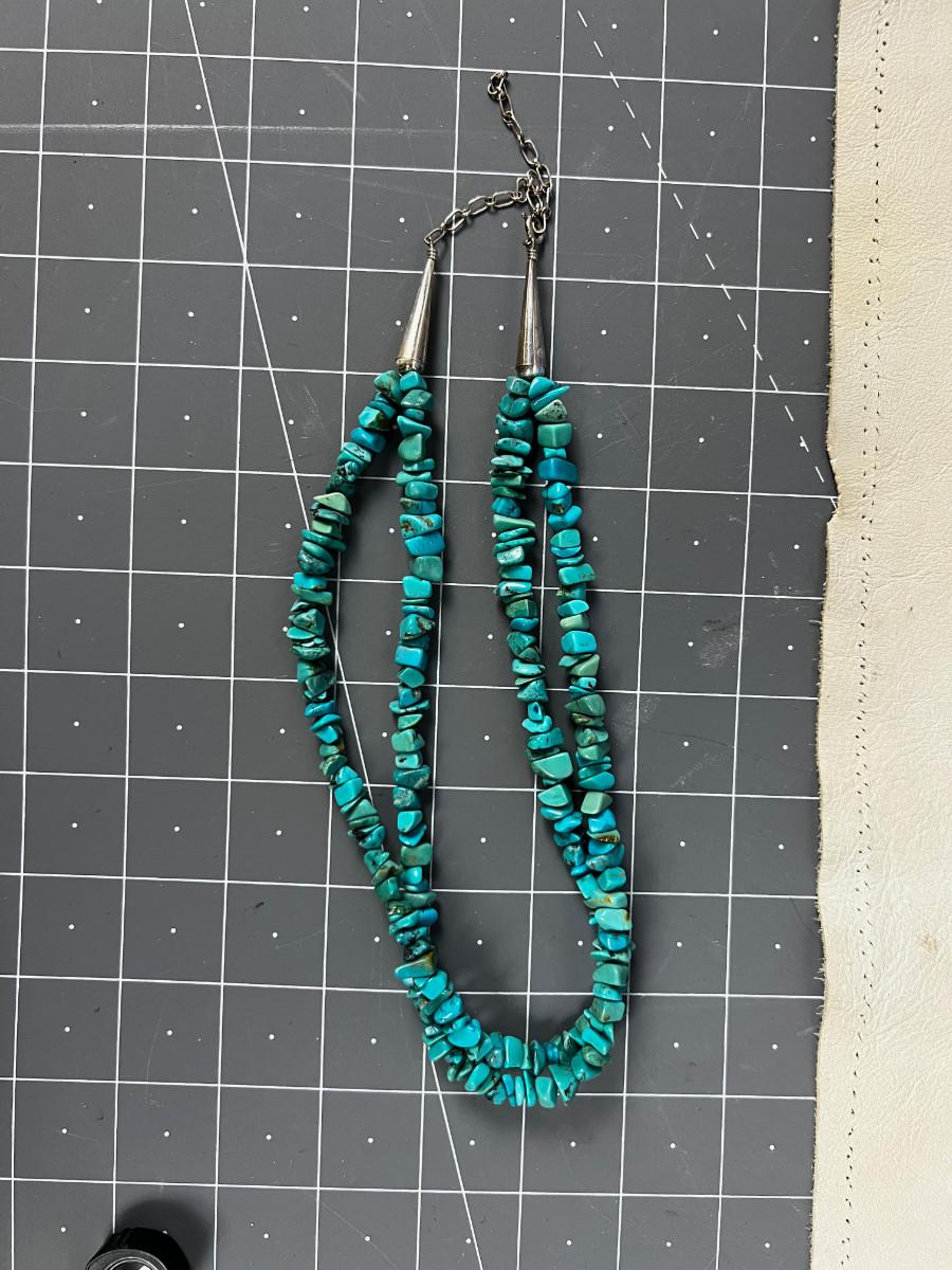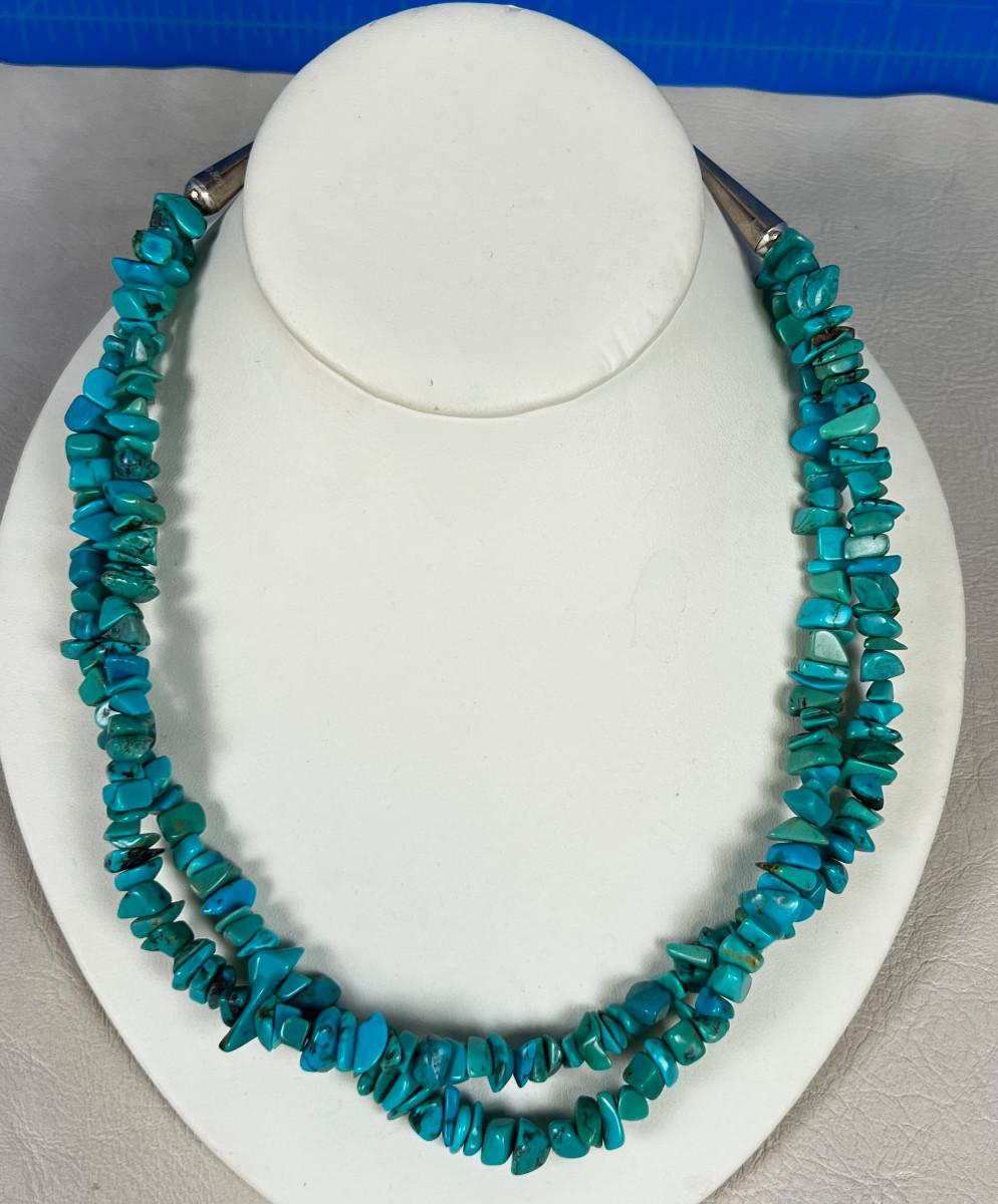 .925 Nugget Turquoise 2 Strand Necklace Marked CR