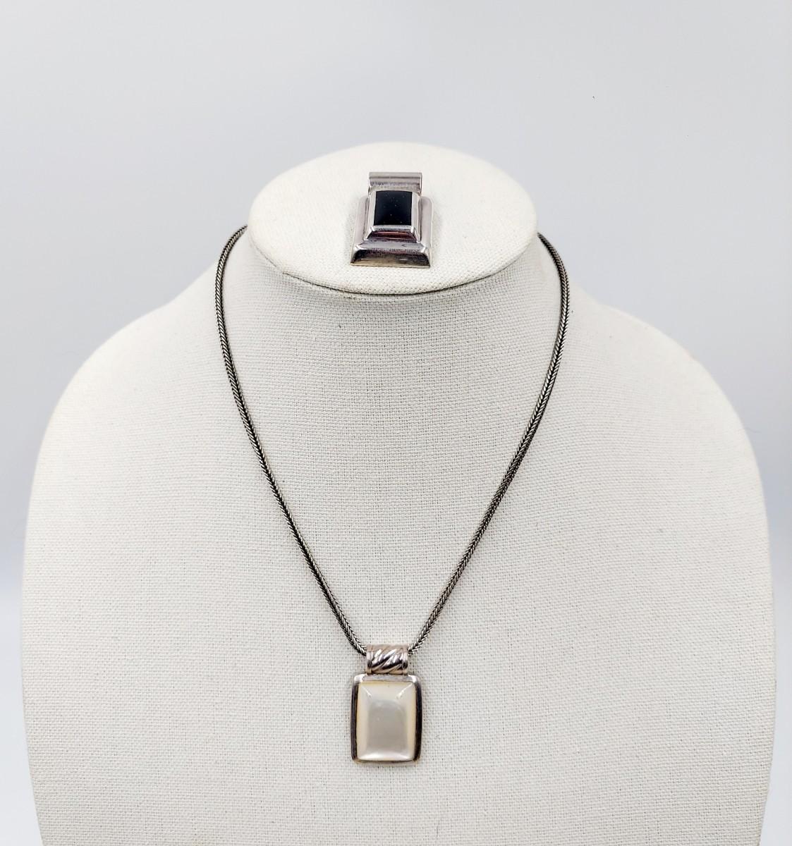 All 3 pieces in good condition - I couldn't find a marking on the white pendant so not 100% sure of material