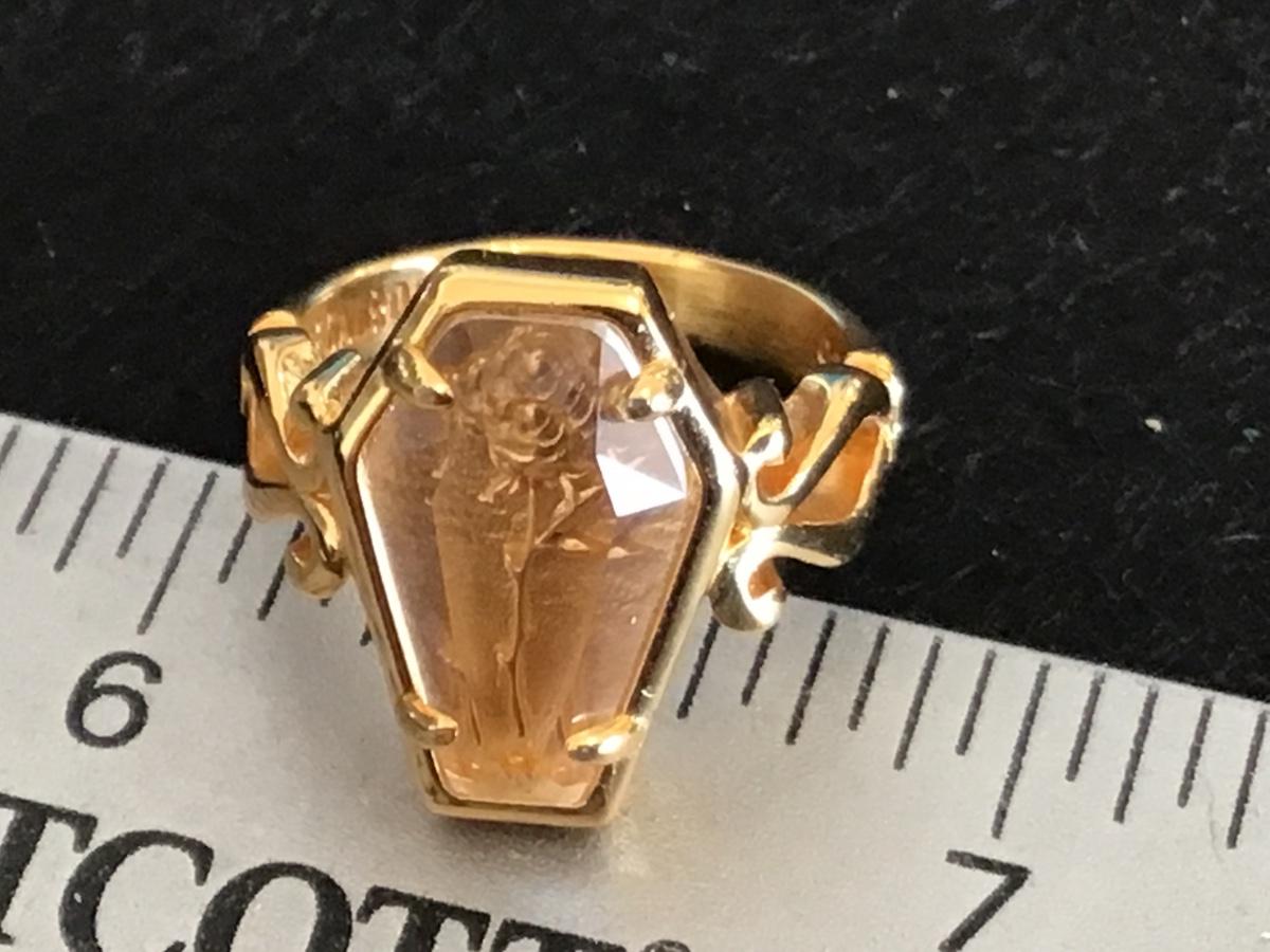 925. Rose UnderGlass Regal Coffin Ring. Size 5