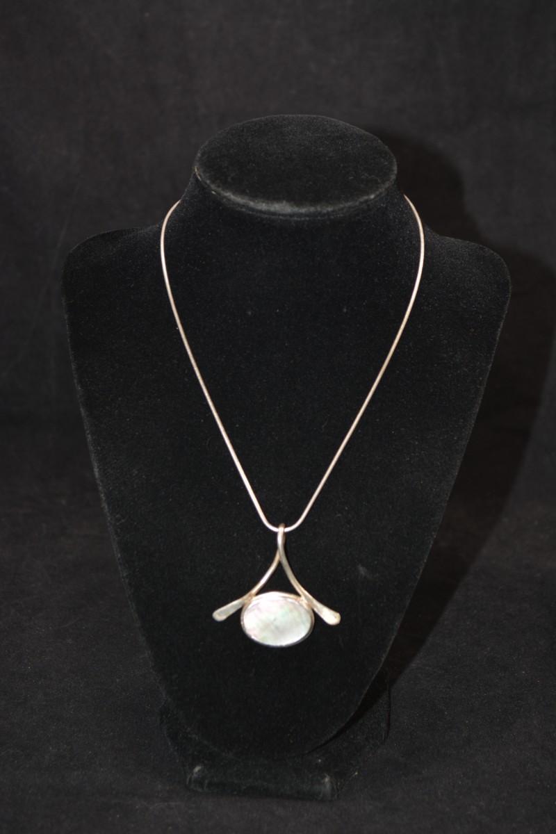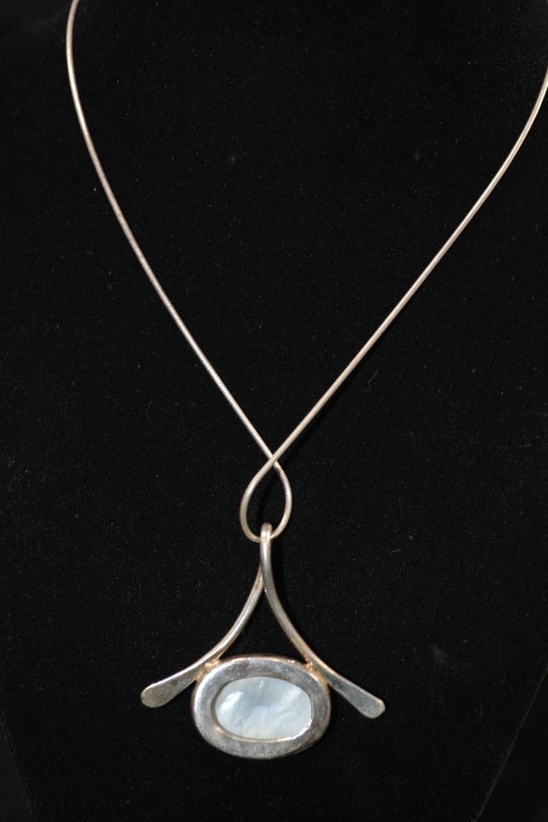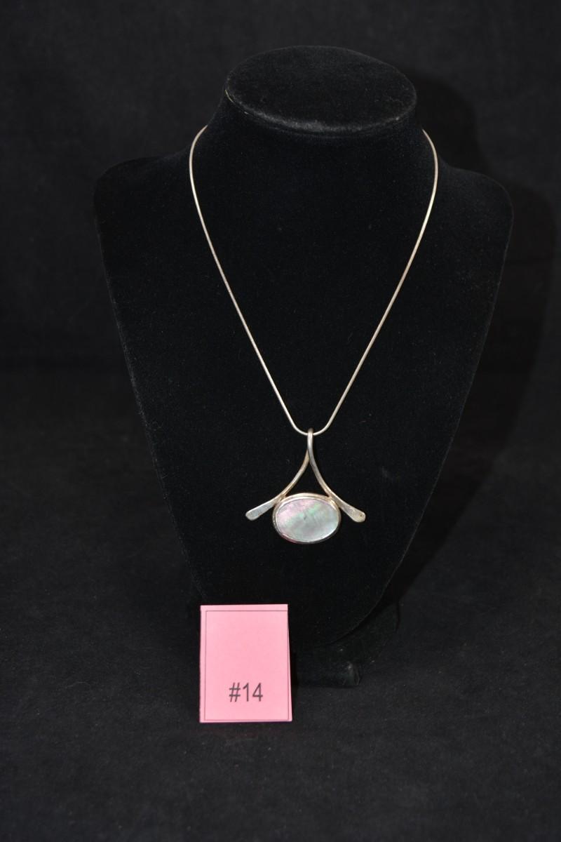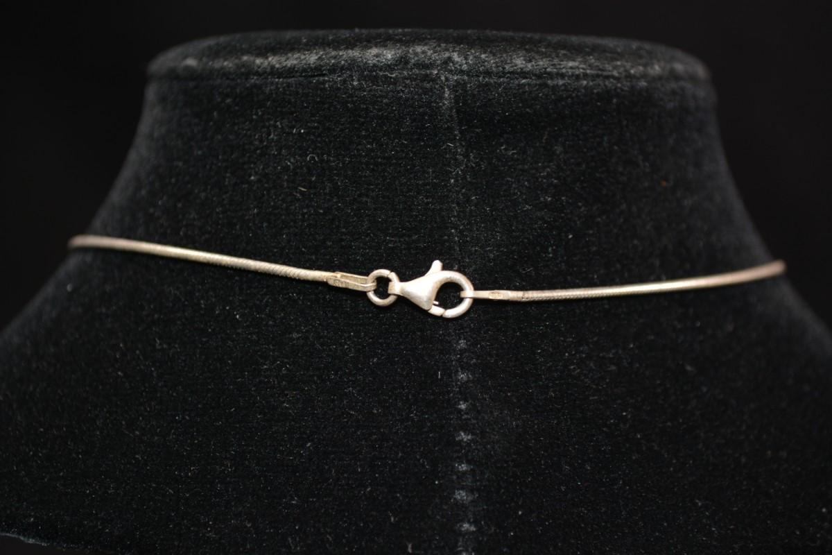 In good condition, no flaws to note. The chain is stamped 925, and the pendant has no hallmark. all jewelry is tested prior to the auction.