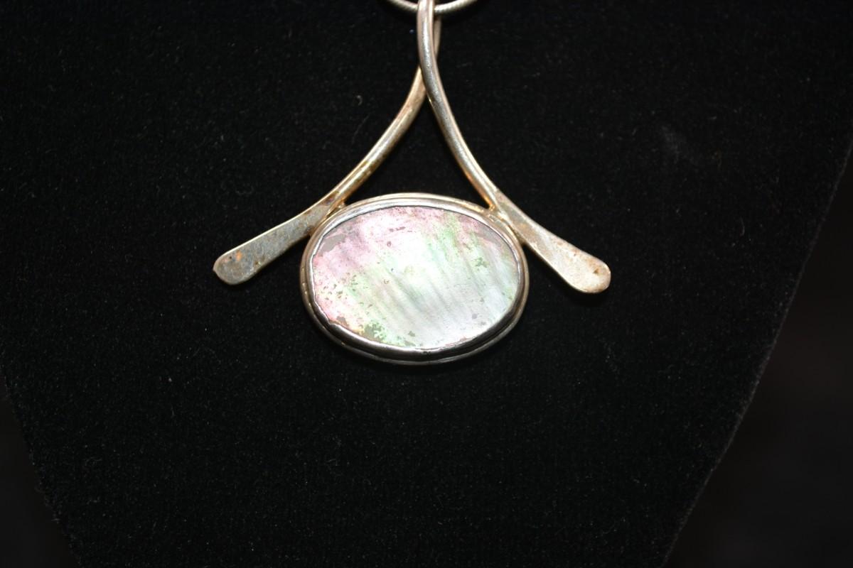 925 Serpentine Chain w/ Sterling Roman Glass Pendant 16”, 12.3g