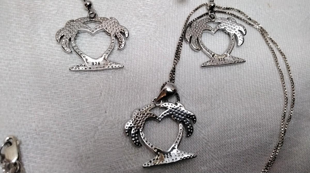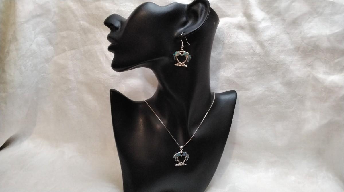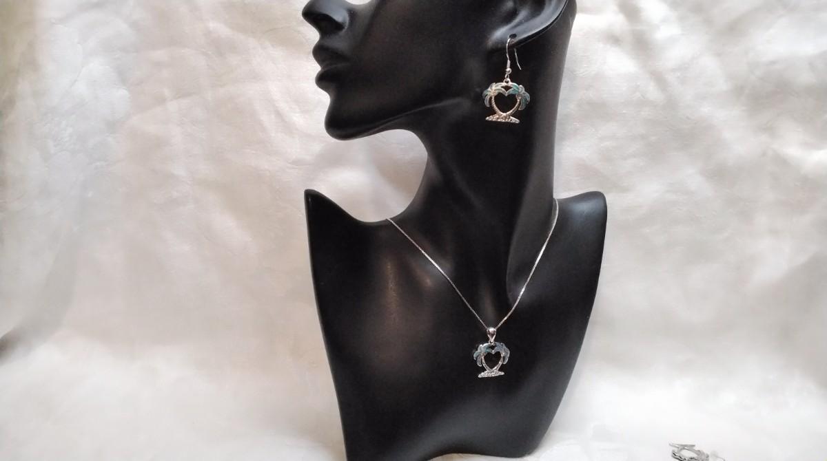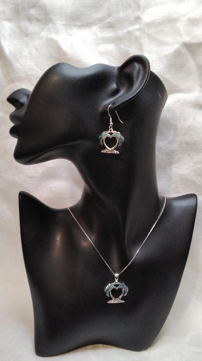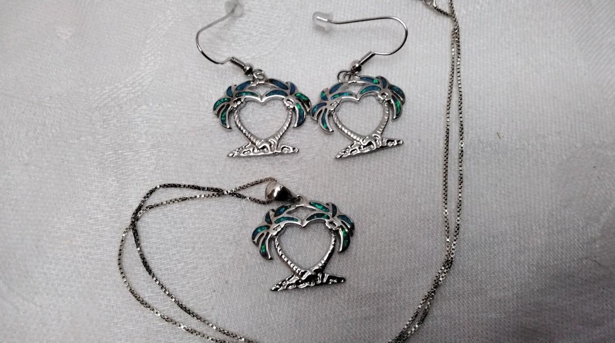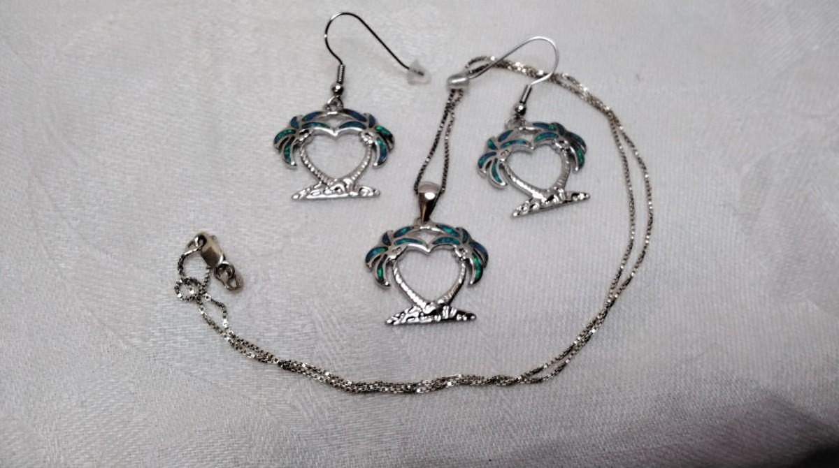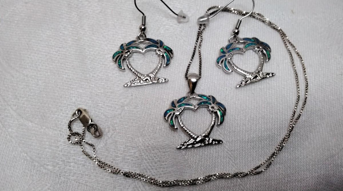 Blue Fire Opal Palm Trees 925 Jewelry Set (18" Necklace")