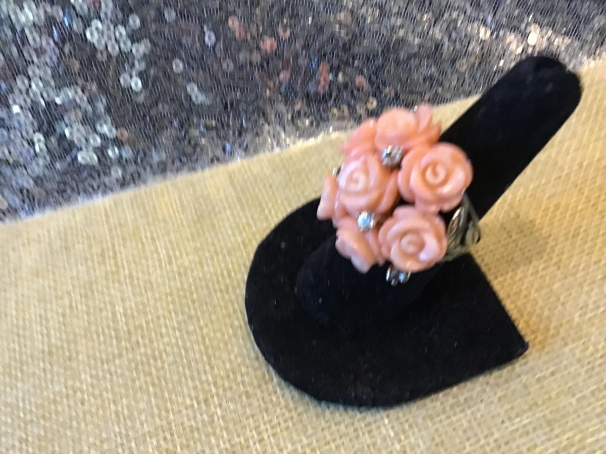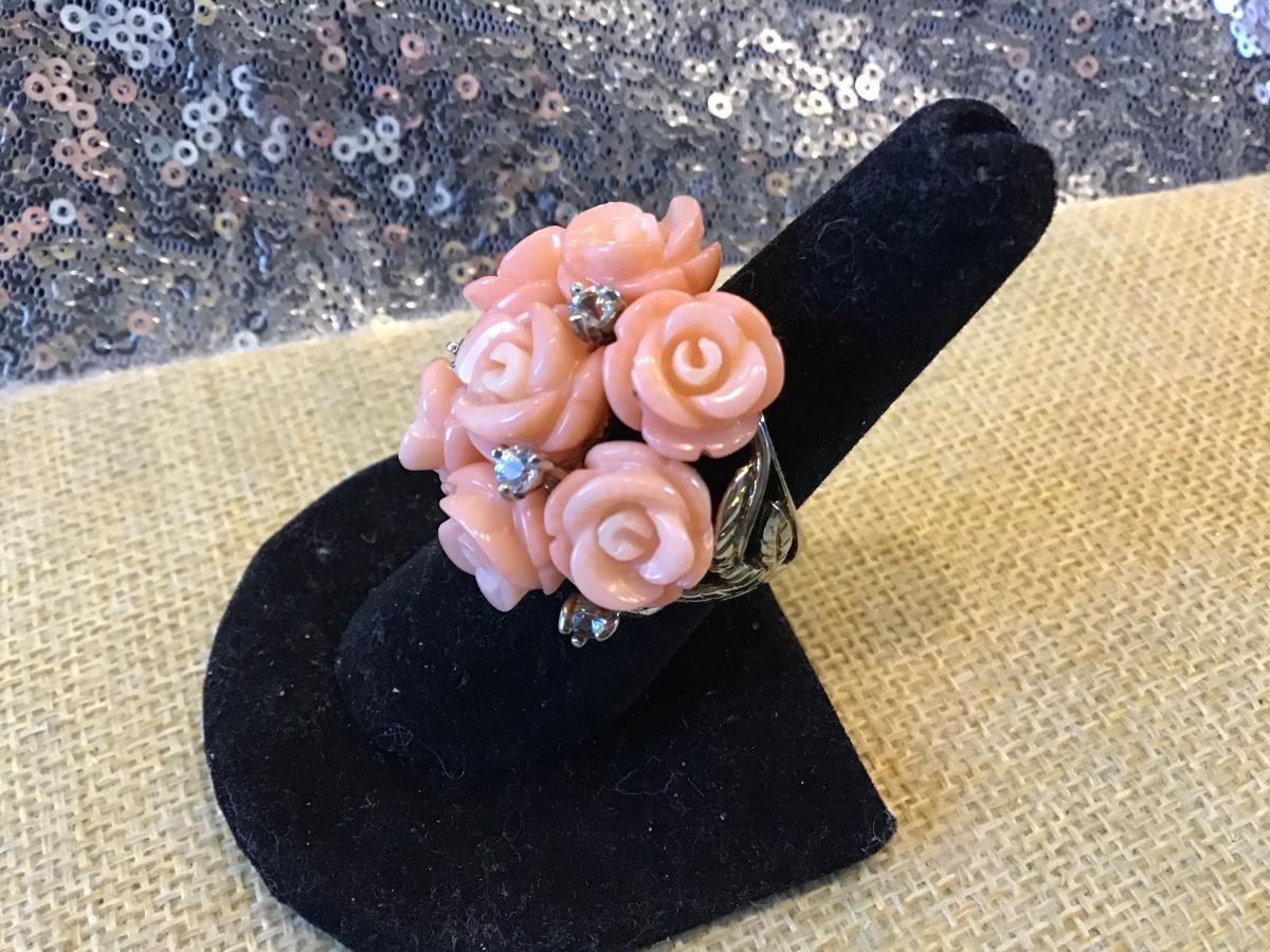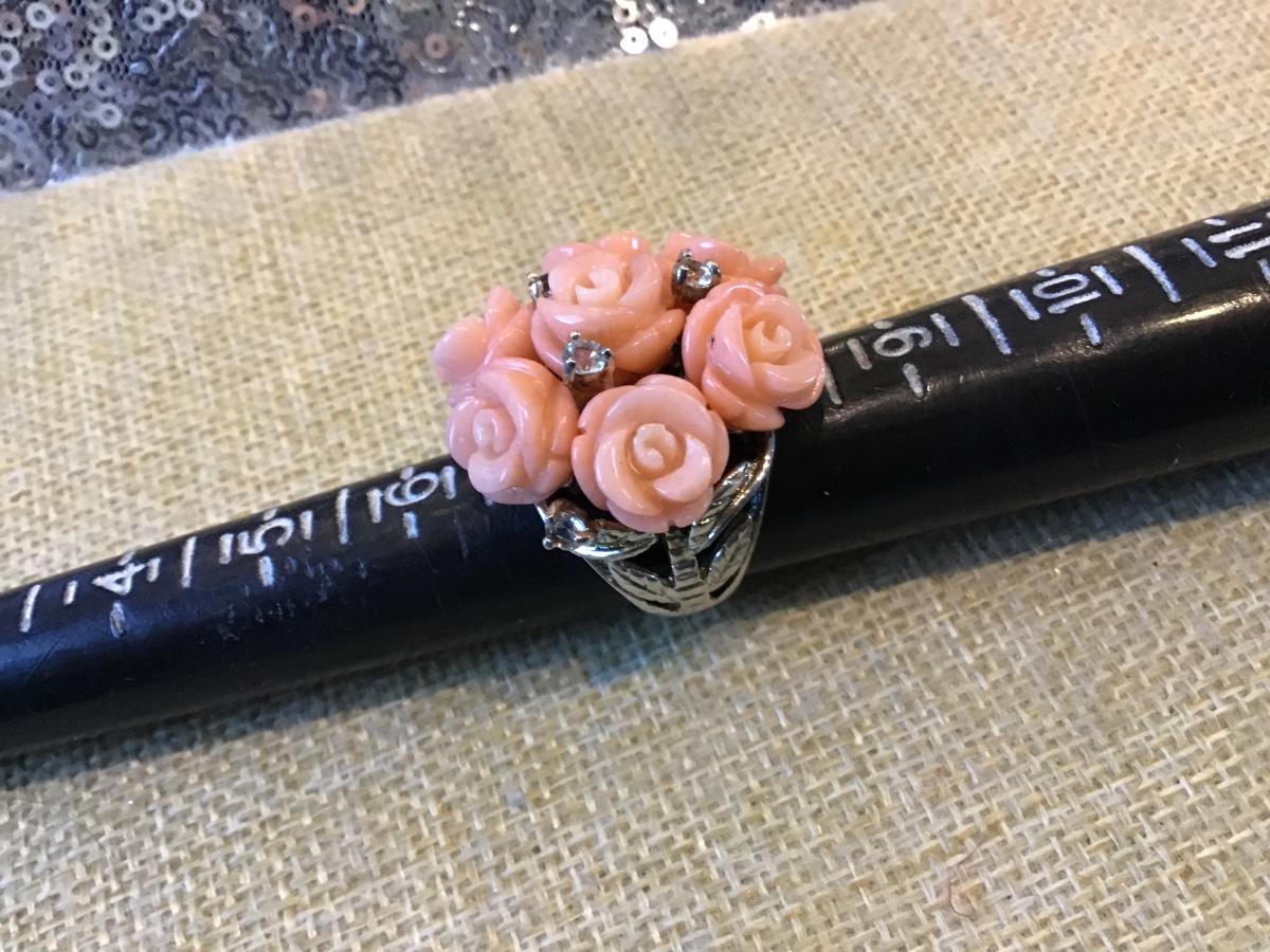 925 Silver Coral Ring Roses