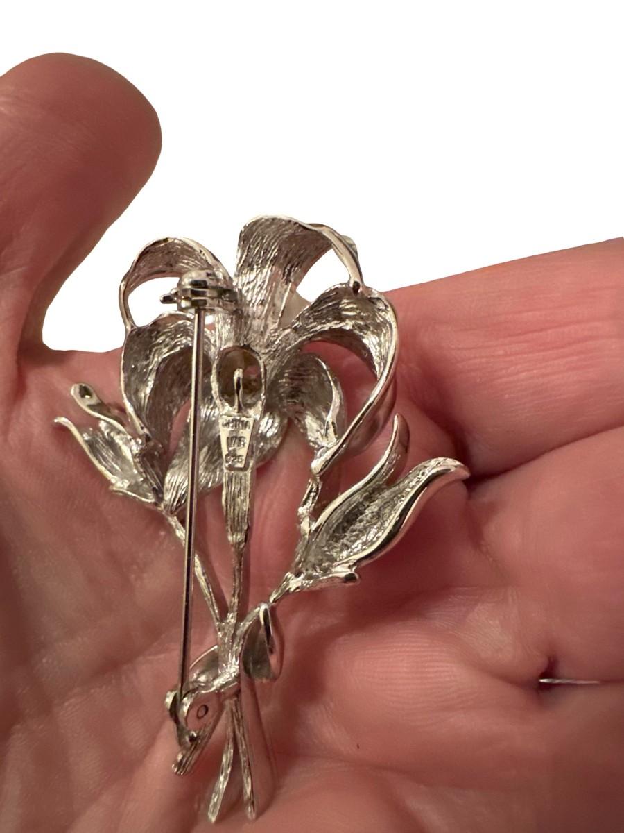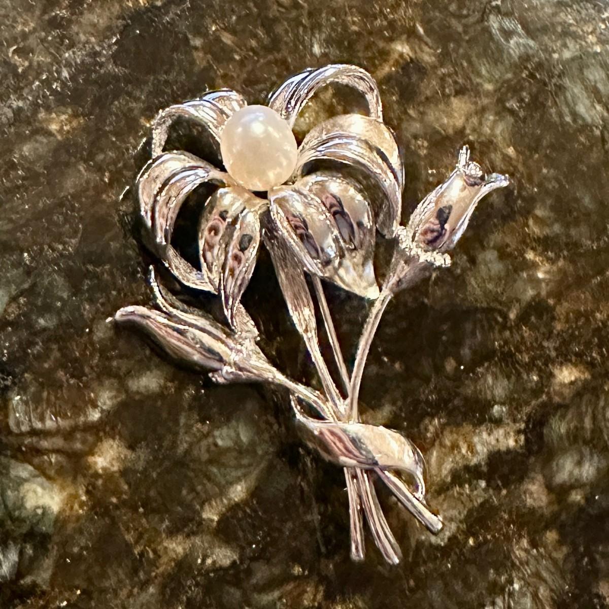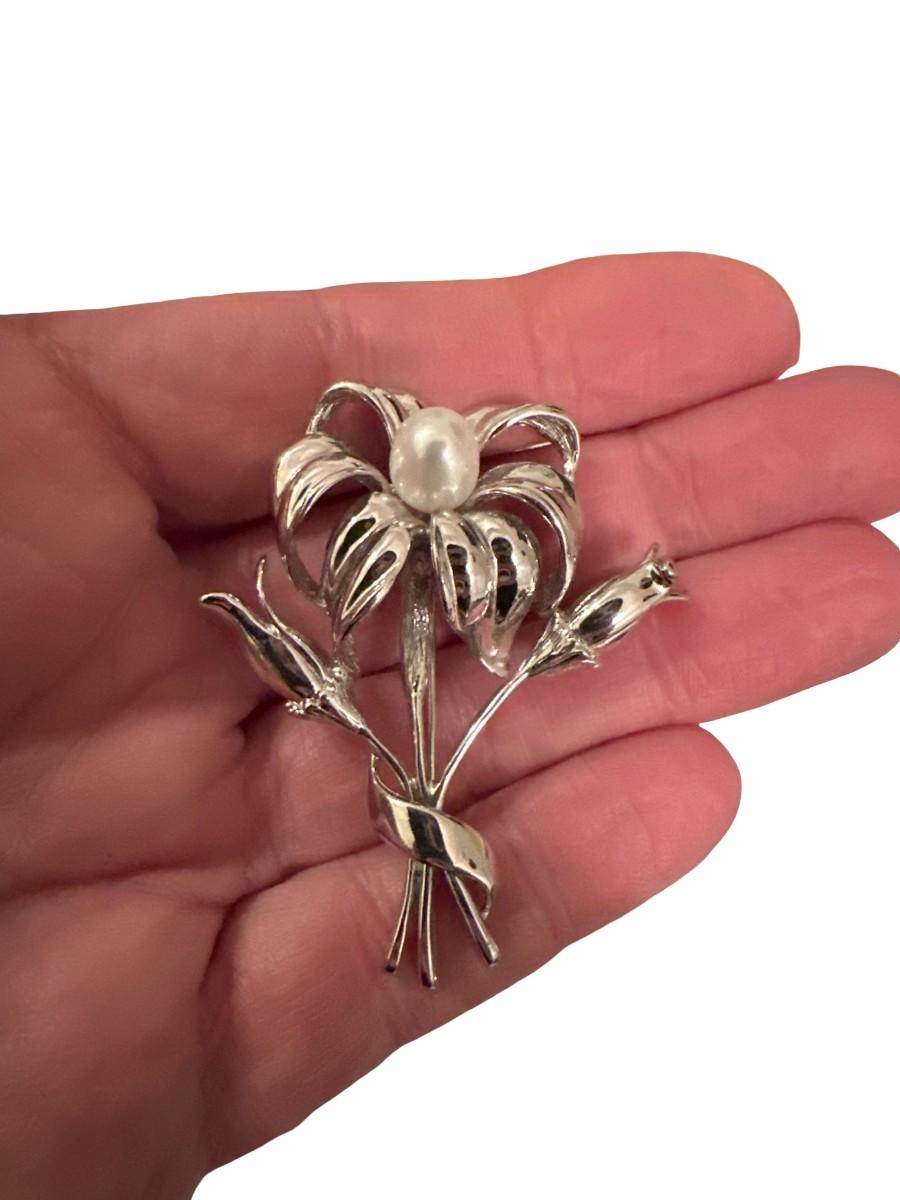925 Silver Floral Pin/Brooch with Pearl