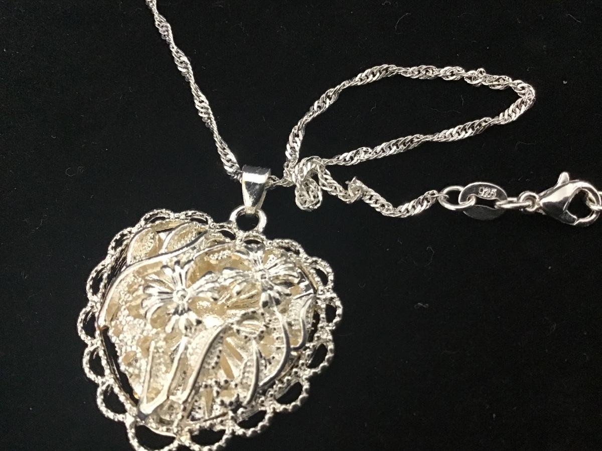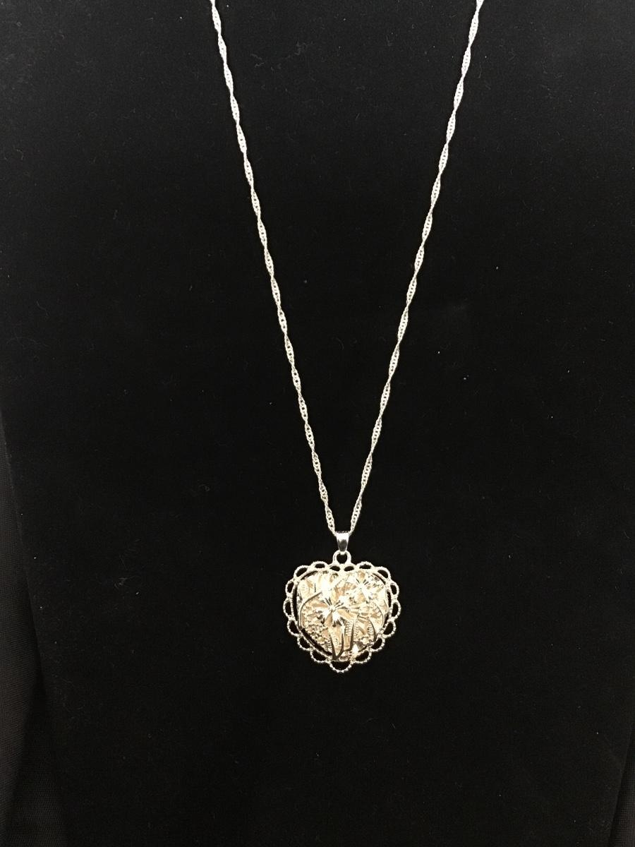 925 Silver Heart Filagree Pendant with Chain