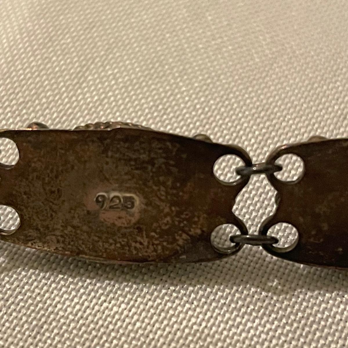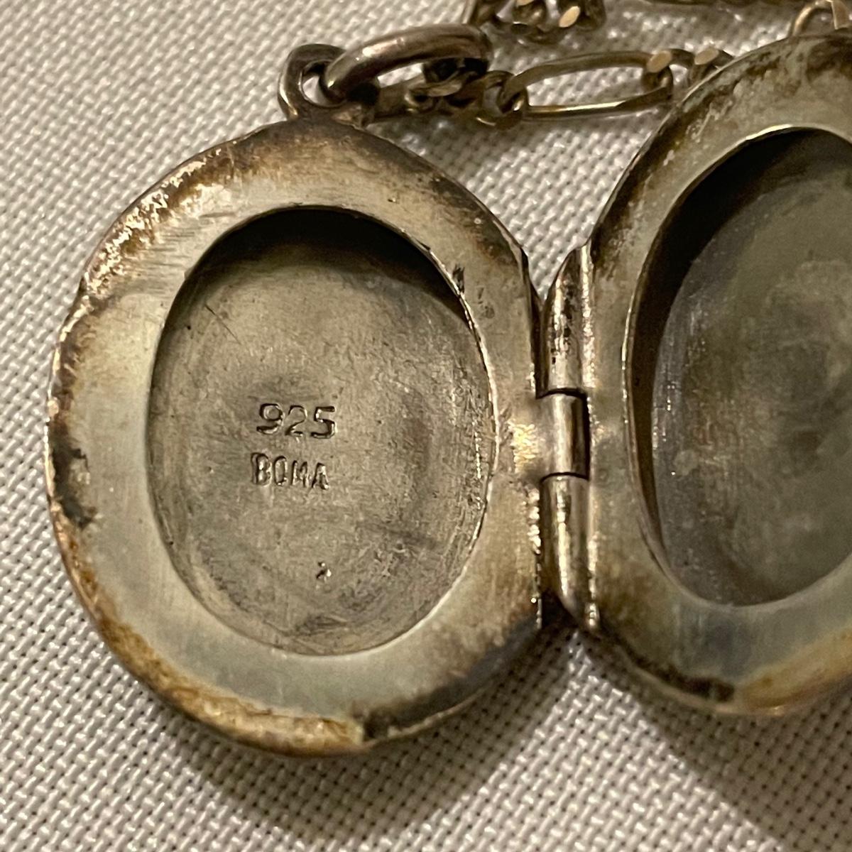 The locket and the other necklace are both marked 925 as is one ring, the brooch and the bracelet with amber colored stones leaving just the two rings without marks.