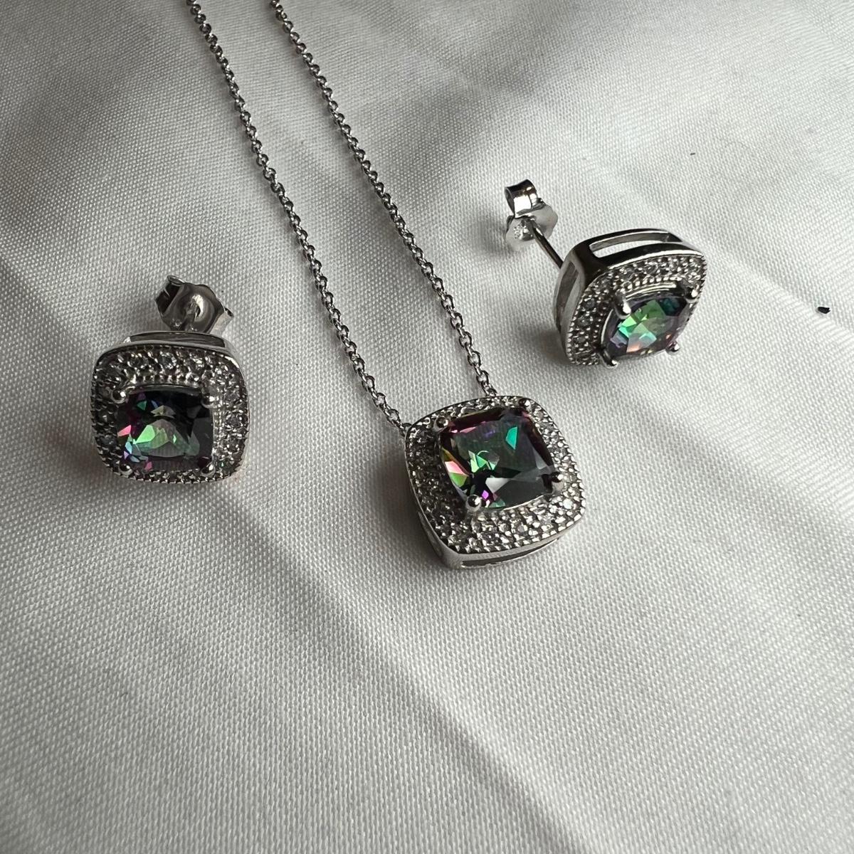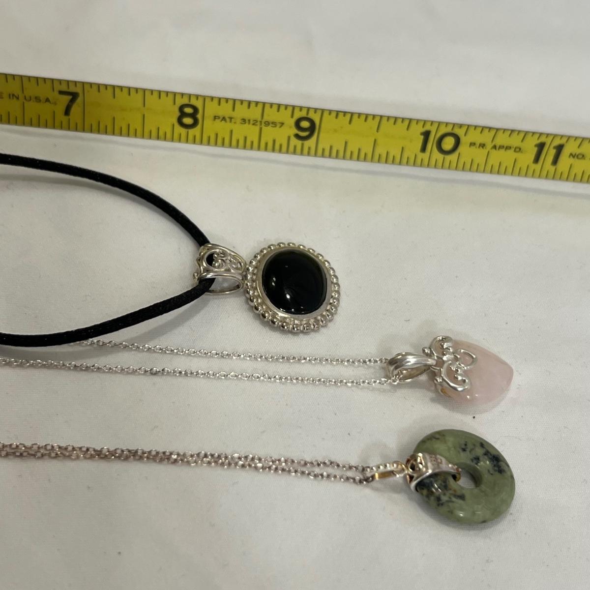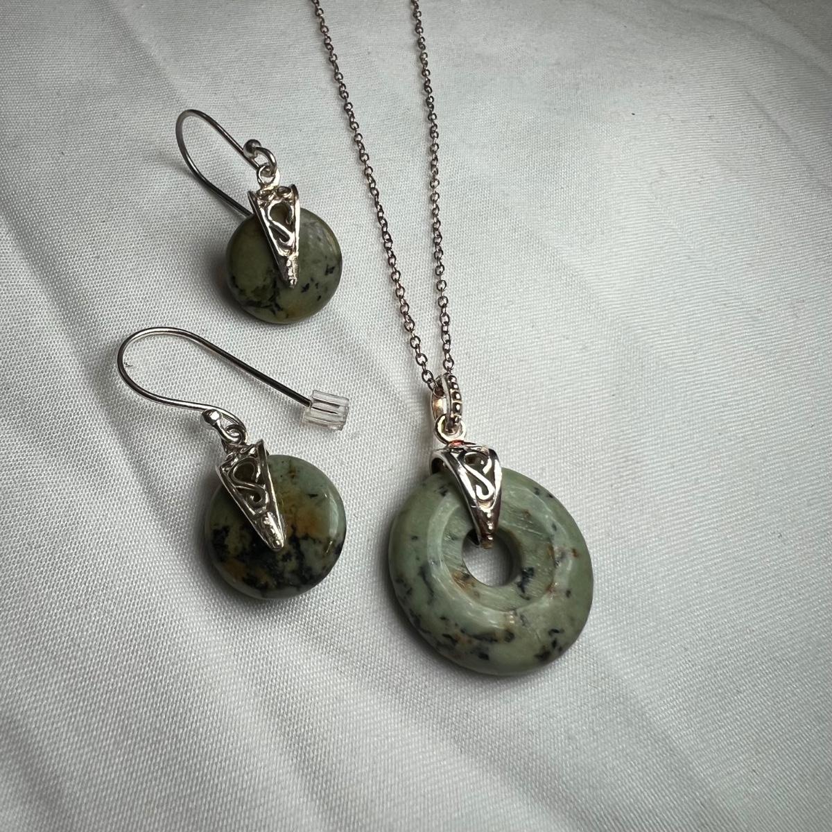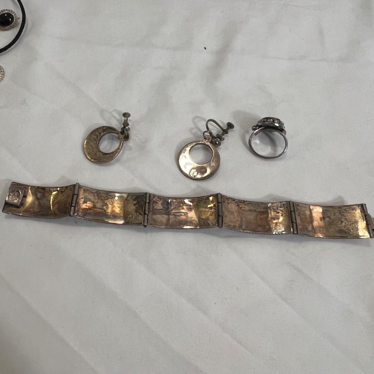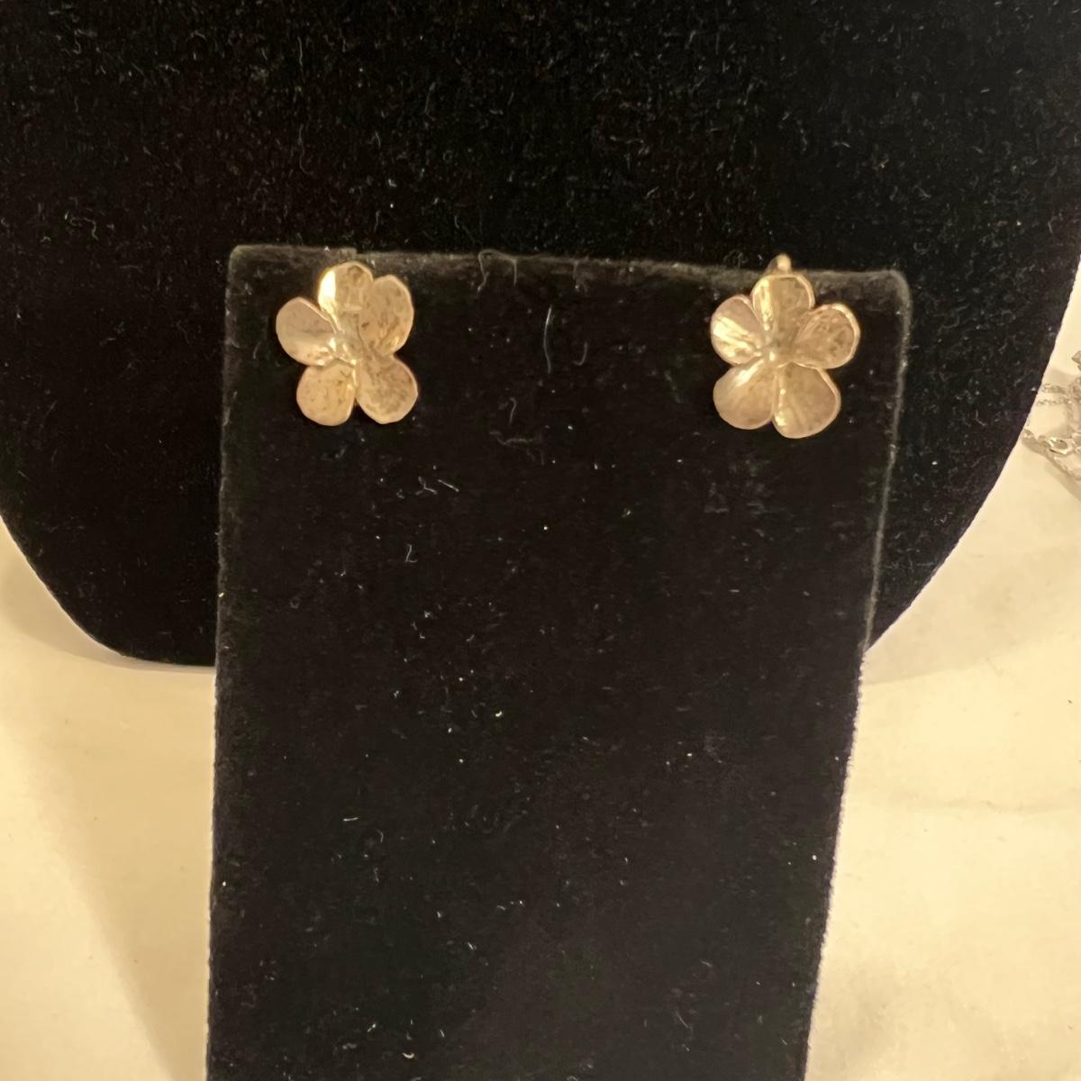 Four sets of necklaces with matching post earrings, plus an abalone bracelet with matching earrings (note that the ring is not an exact match but close). The abalone ring is the only item in this entire lot that is not stamped 925/sterling. Three extra pairs of earrings are also included. Of the nine pairs of earrings, all but the flower shaped earrings are for pierced ears. See images for marks and sizes.
