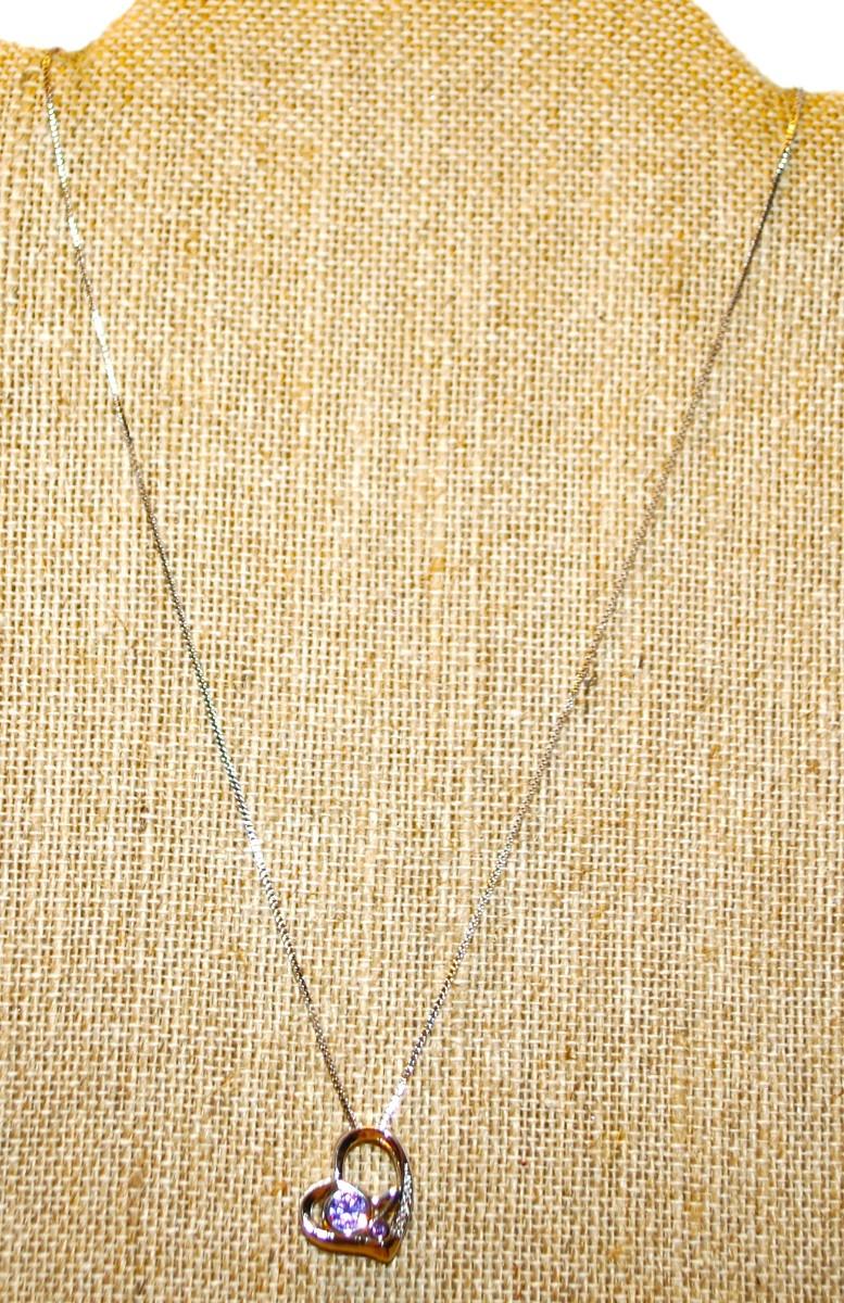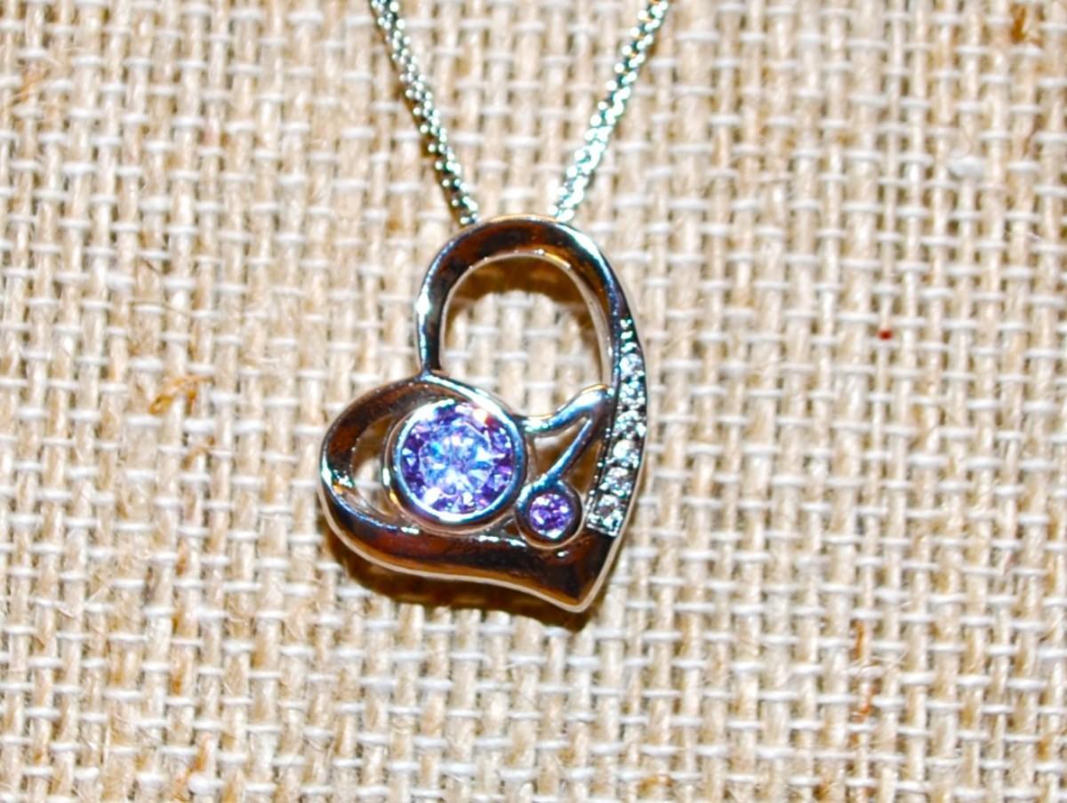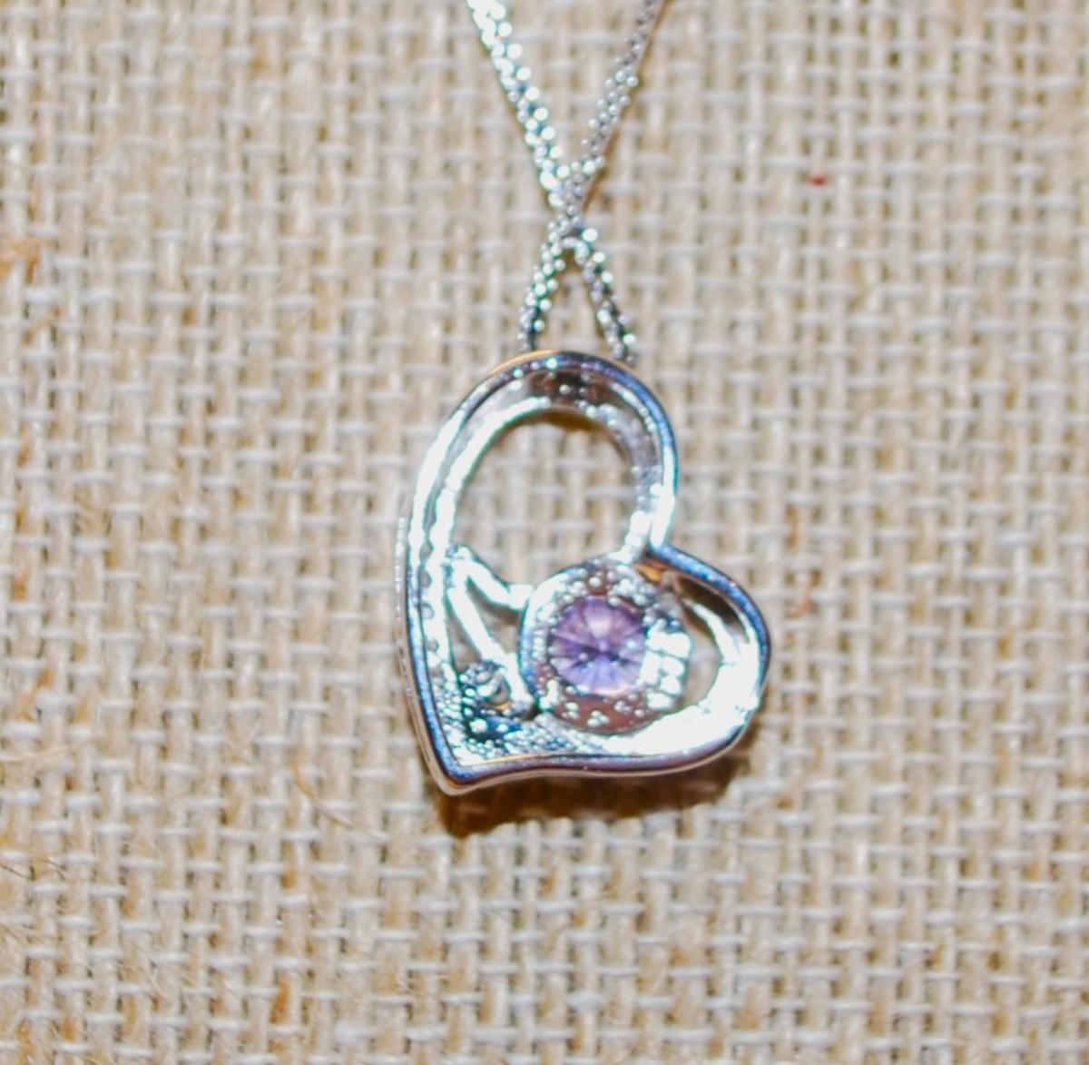 .925 Silver Purple Stones Heart Pendant (½" x ½") Necklace 18" L