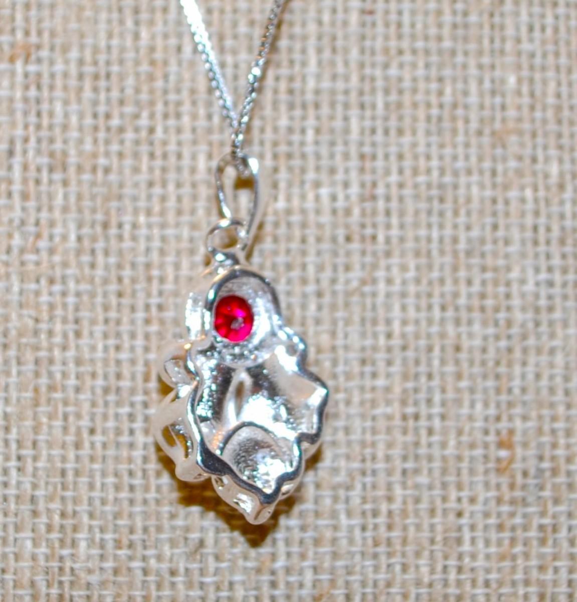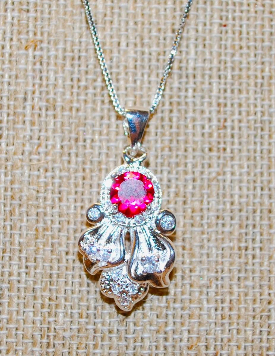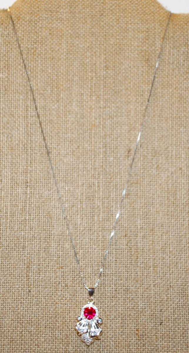 .925 Silver Round Ruby Red Stone PENDANT (1¼" x ¾") Necklace 18" L