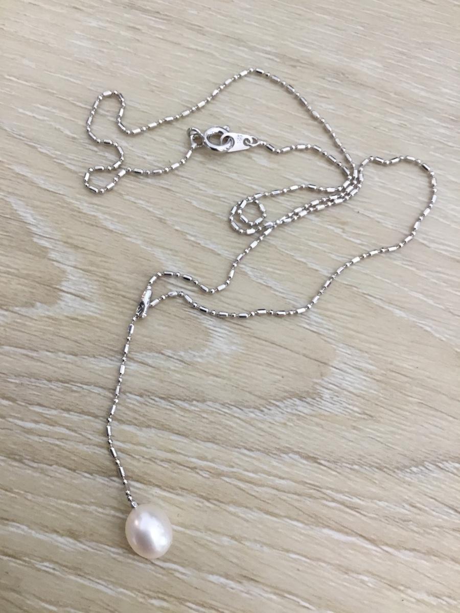 925 silver V necklace with real pearl pendant