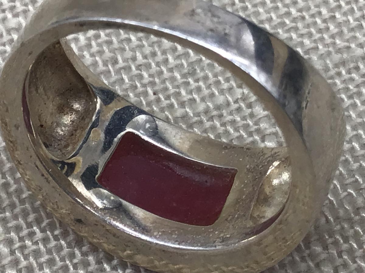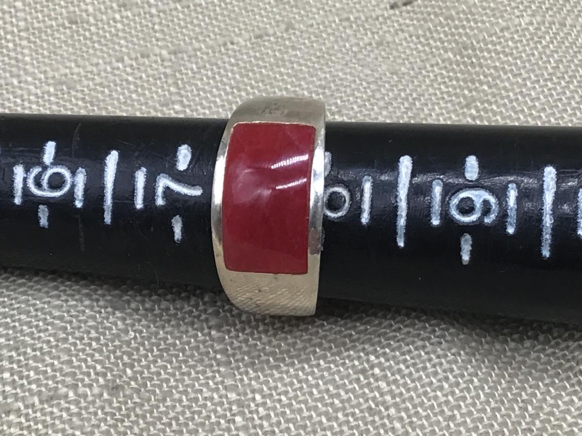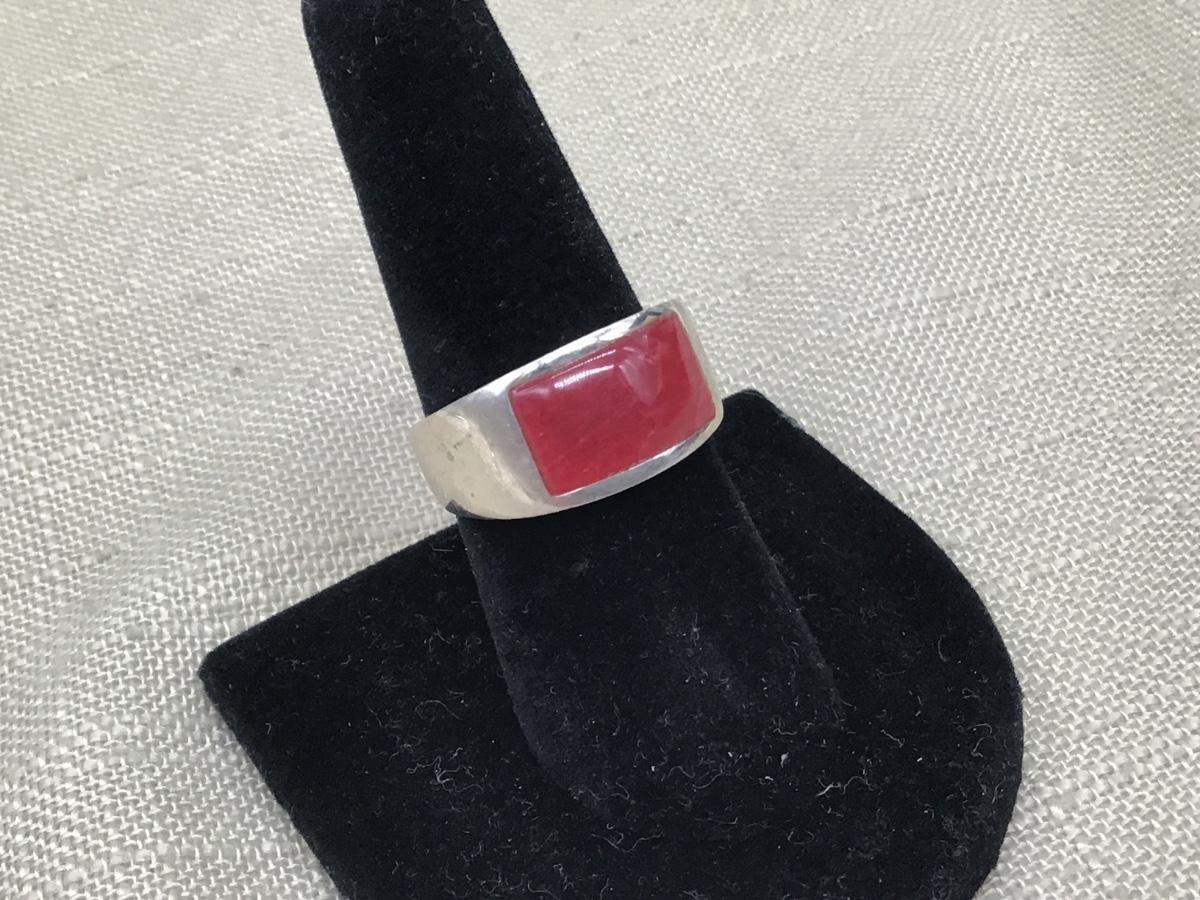 925 Silver with Red Oblong Center Stone