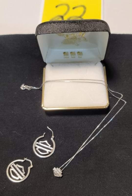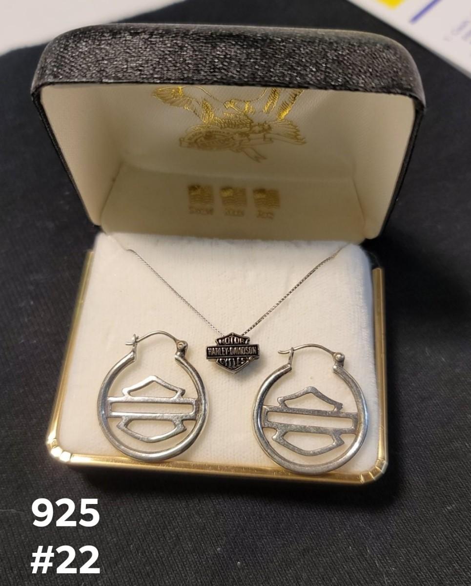 Sterling Silver Necklace with a pair of HD emblem earrings chain about 18"