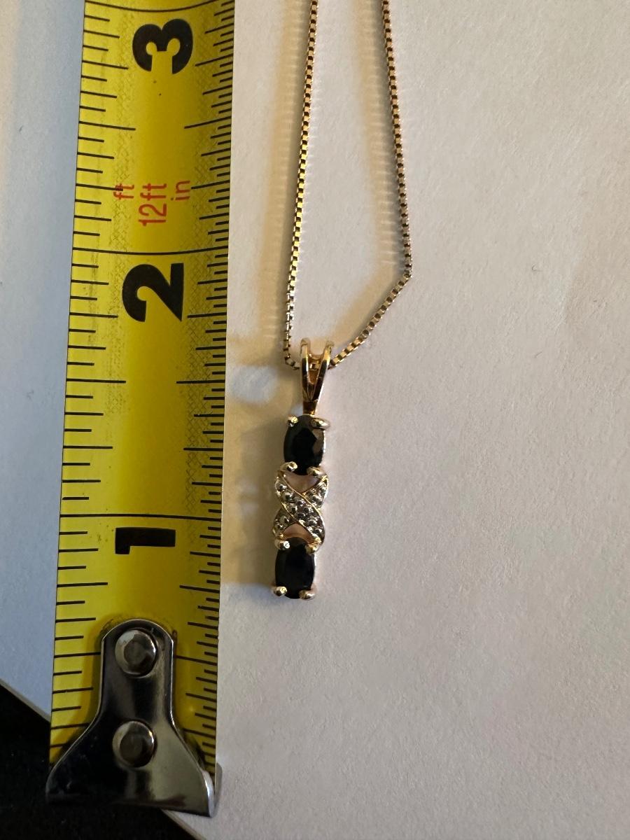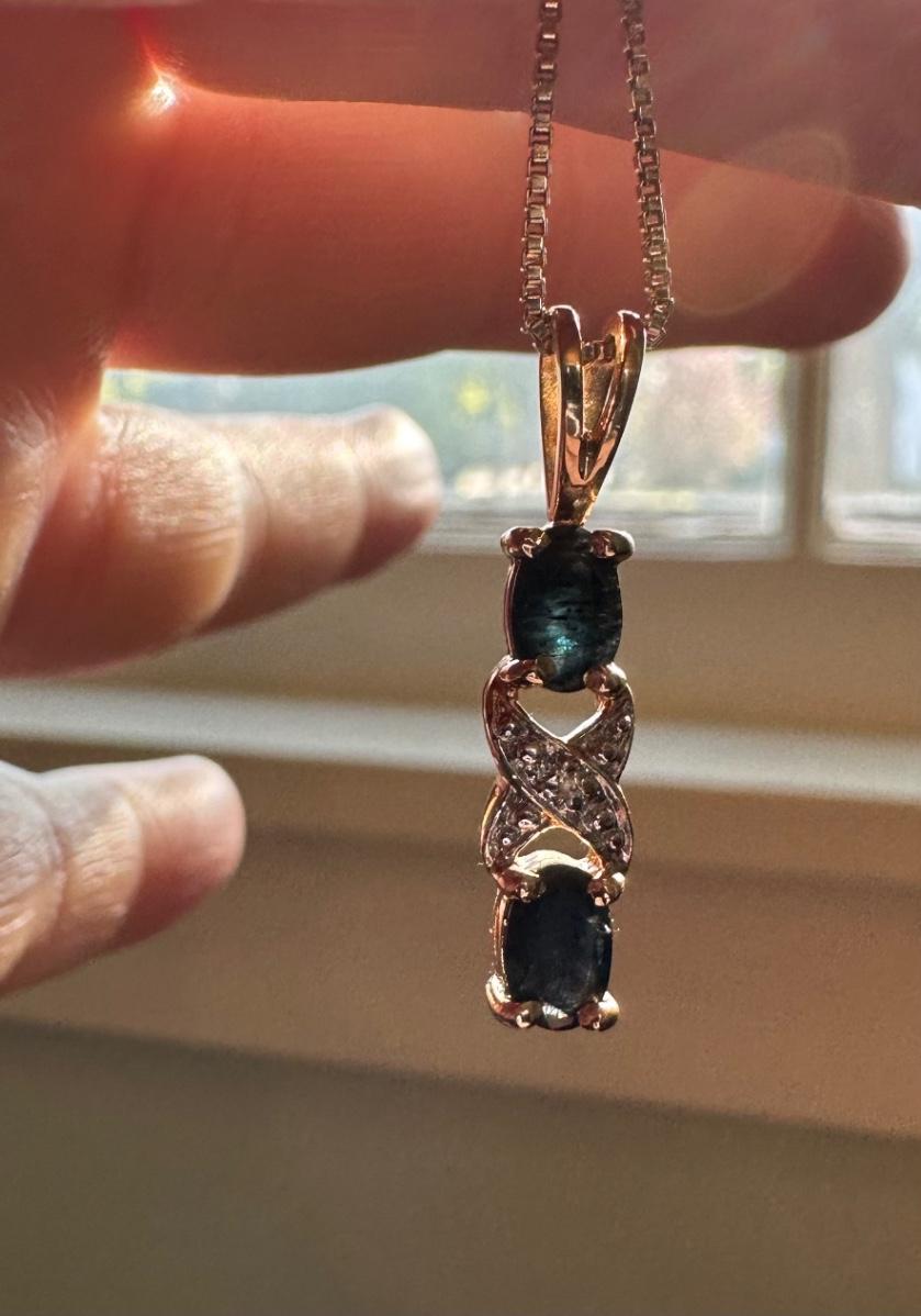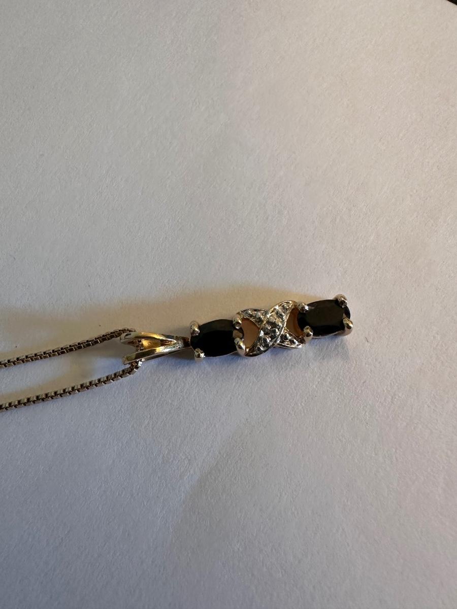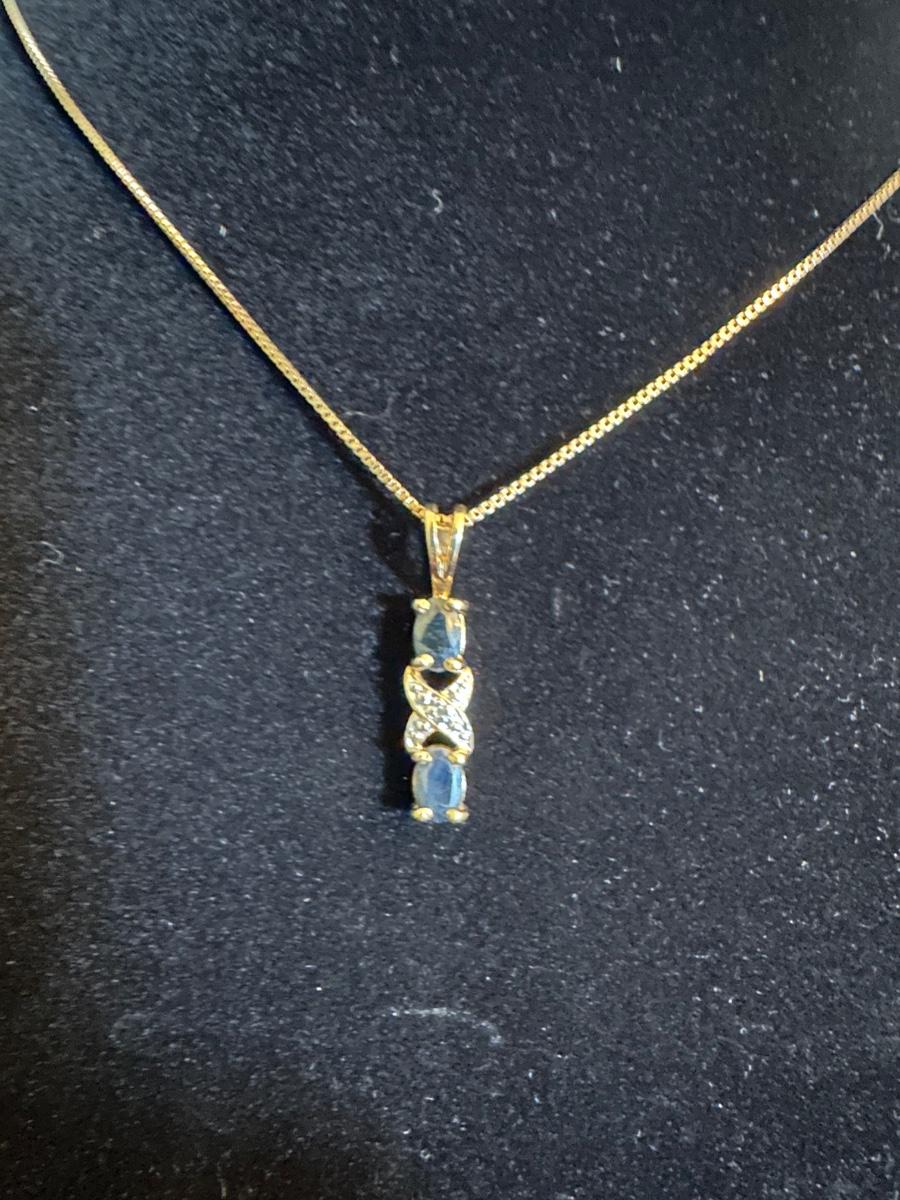 Necklace has Two blue stones and crisscross of clear stones