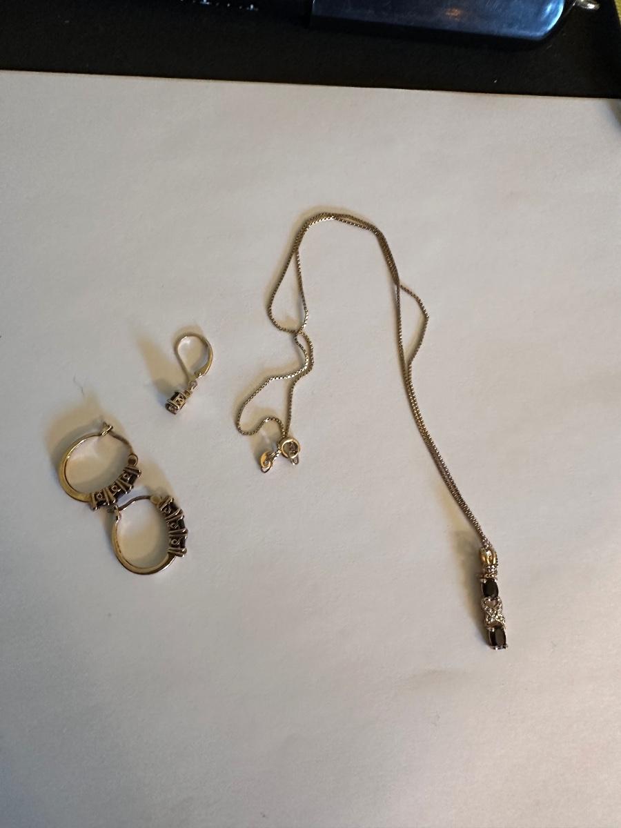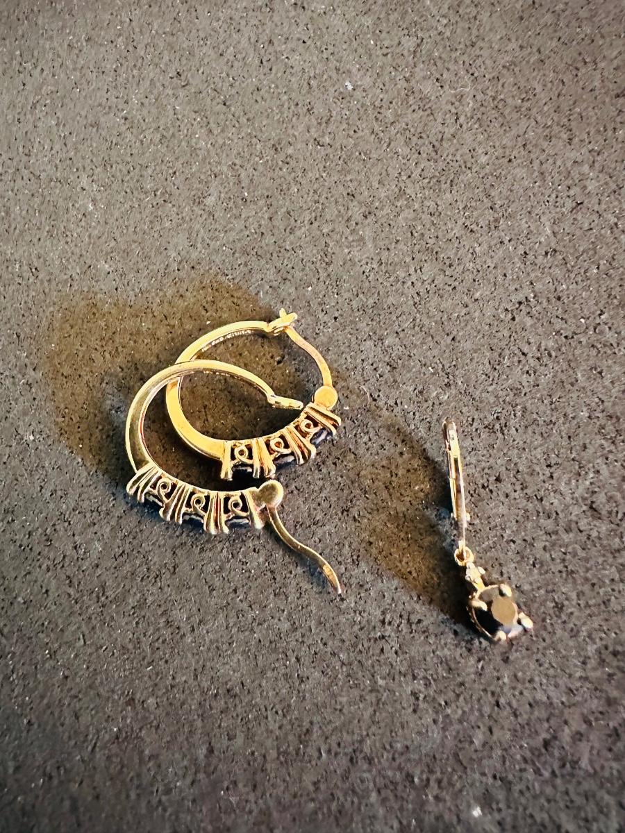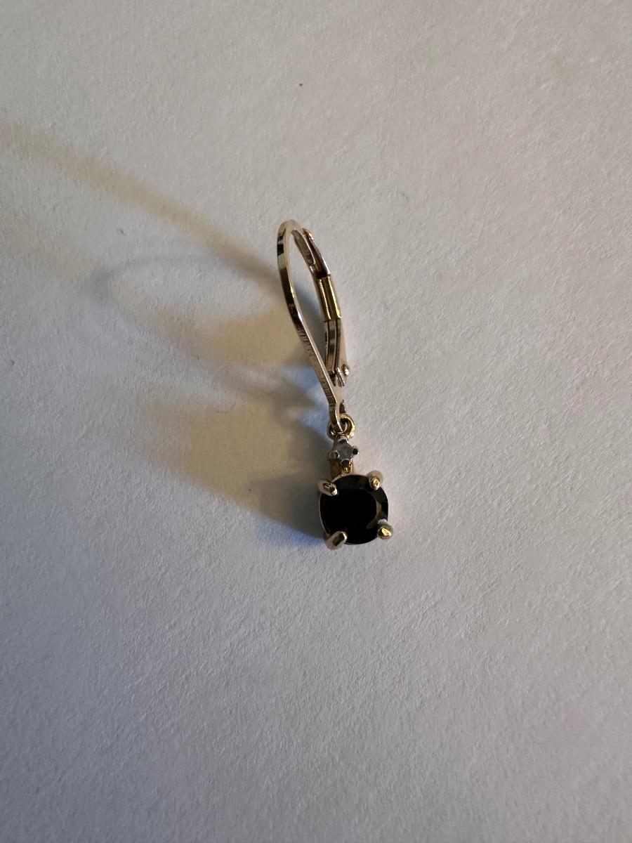 One earring with one stone and one clear stone (Possibly a diamond) other earring is missing, unfortunately