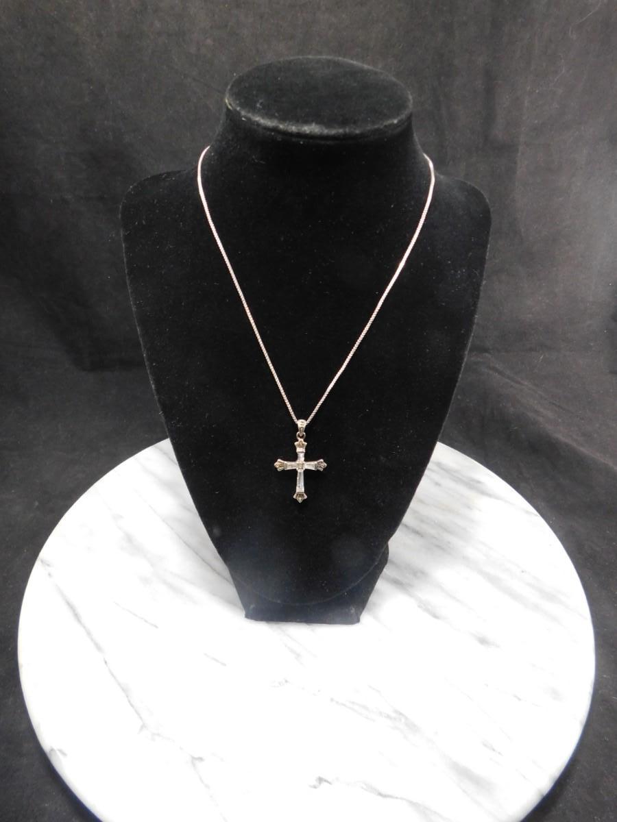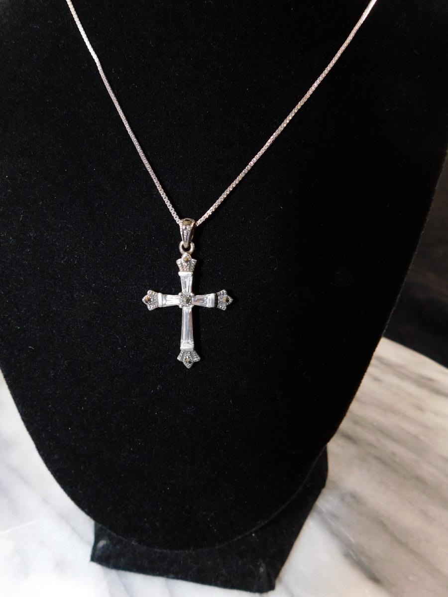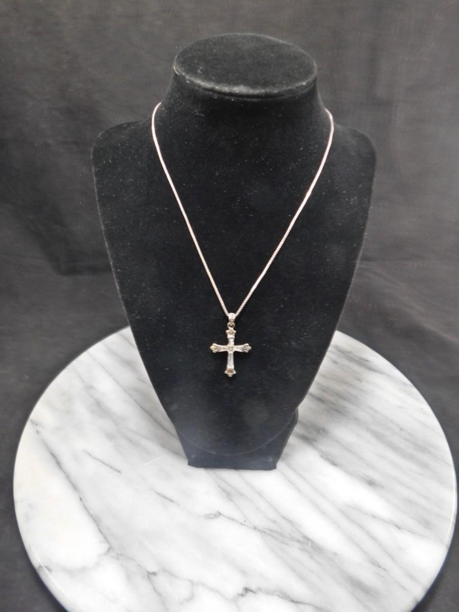 925 Sterling & Quartz Cross w/ Marcasite, 925 Chain 16” 2.6g