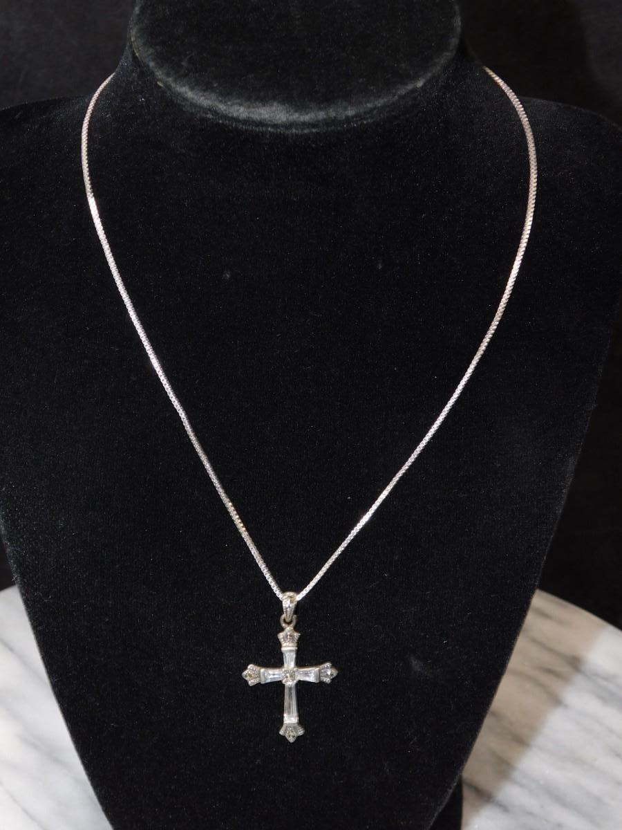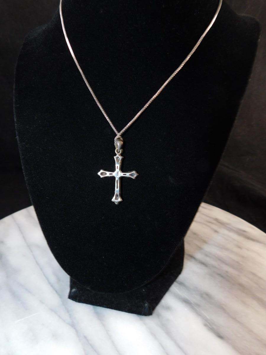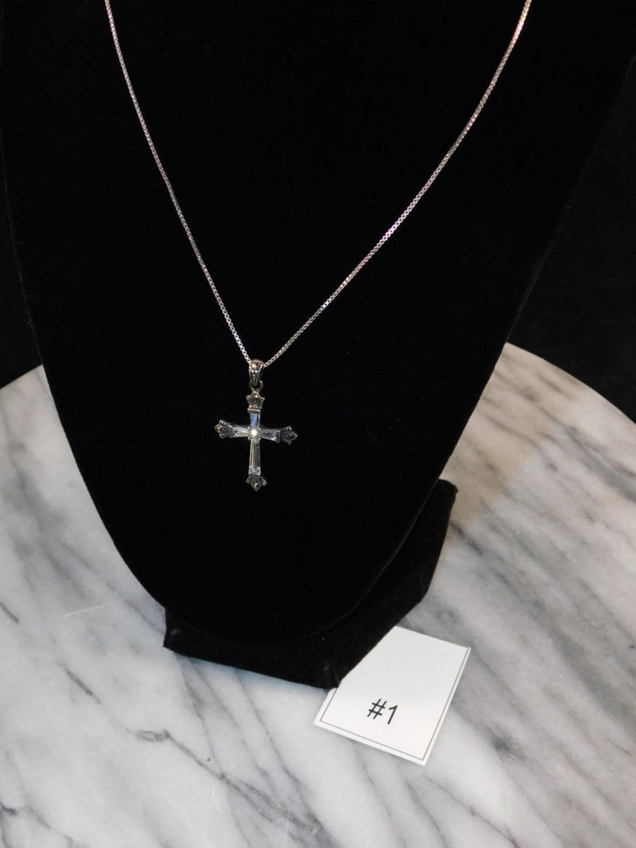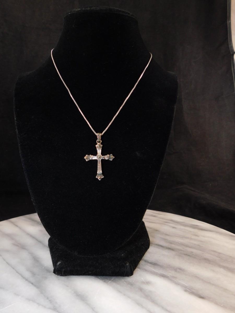 925 Sterling & Quartz Cross w/ Marcasite, 925 Chain 16” 2.6g