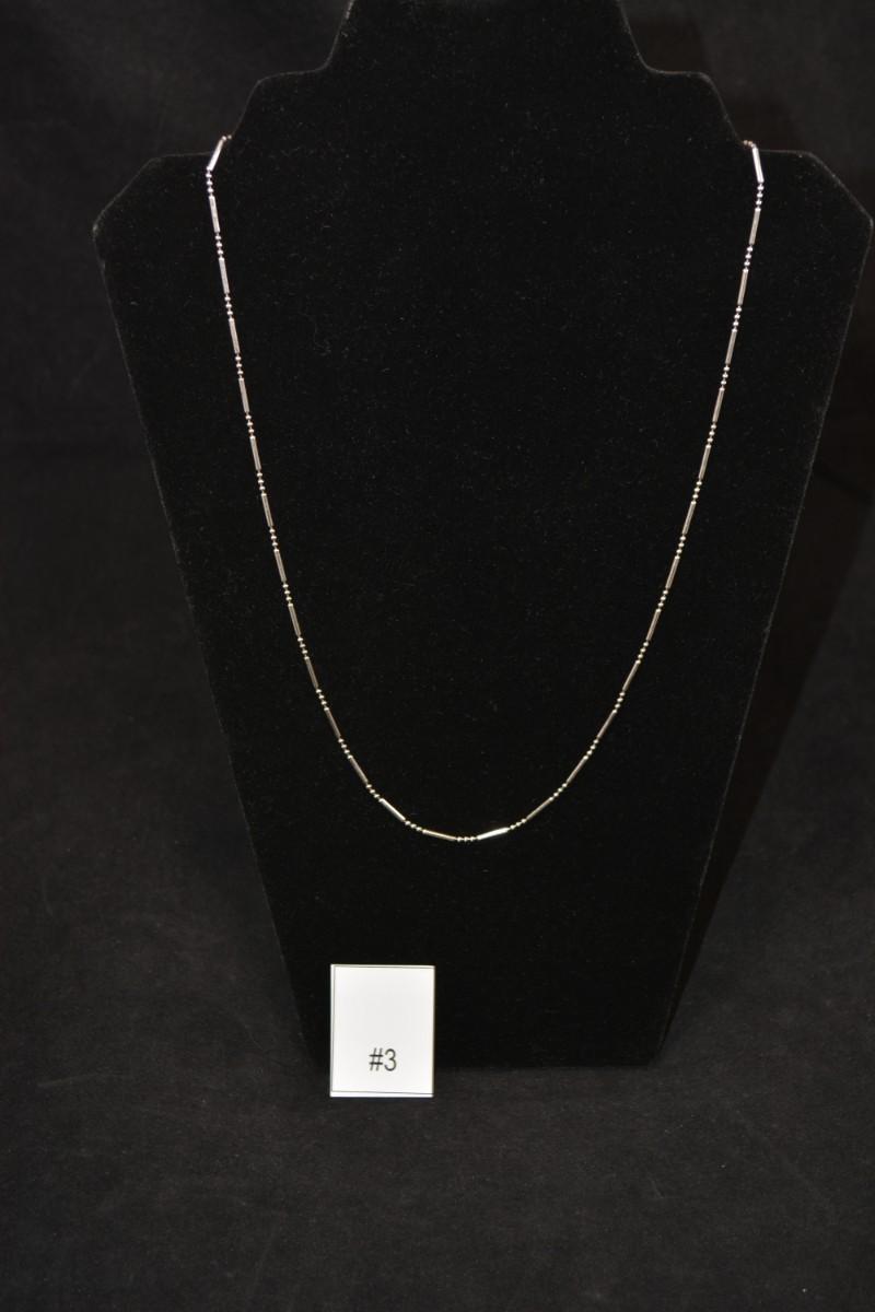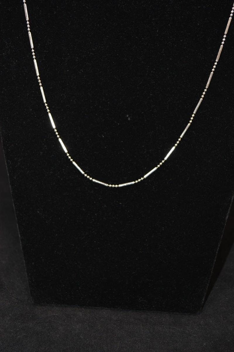 925 Sterling Bar & Bead Necklace 24”, 4.9g