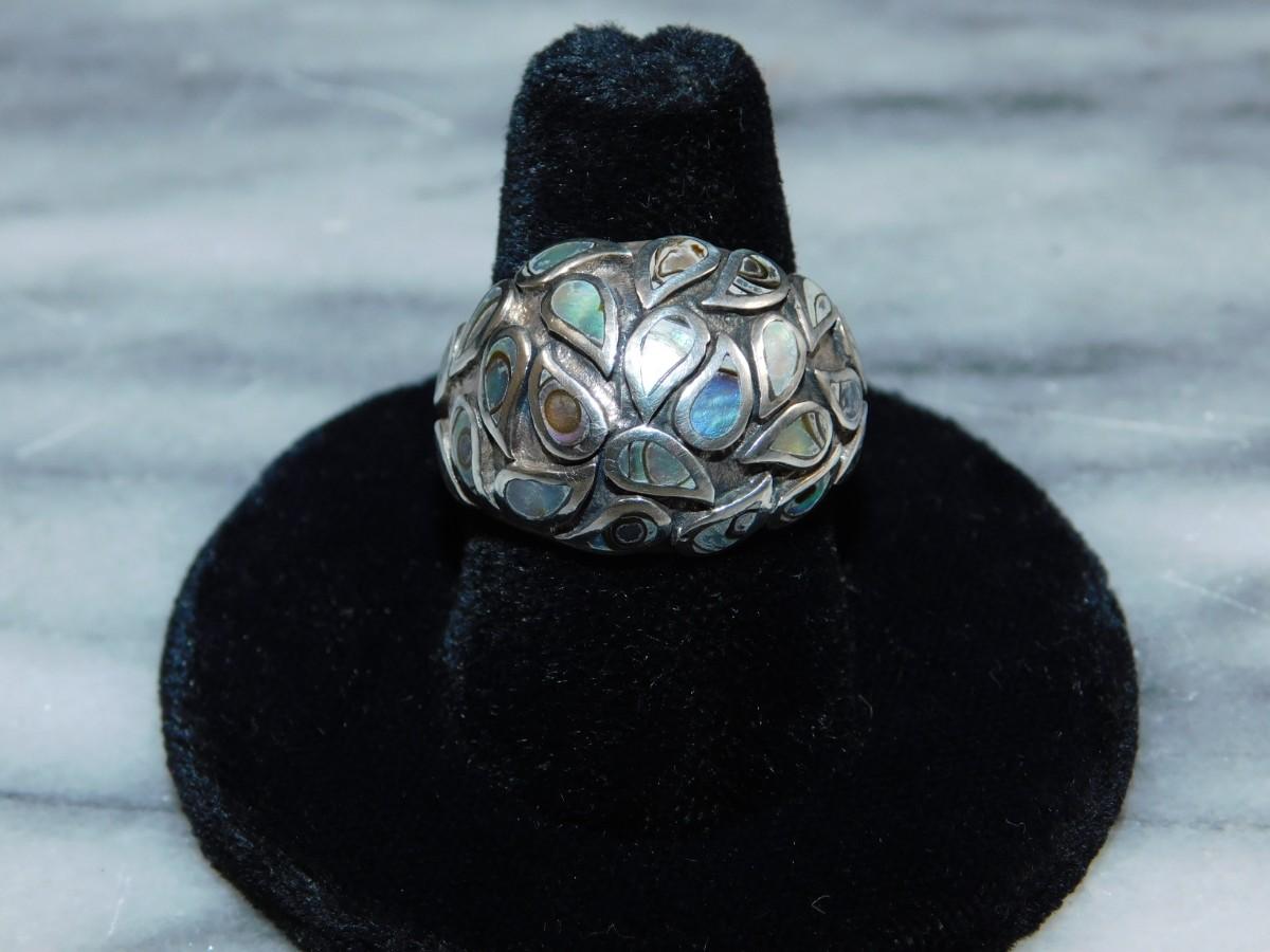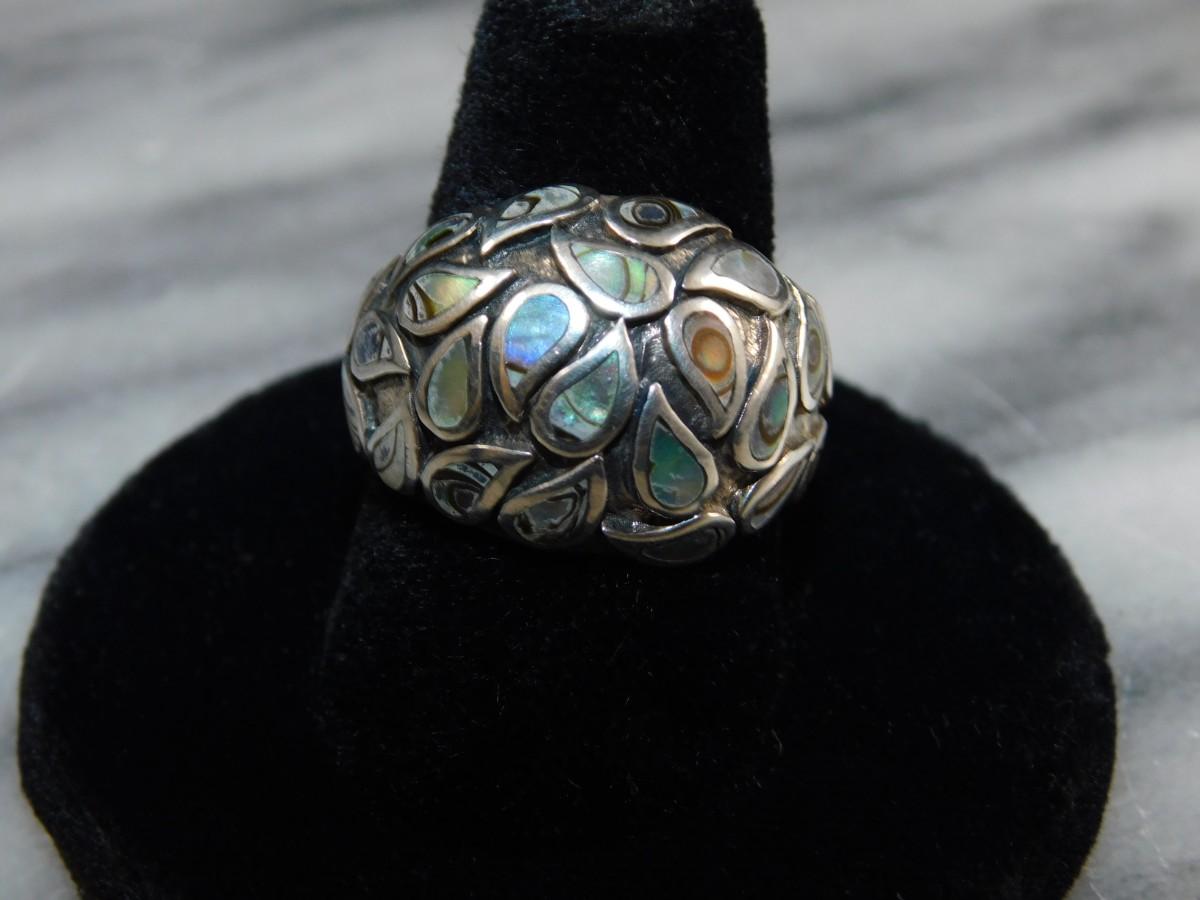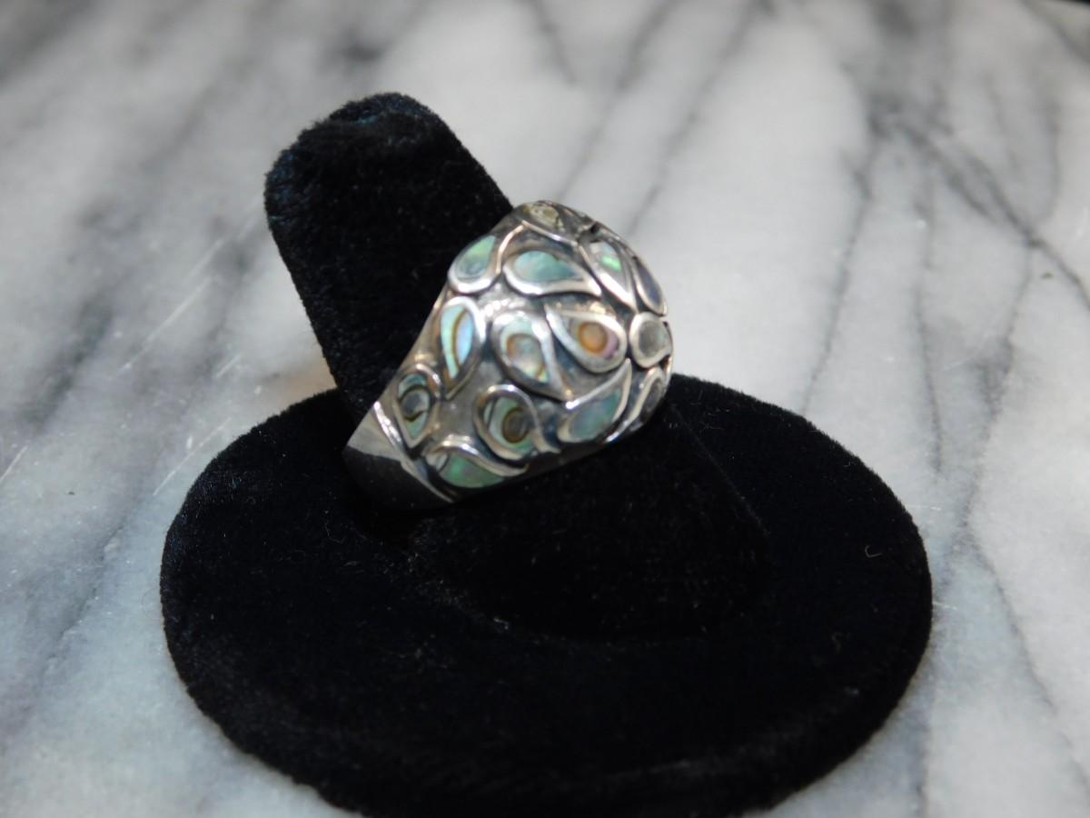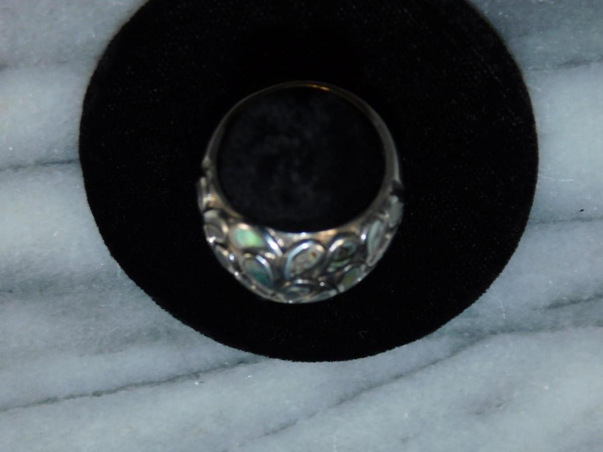 925 Sterling Dome Ring w/ Abalone Tear Drop Settings Size 8, 8.8g