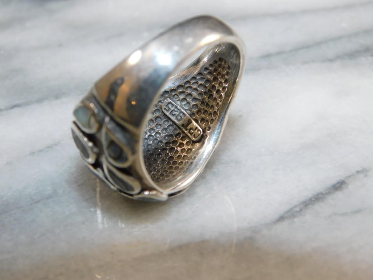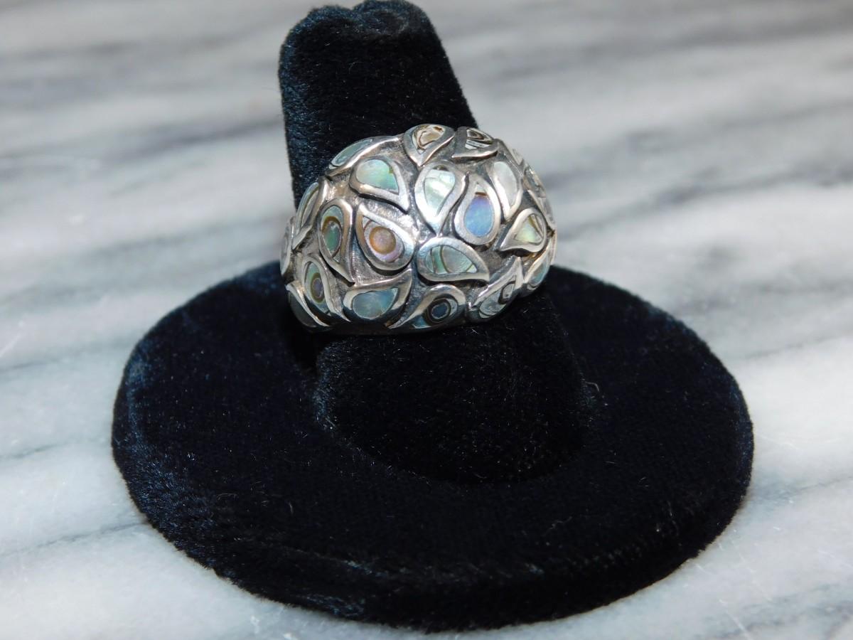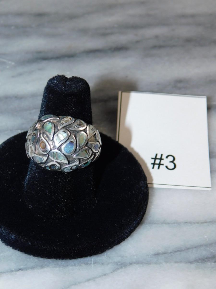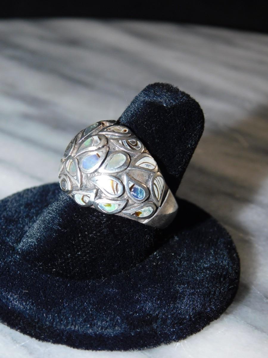 925 Sterling Dome Ring w/ Abalone Tear Drop Settings Size 8, 8.8g